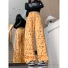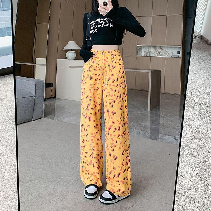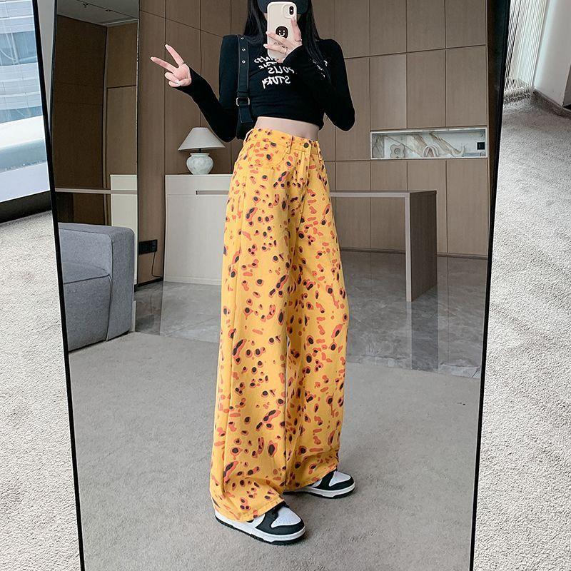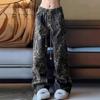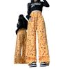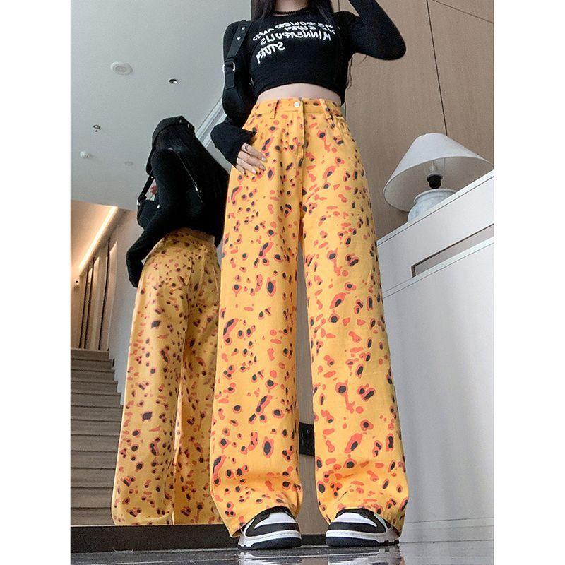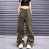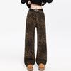 Pantalones vaqueros con estampado de leopardo retro americano para mujer, holgados, de pierna ancha, de otoño, con diseño de nicho, rectos, de cintura alta