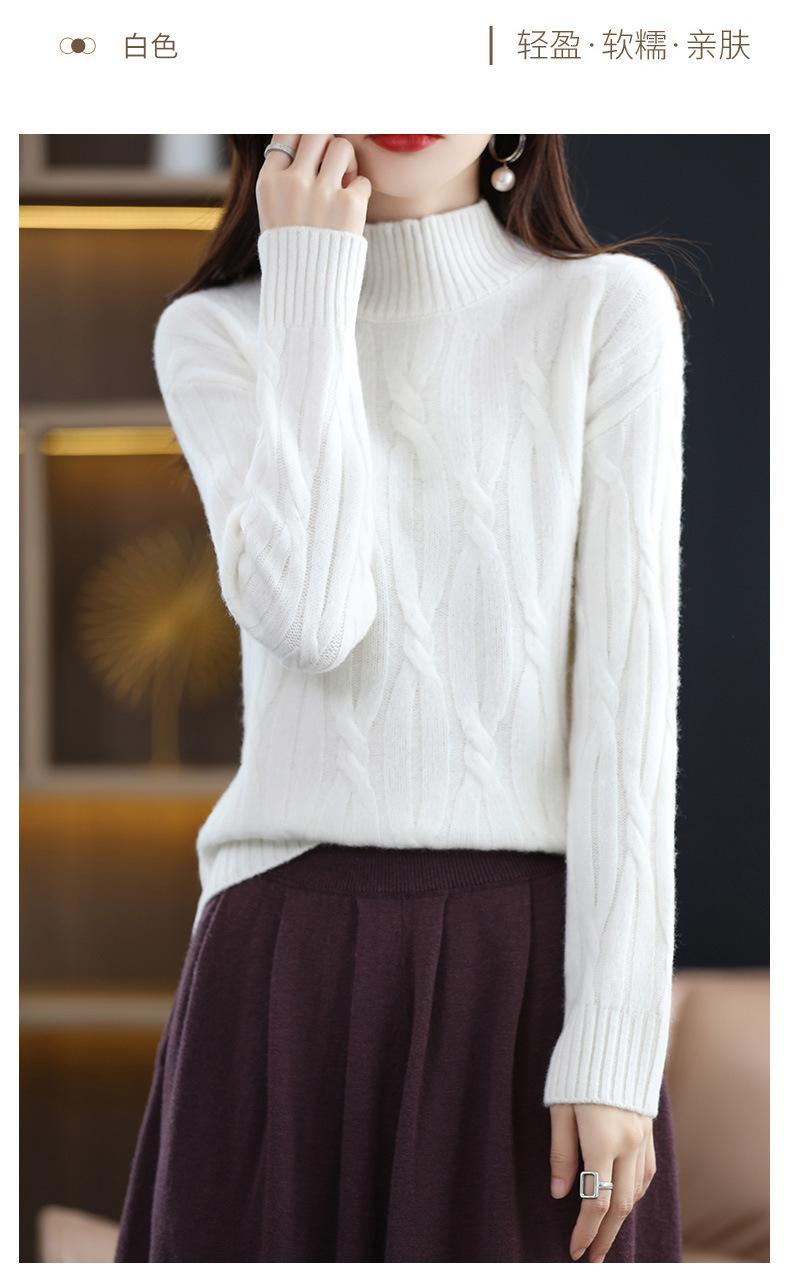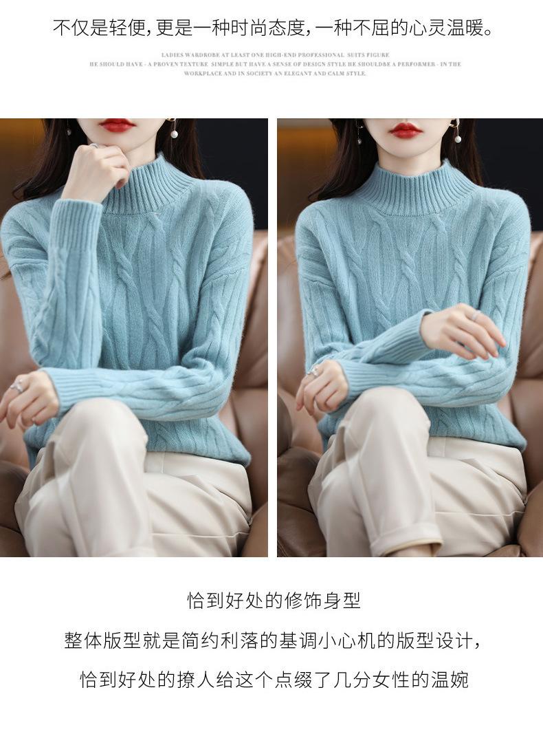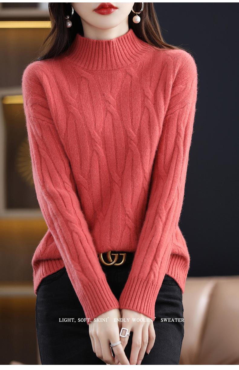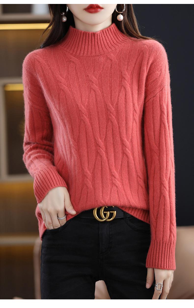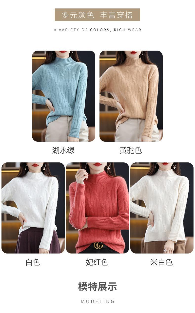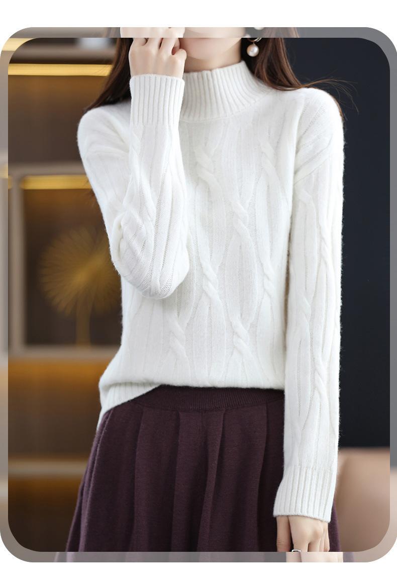 Suéter Básico de Punto Holgado Multicolor de Manga Larga para Mujer, Nuevo Otoño Invierno 2024, Cuello Medio Alto con Trenzas de Diamante