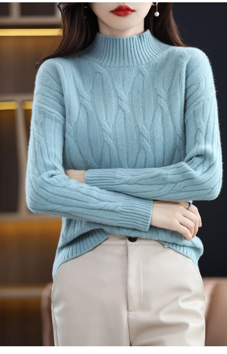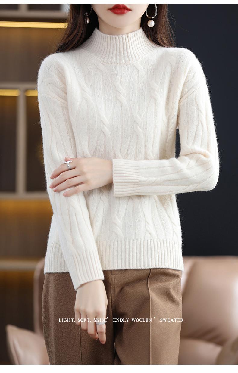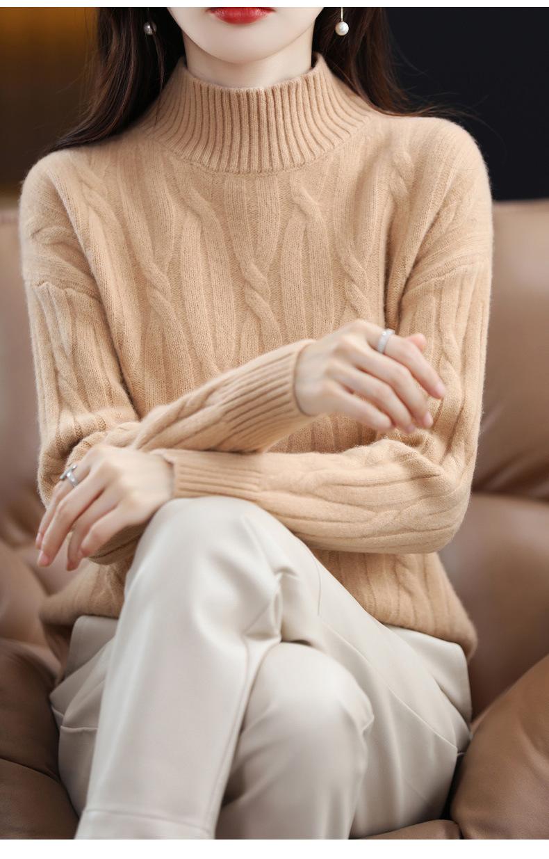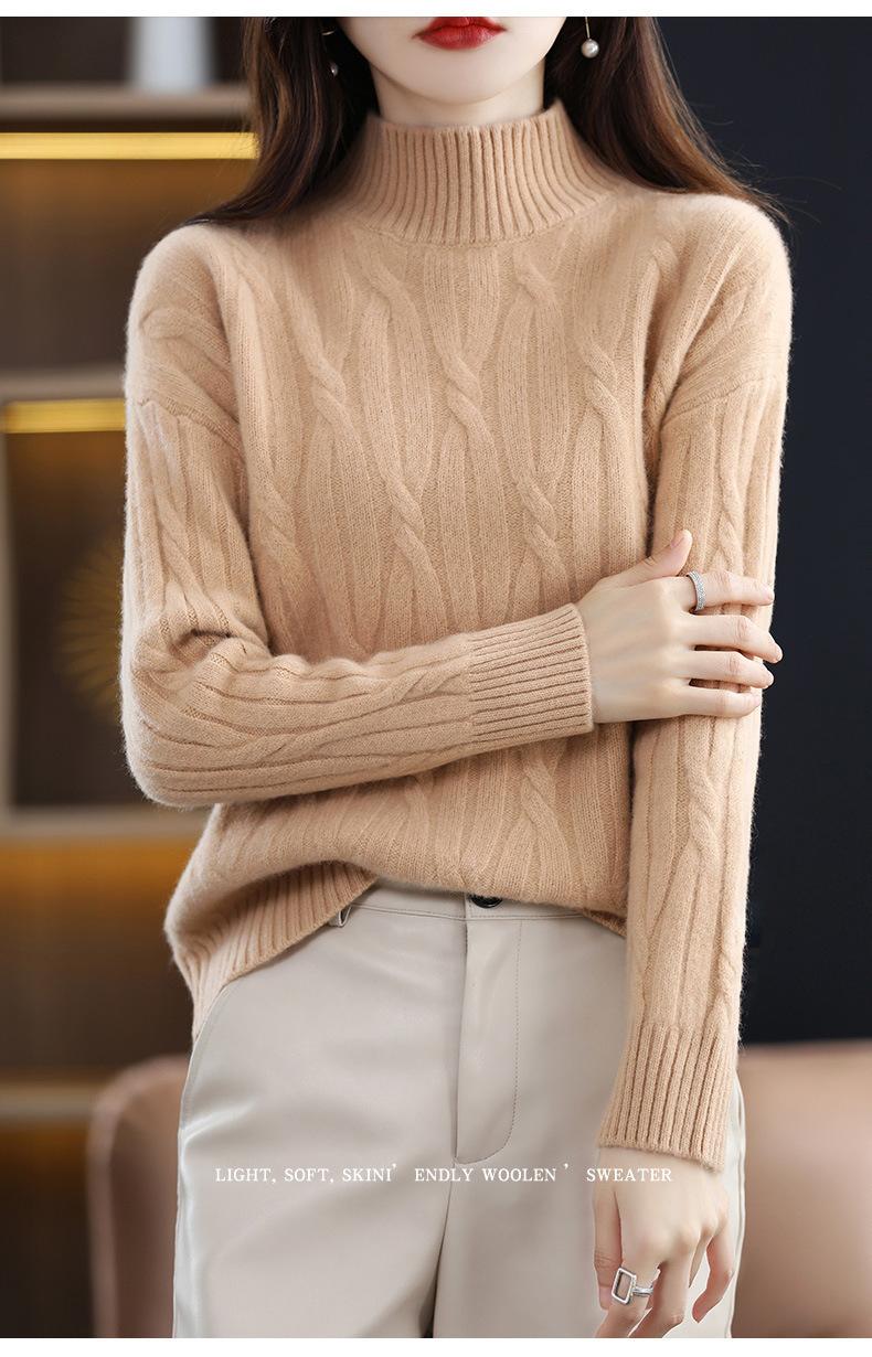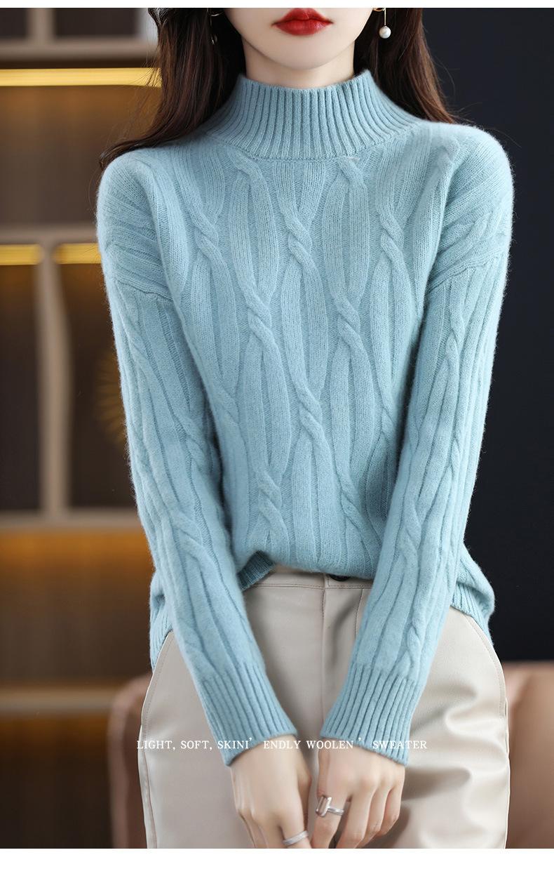 Suéter Básico de Punto Holgado Multicolor de Manga Larga para Mujer, Nuevo Otoño Invierno 2024, Cuello Medio Alto con Trenzas de Diamante