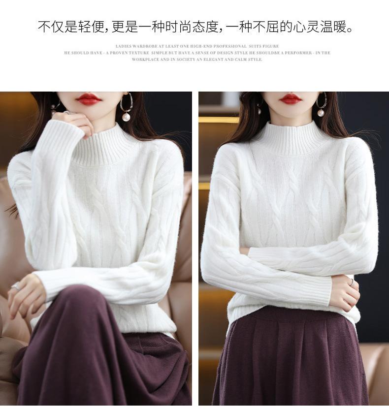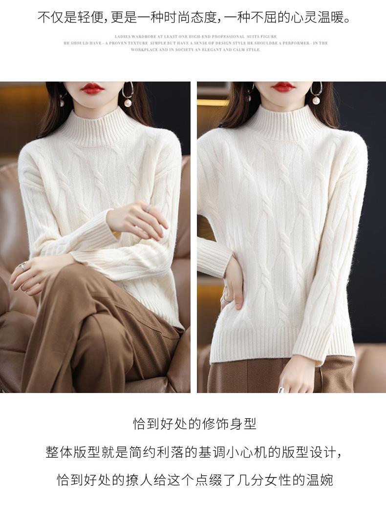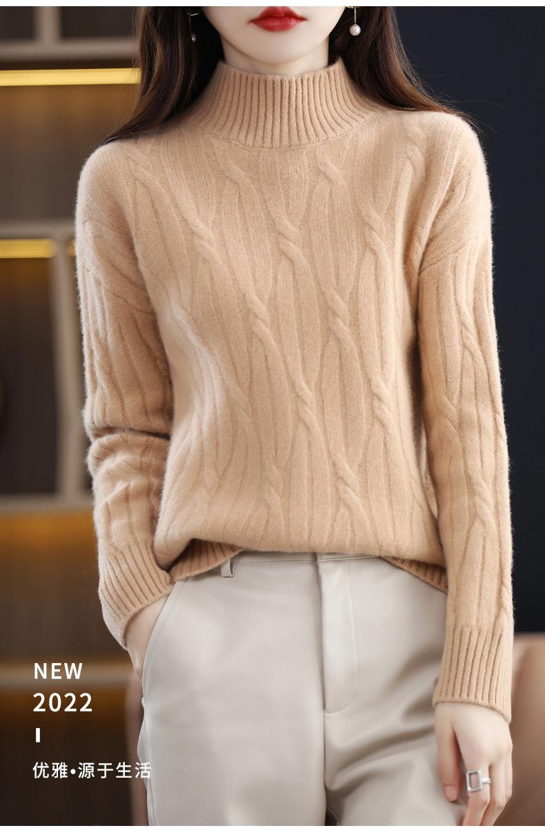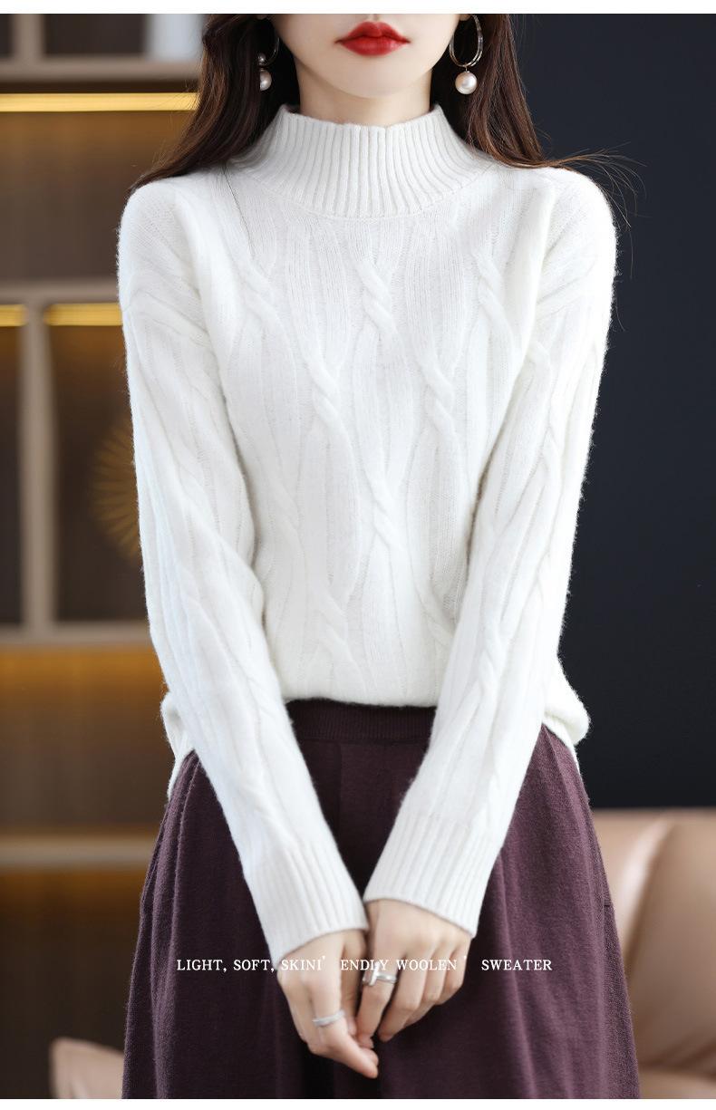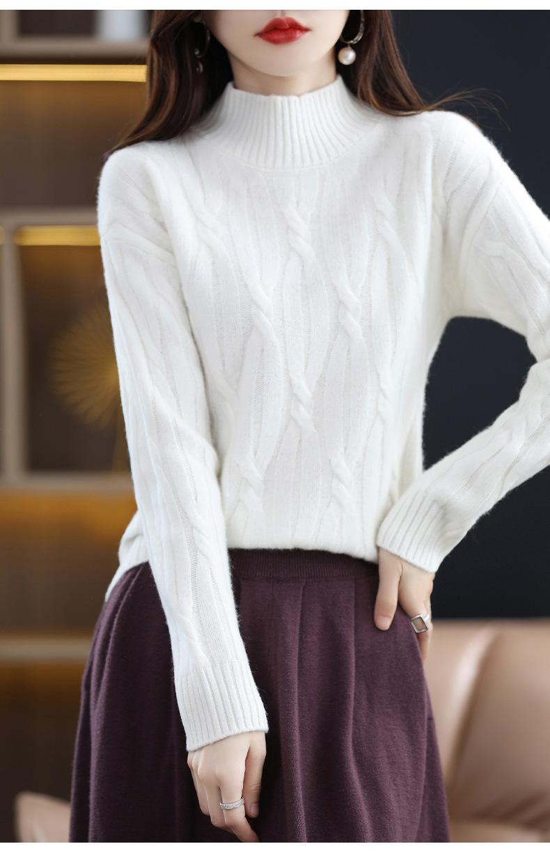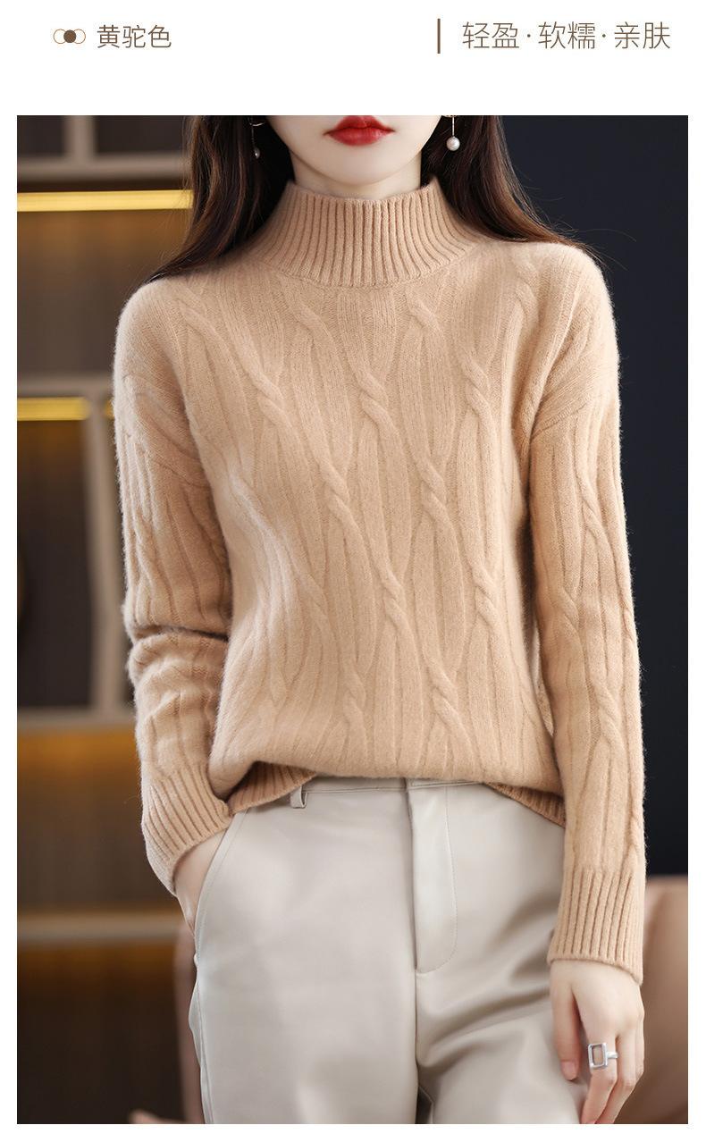 Suéter Básico de Punto Holgado Multicolor de Manga Larga para Mujer, Nuevo Otoño Invierno 2024, Cuello Medio Alto con Trenzas de Diamante