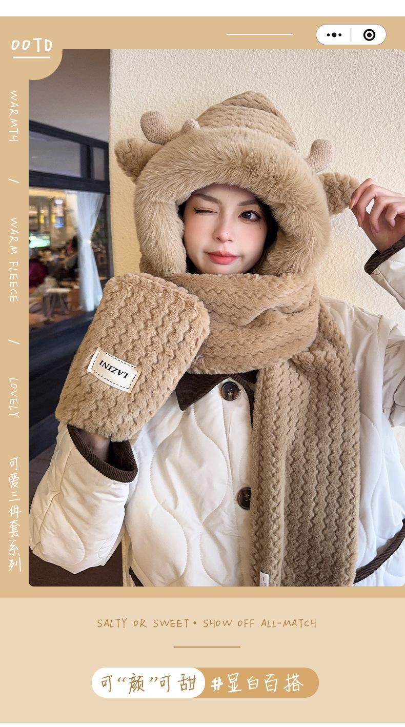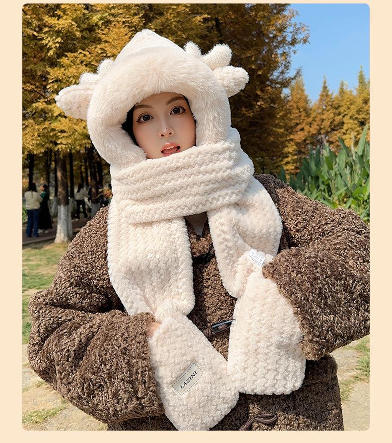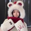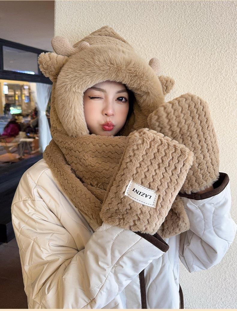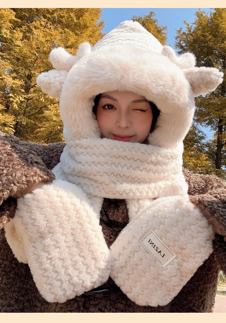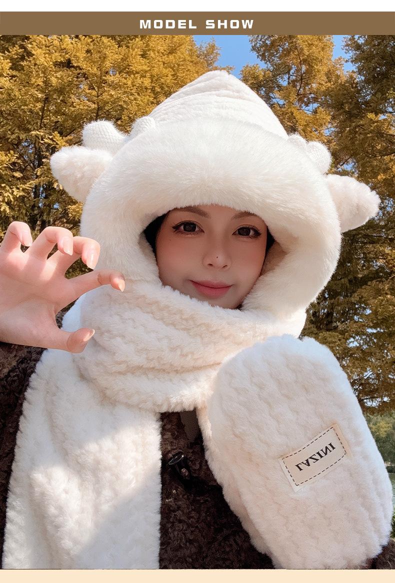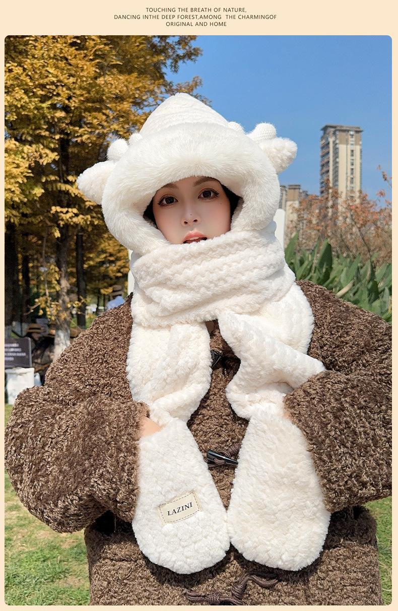 Gorro de invierno para mujer 2024, nuevo gorro y bufanda de un solo cuello, conjunto de tres piezas para otoño e invierno, combina con todo.