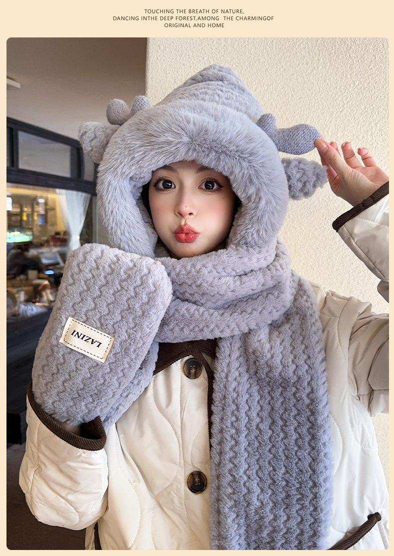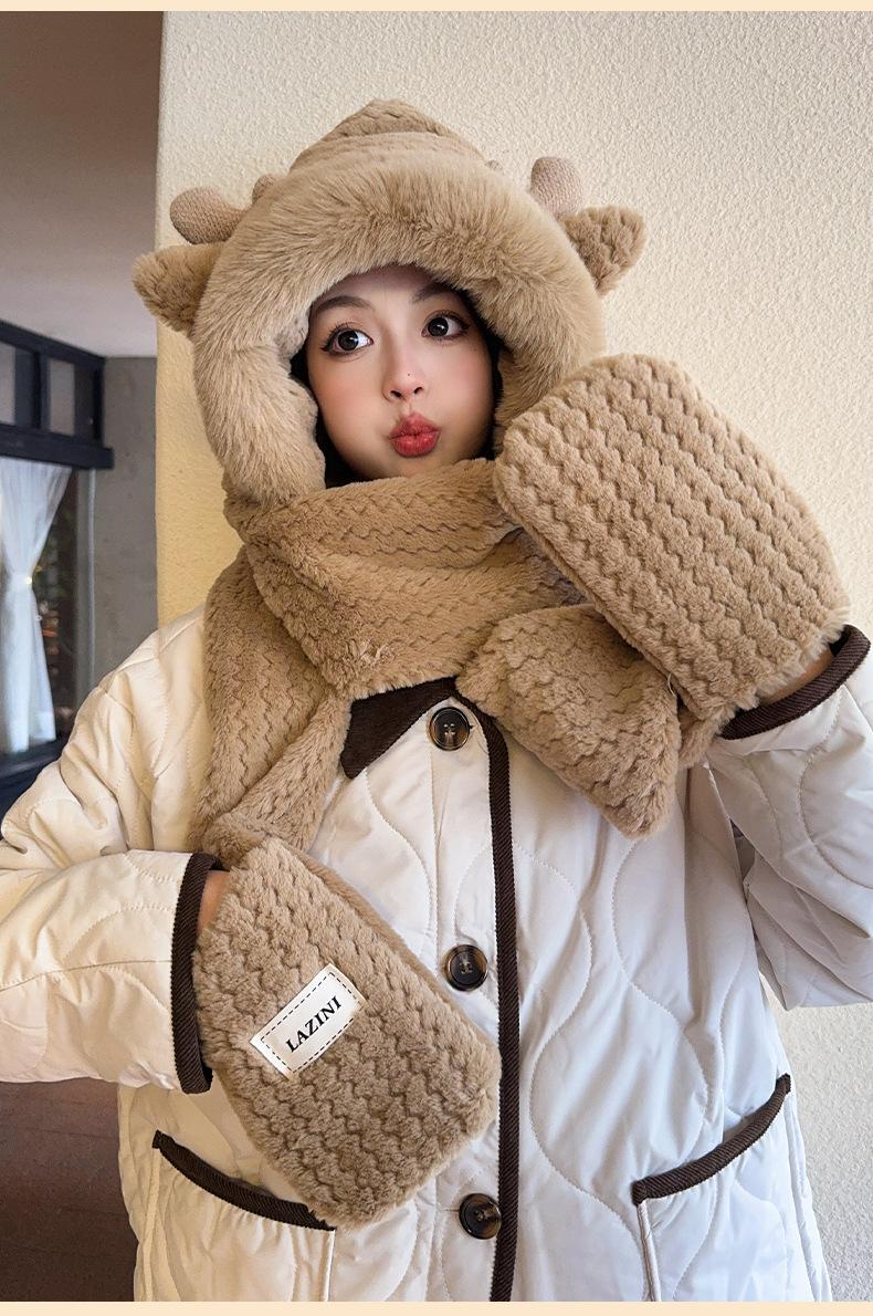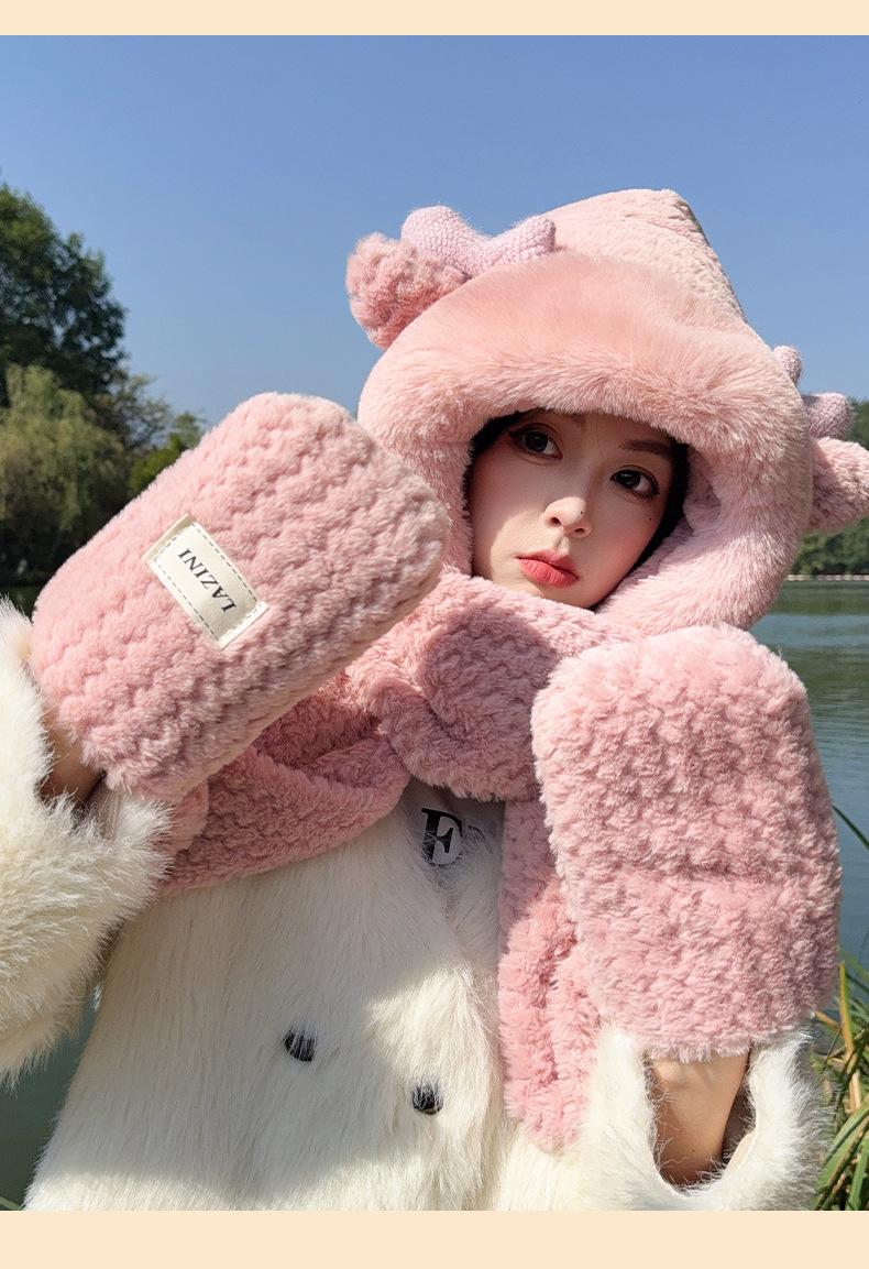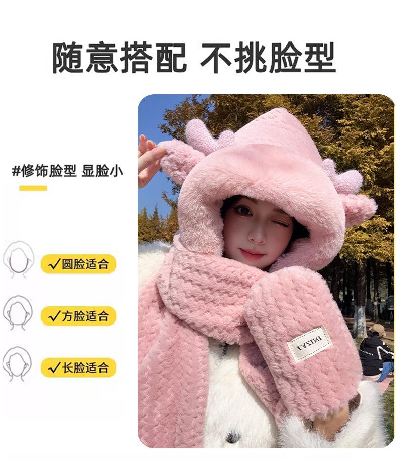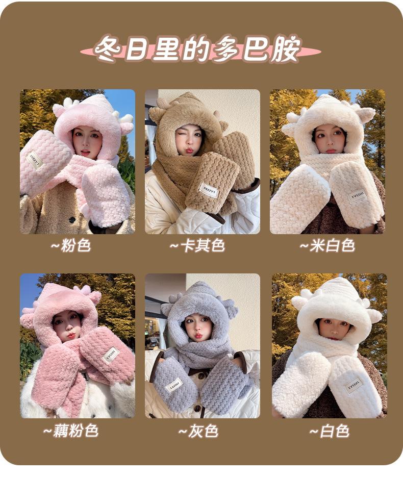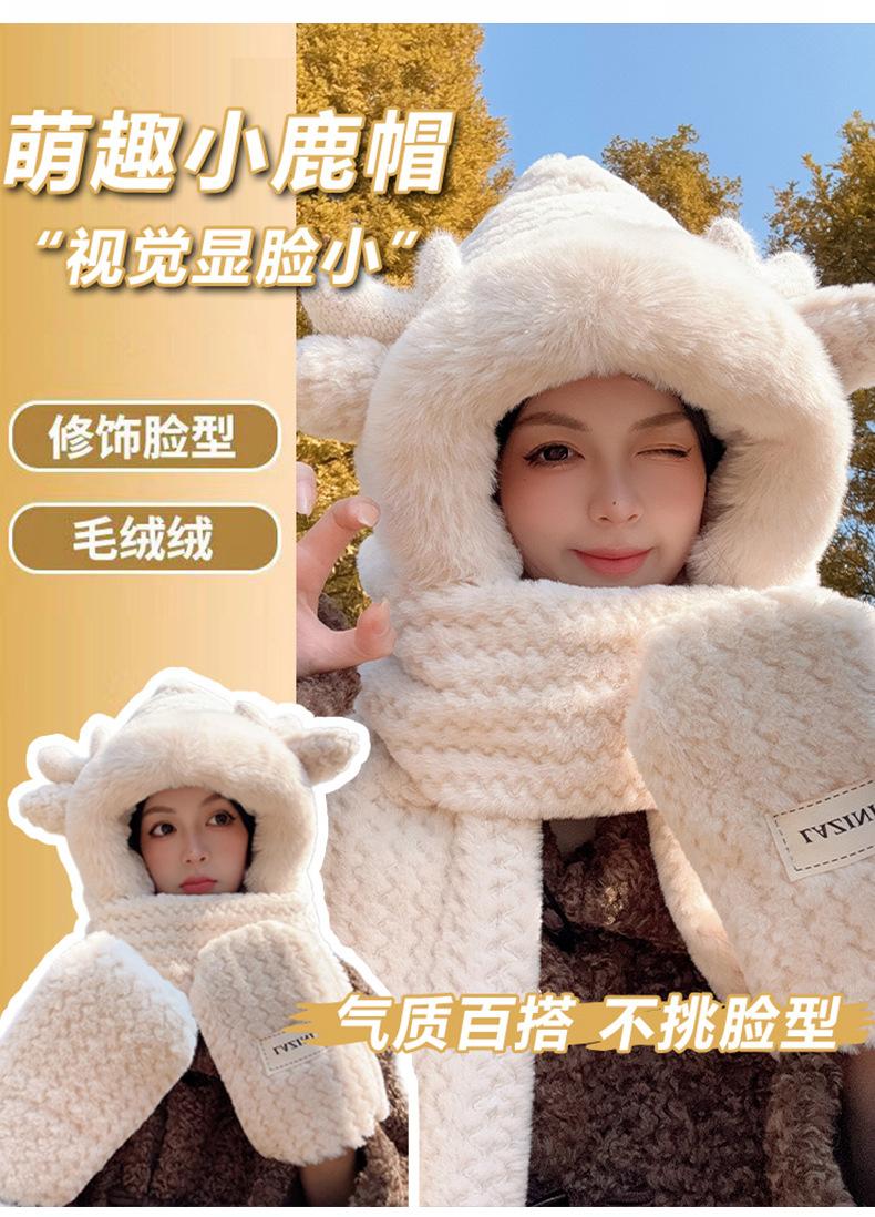 Gorro de invierno para mujer 2024, nuevo gorro y bufanda de un solo cuello, conjunto de tres piezas para otoño e invierno, combina con todo.