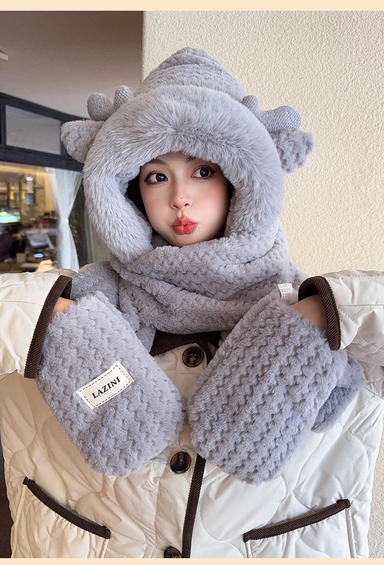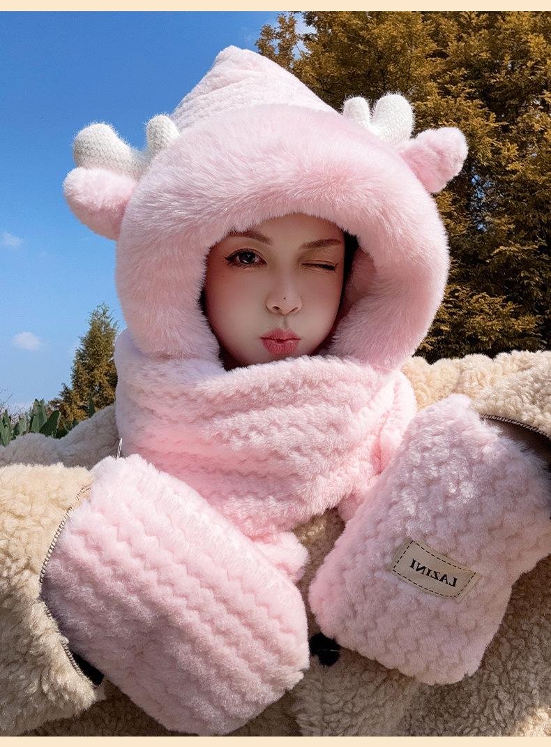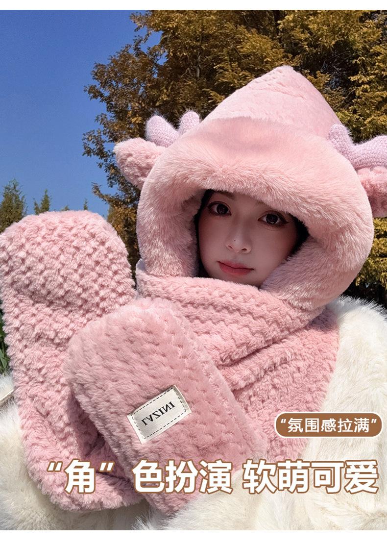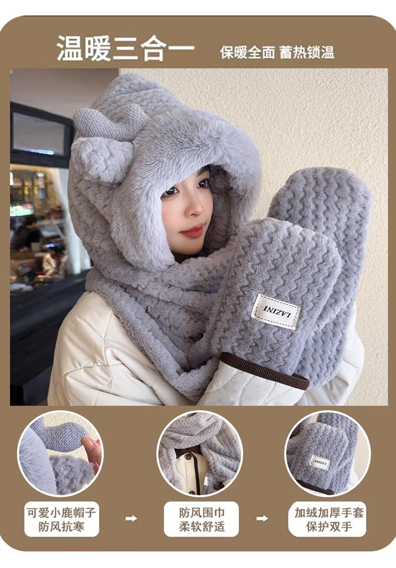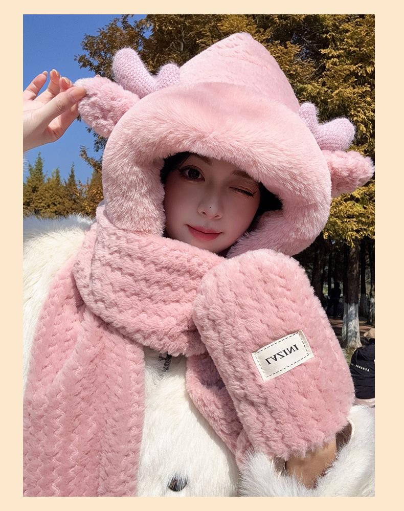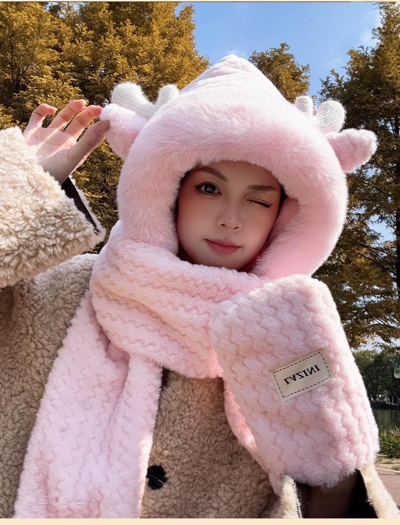 Gorro de invierno para mujer 2024, nuevo gorro y bufanda de un solo cuello, conjunto de tres piezas para otoño e invierno, combina con todo.