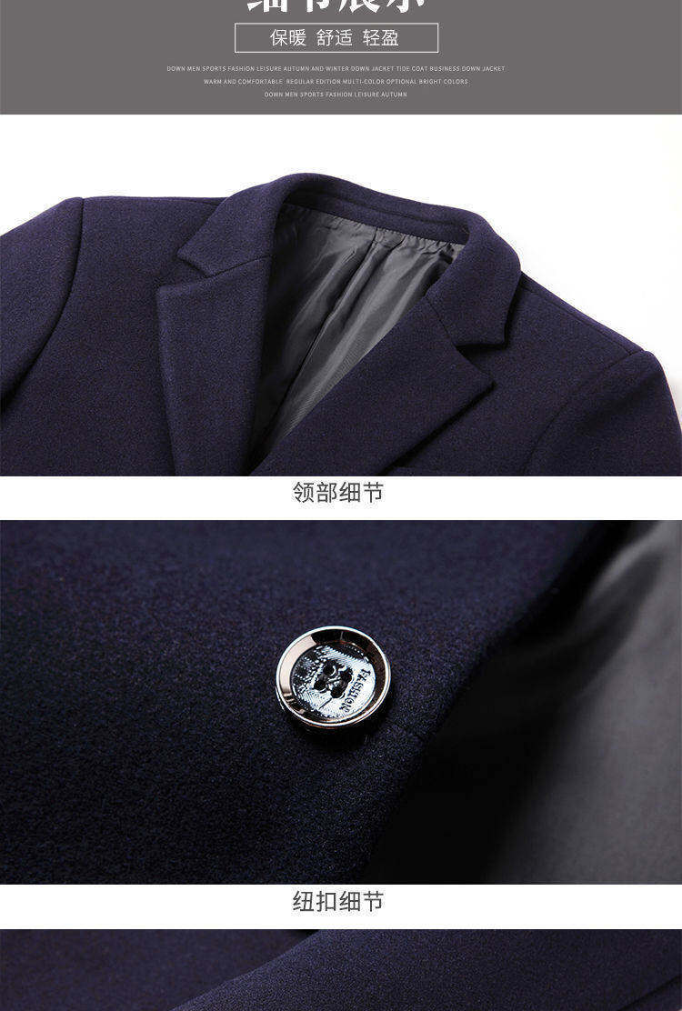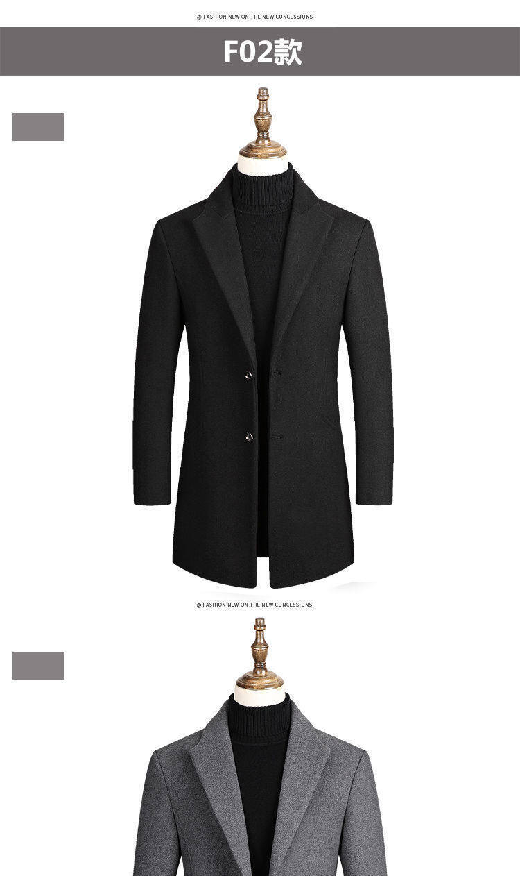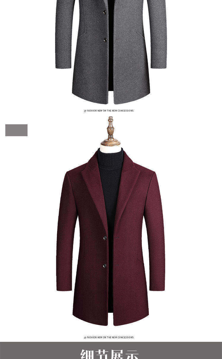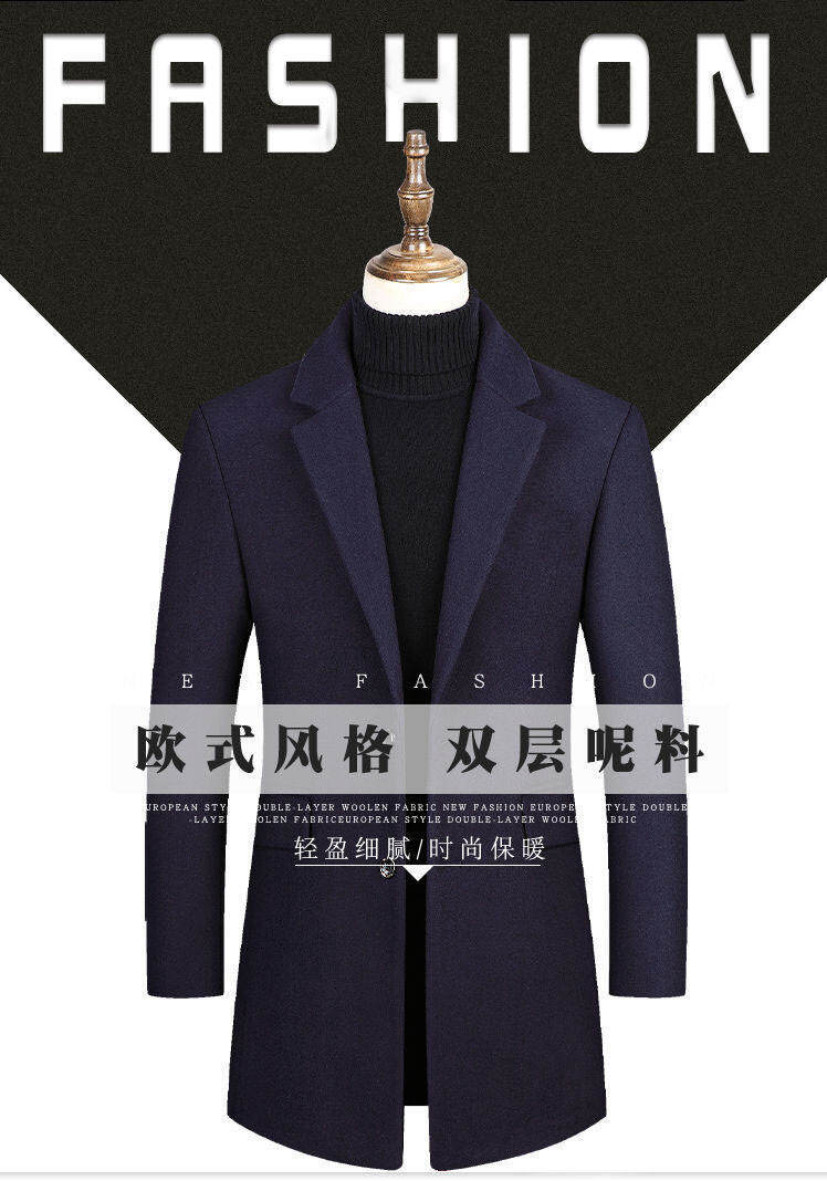 Abrigo de lana de color liso de longitud media para hombre de otoño e invierno de comercio exterior transfronterizo, abrigo de lana informal de talla grande europeo y americano.