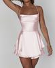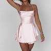 2024 Verano Nueva Falda Corta Sexy Europea y Americana Elegante Entallada con Tirantes de Satén Sin Espalda Vestido Swing para Mujer