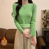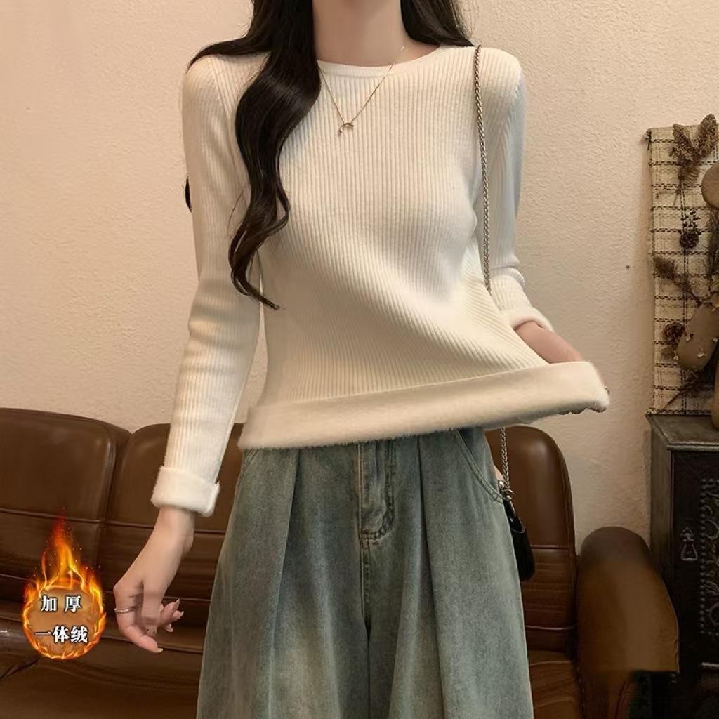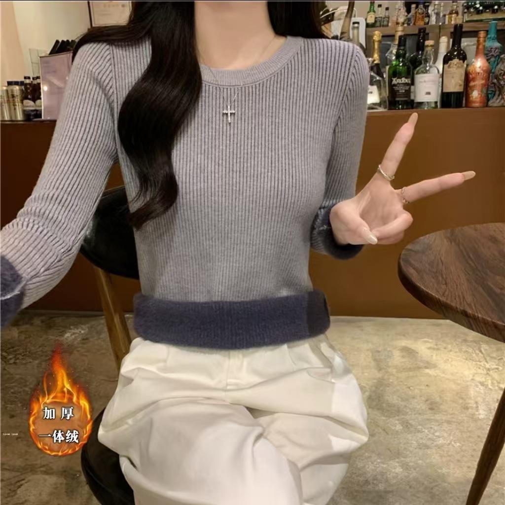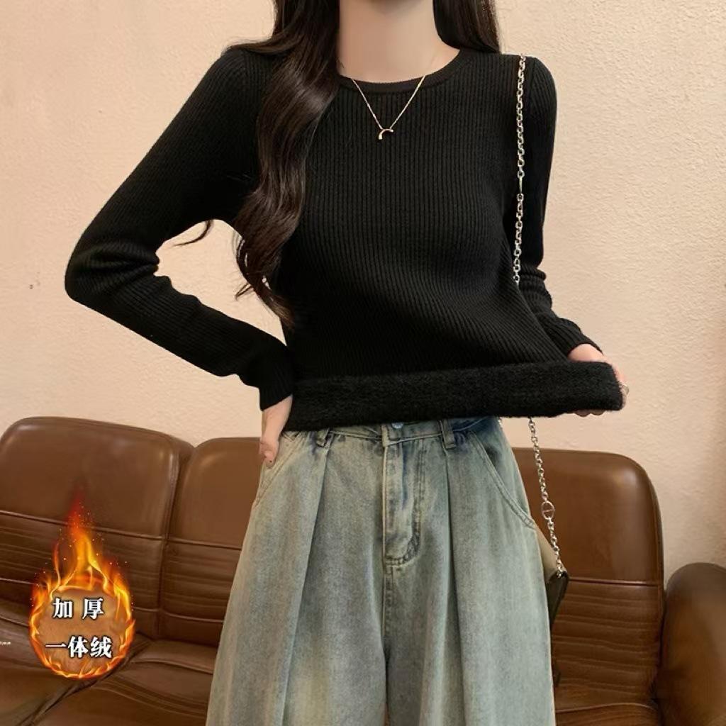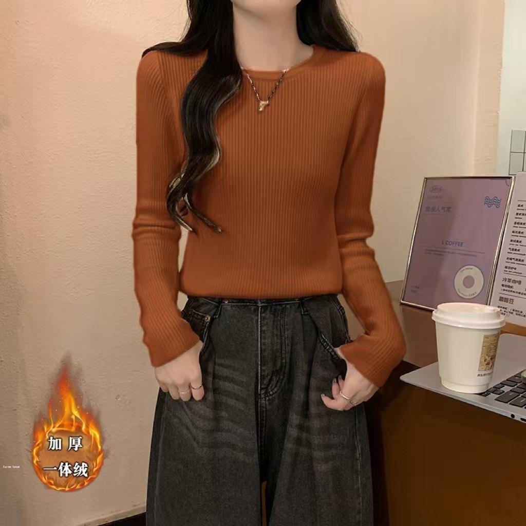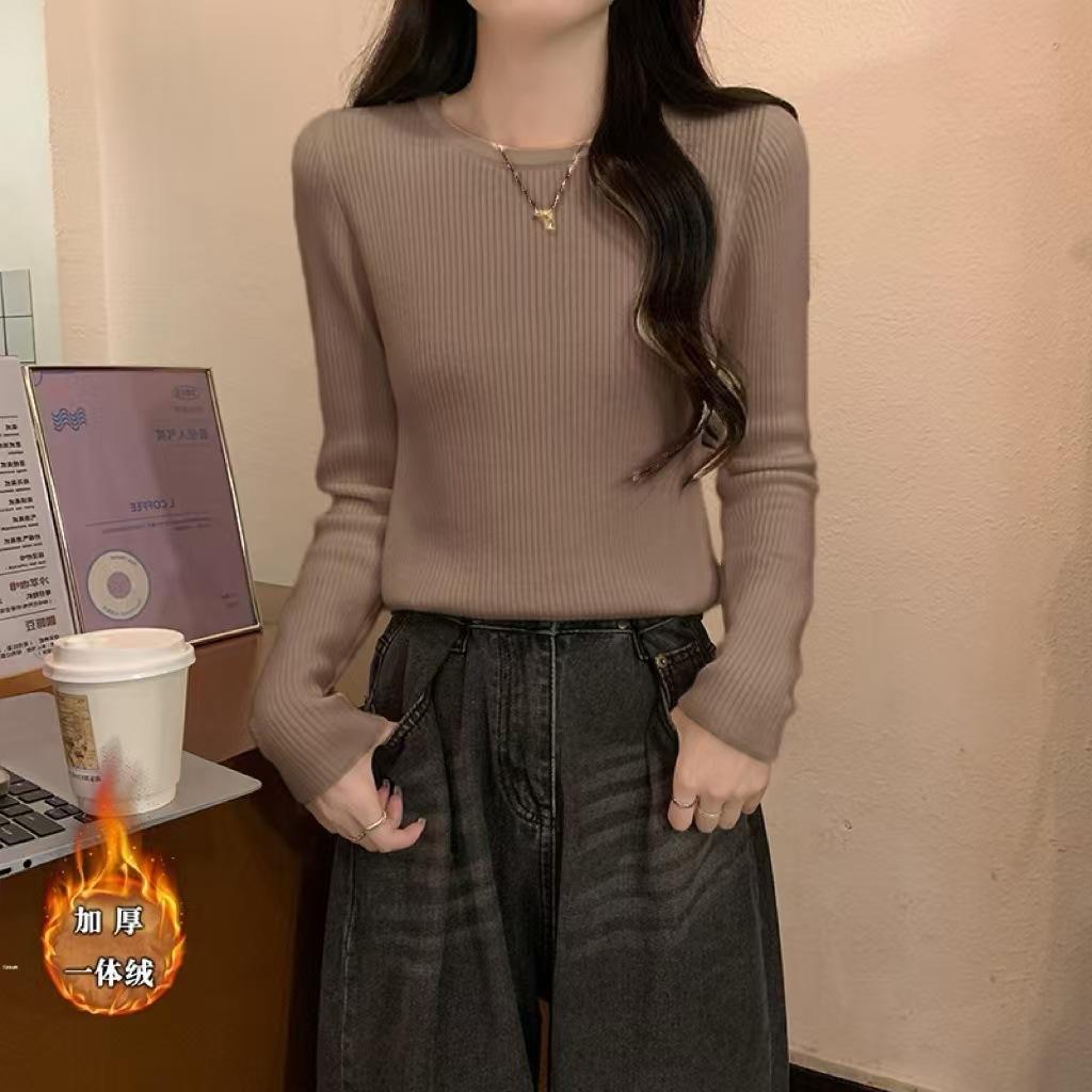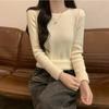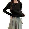 Top básico de punto con cuello redondo fino de estilo coreano para otoño e invierno para mujer, base interior ajustada Ins Pure Desire