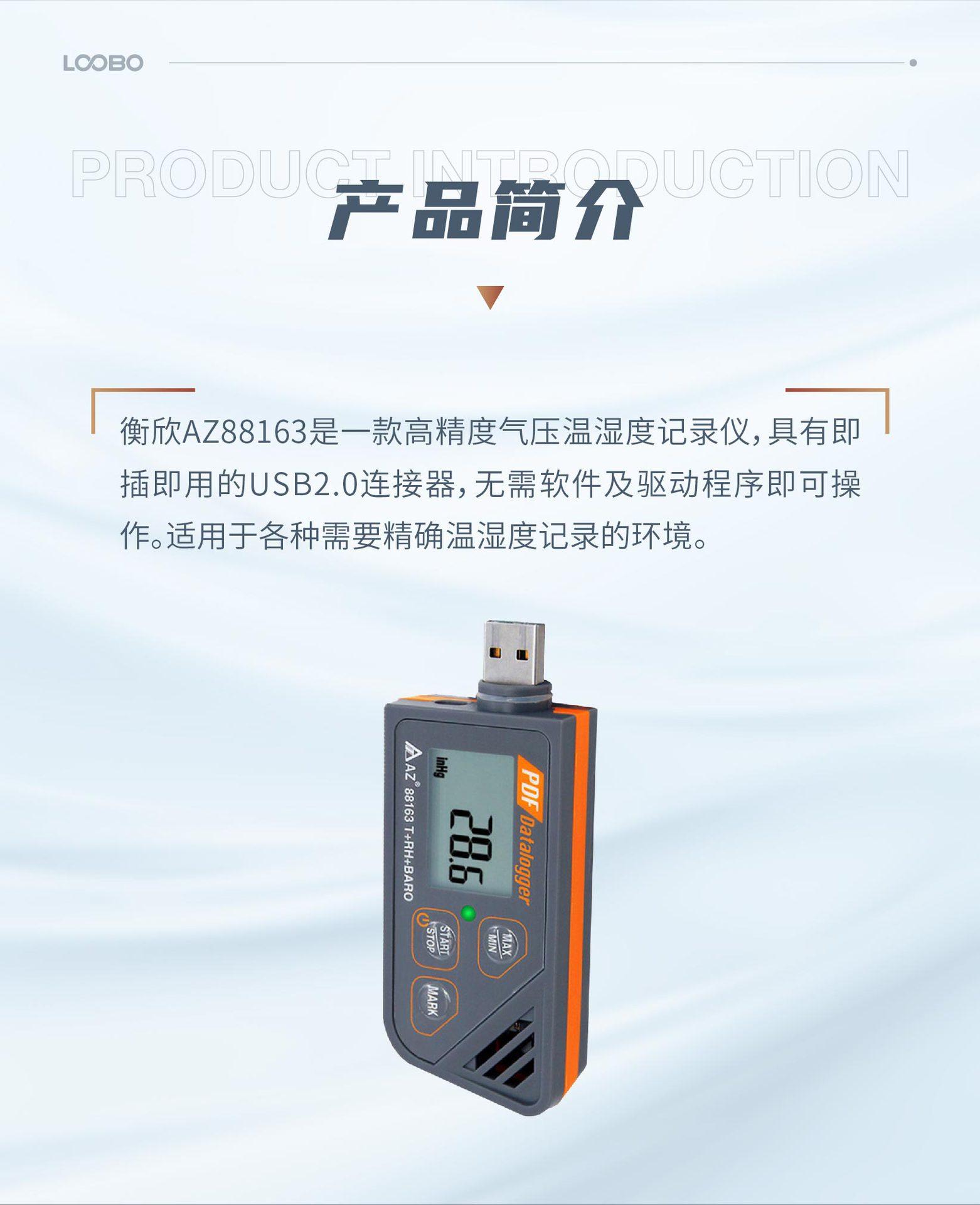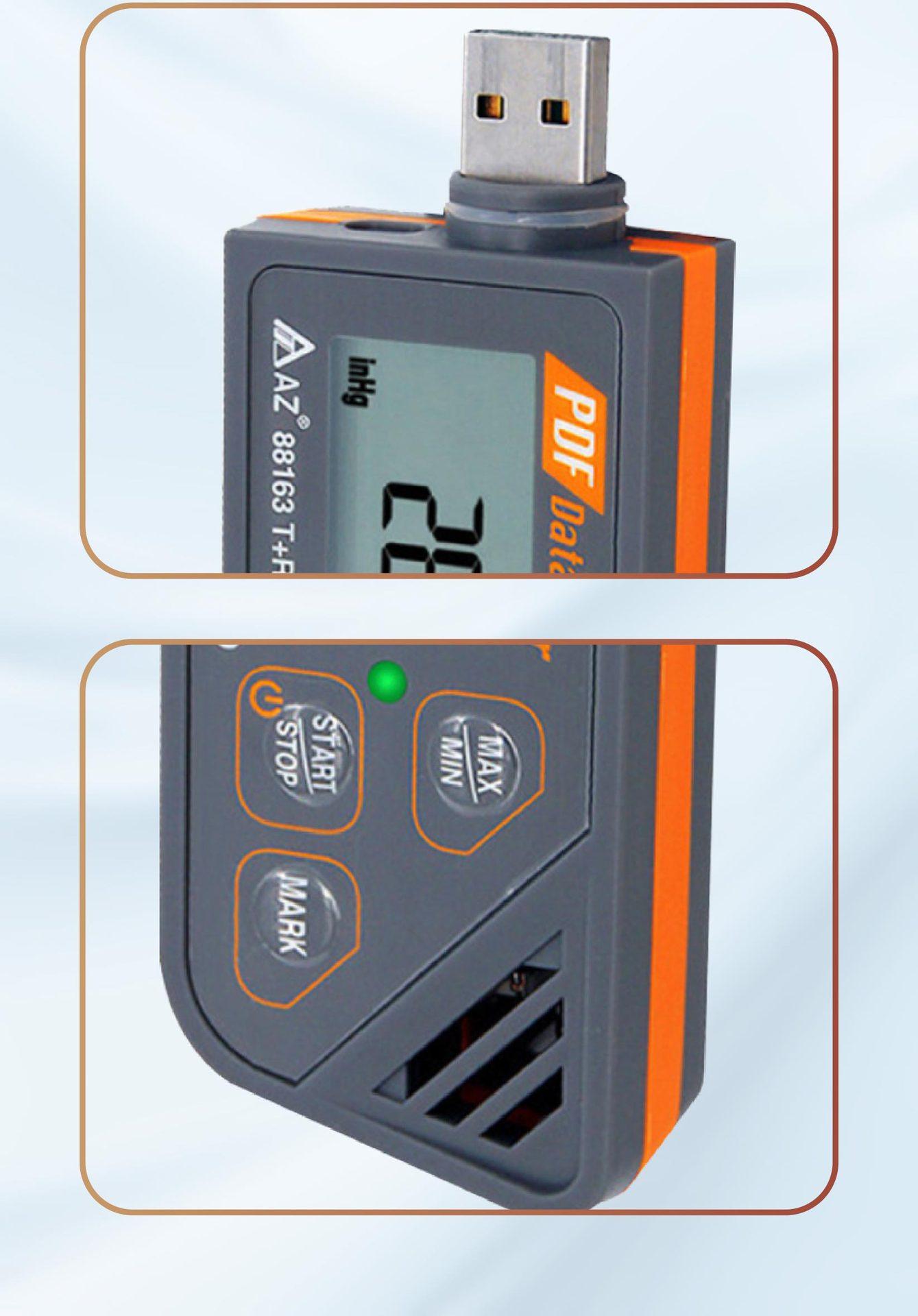 Registrador de temperatura y humedad de presión de aire de alta precisión Taiwan Hengxin AZ88163 conector USB2.0 termómetro de mano