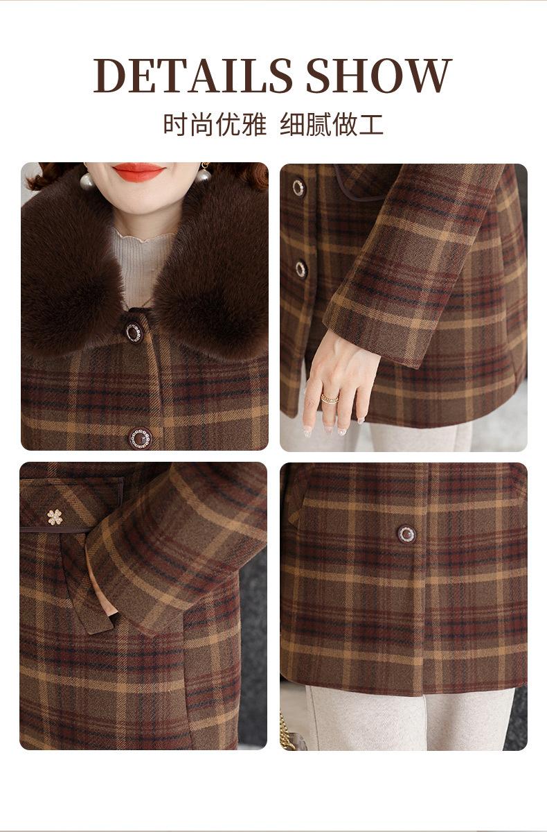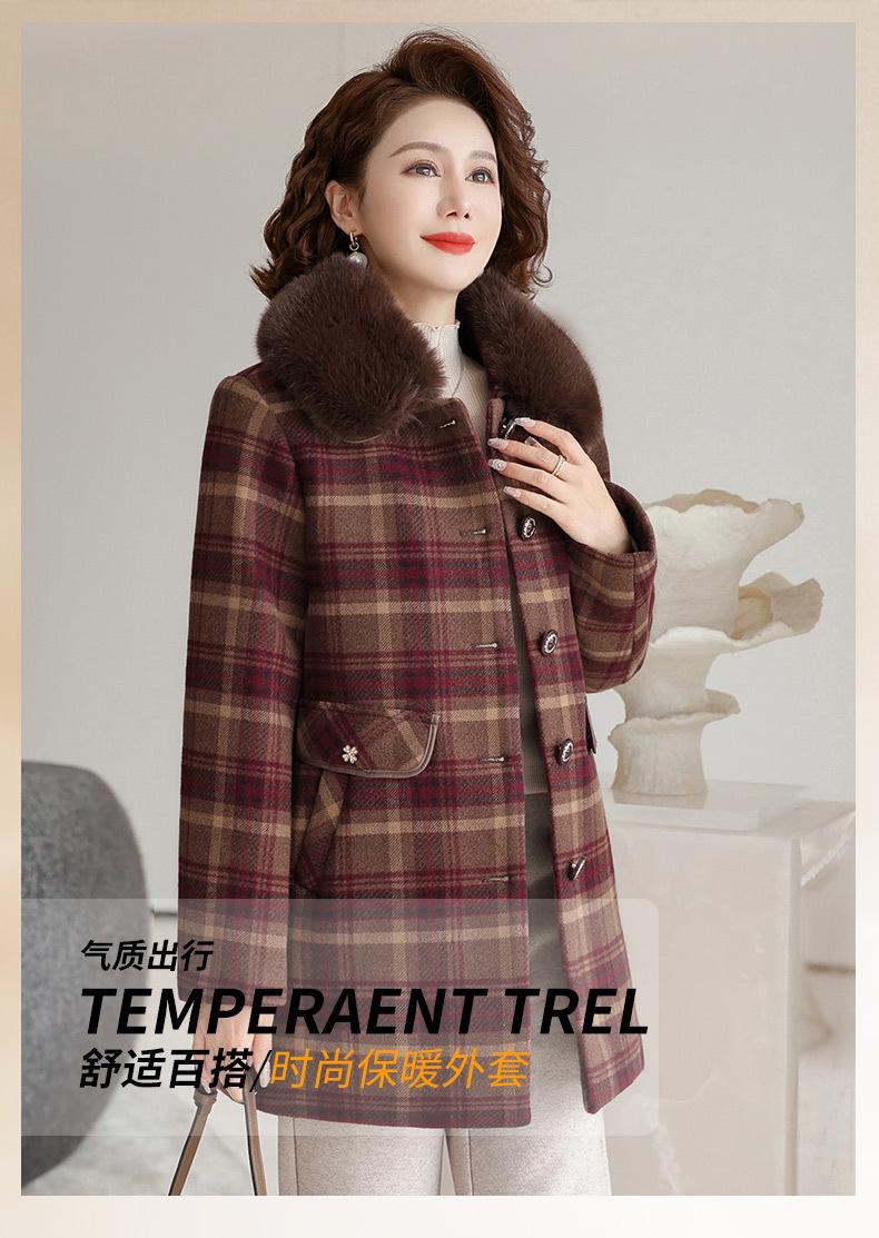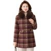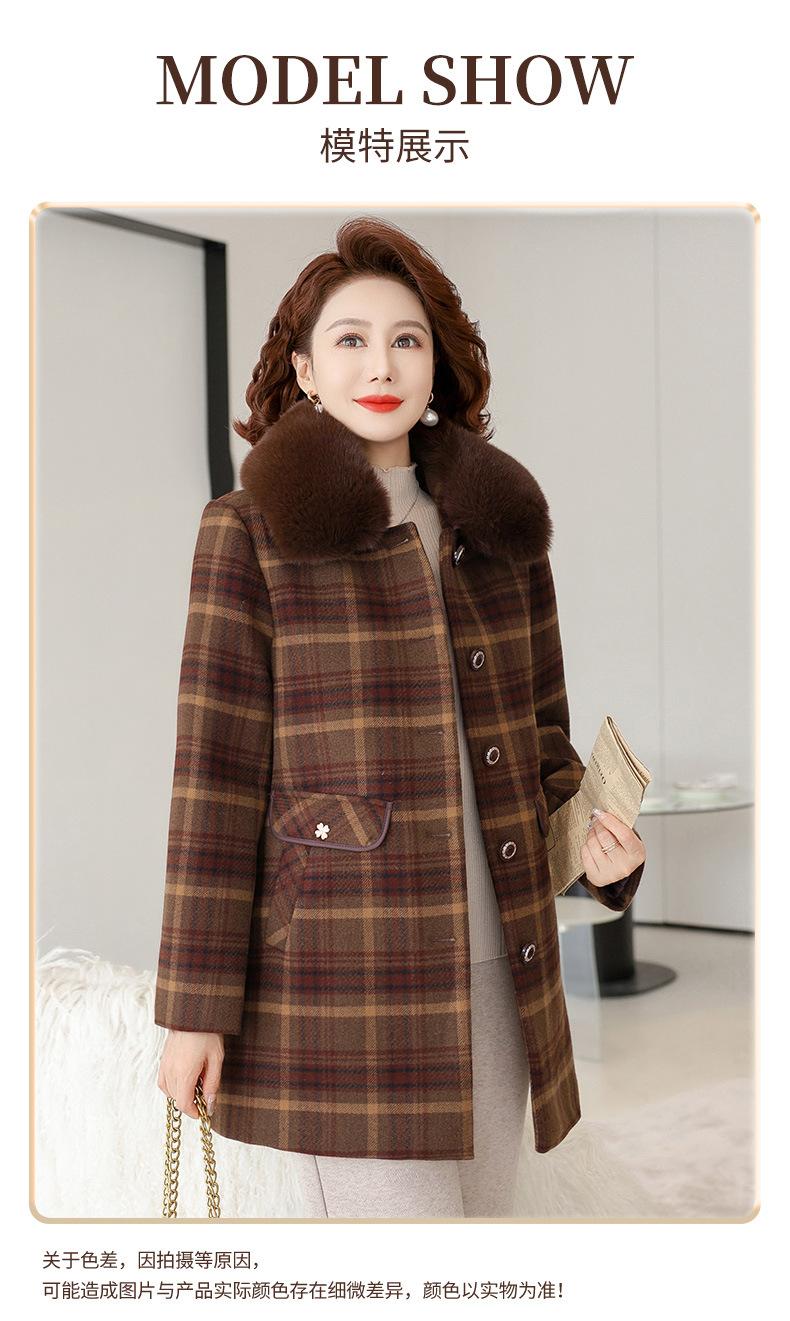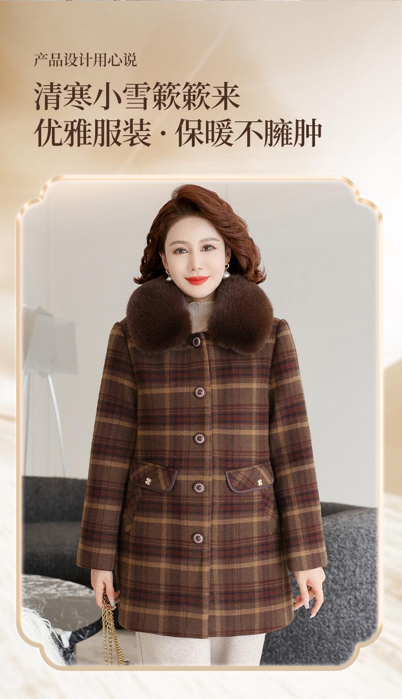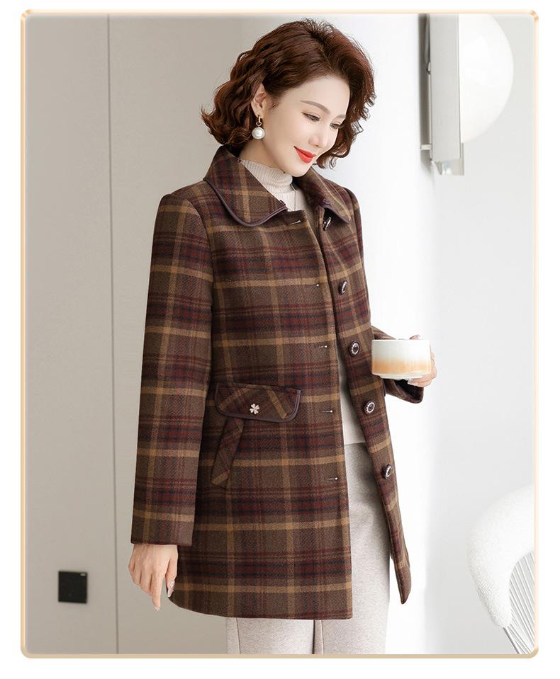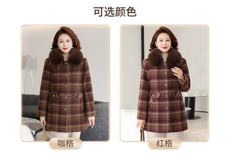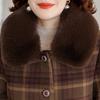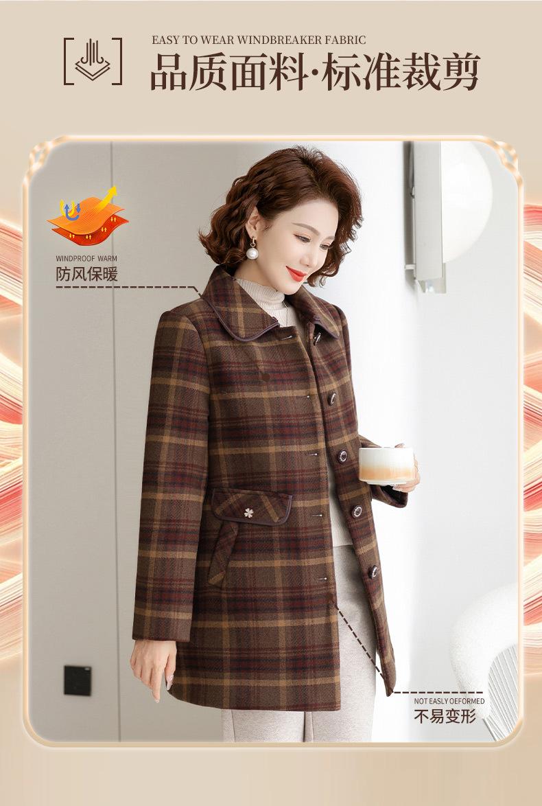 Abrigo de lana a cuadros grueso con forro polar de invierno para madres, abrigo de longitud media, abrigo de lana noble para mujeres de mediana edad y mayores para otoño e invierno.