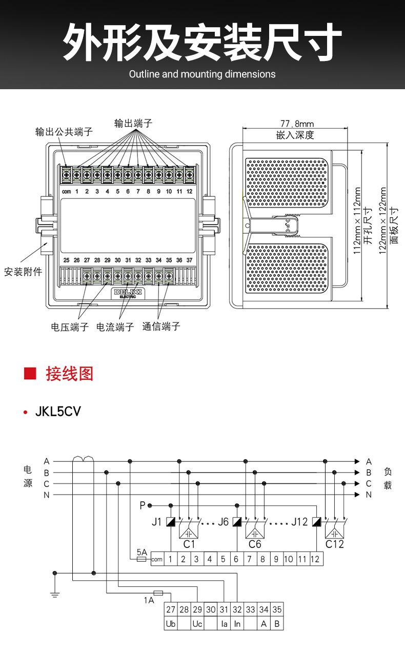 Controlador automático de compensación de potencia reactiva inteligente con carcasa de plástico Delixi JKL5C, bucle 4-6-8-10-12