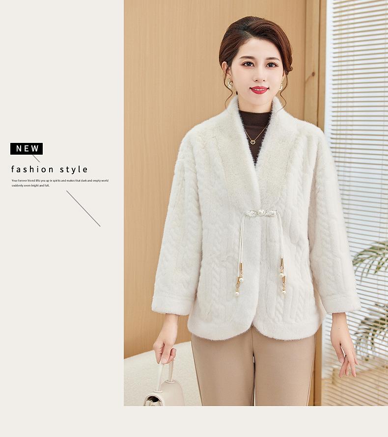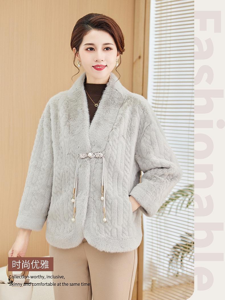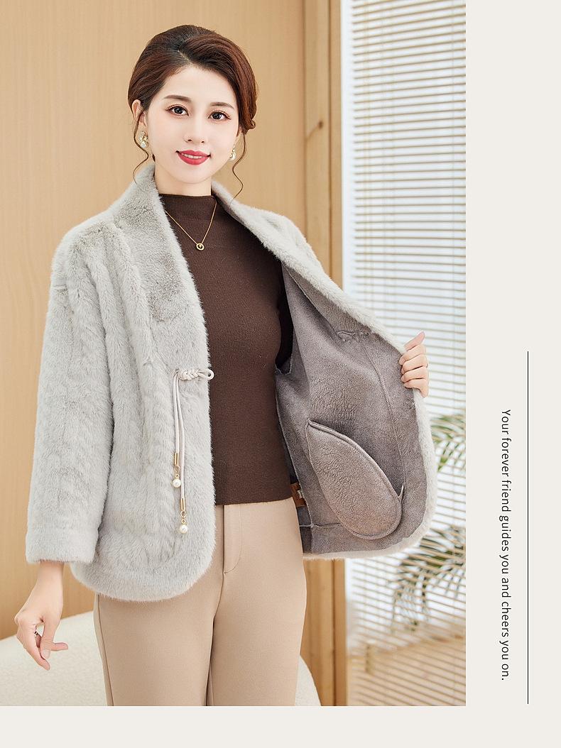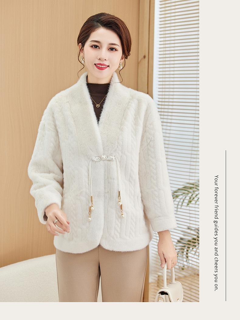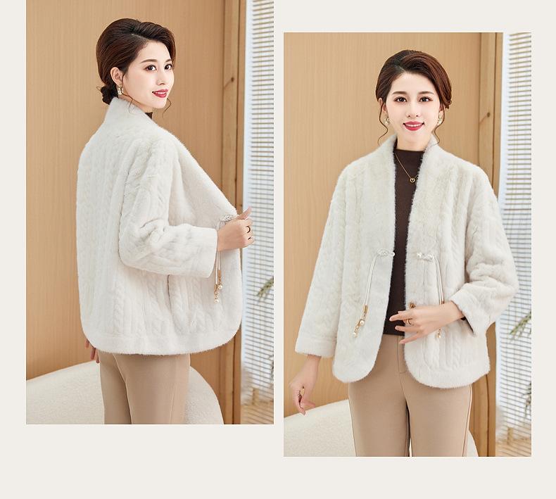 Abrigo de piel de visón de imitación de cachemir grueso para madres de mediana edad y mayores, de moda noble, abrigo de piel de otoño e invierno de una pieza, top corto