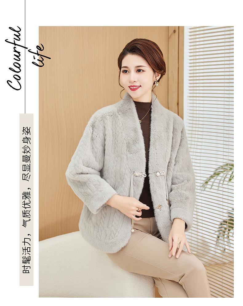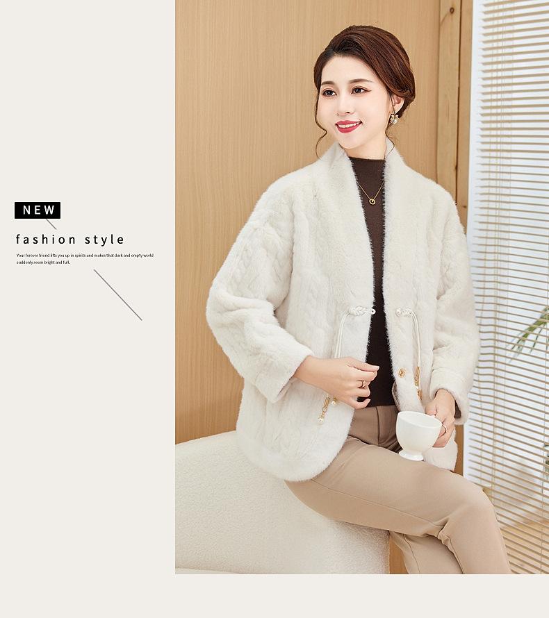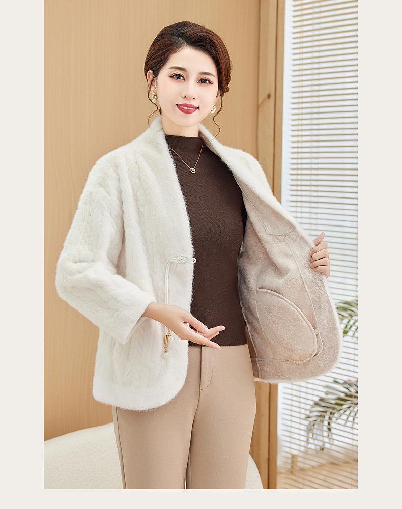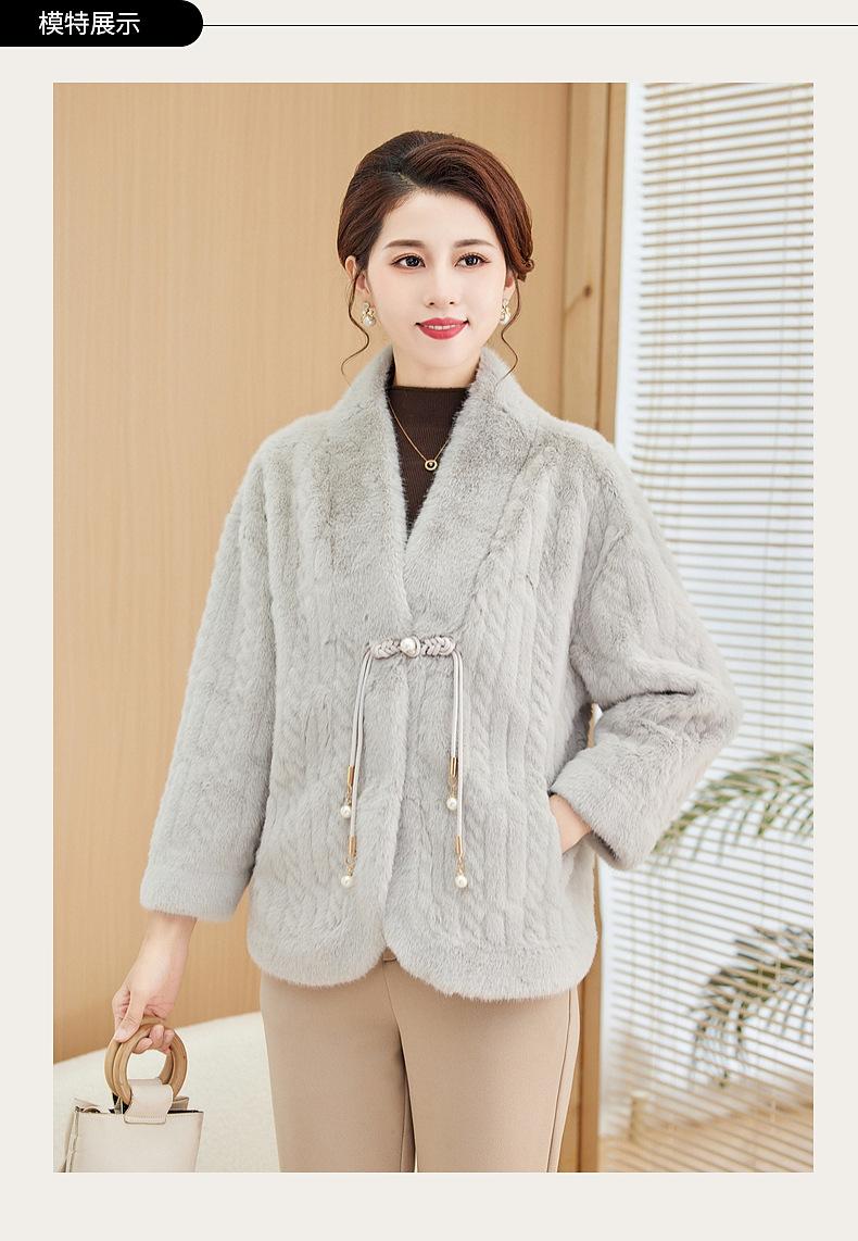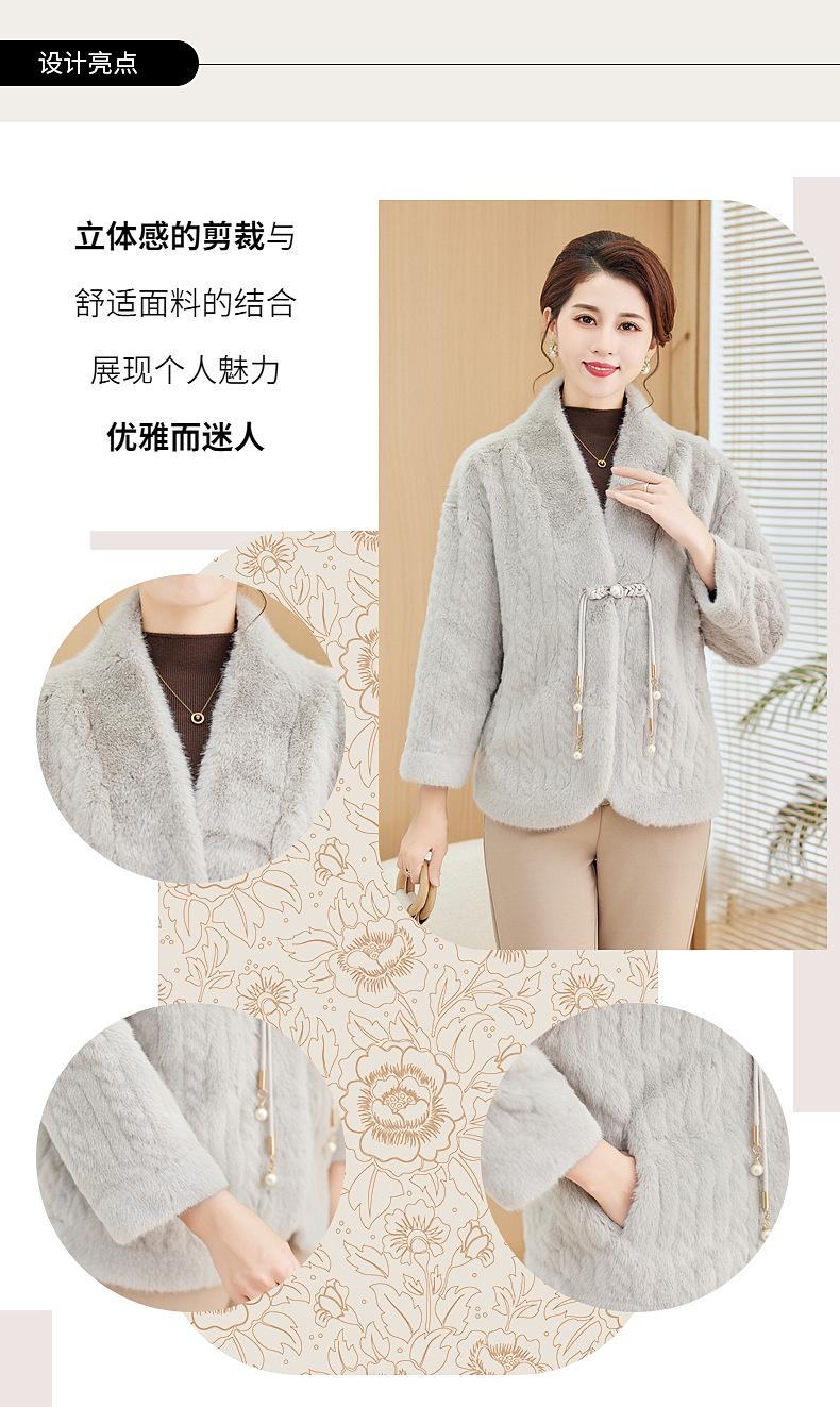 Abrigo de piel de visón de imitación de cachemir grueso para madres de mediana edad y mayores, de moda noble, abrigo de piel de otoño e invierno de una pieza, top corto