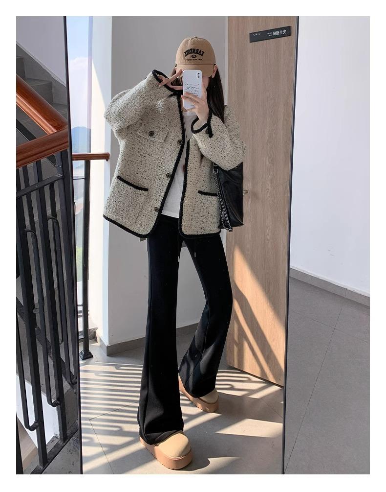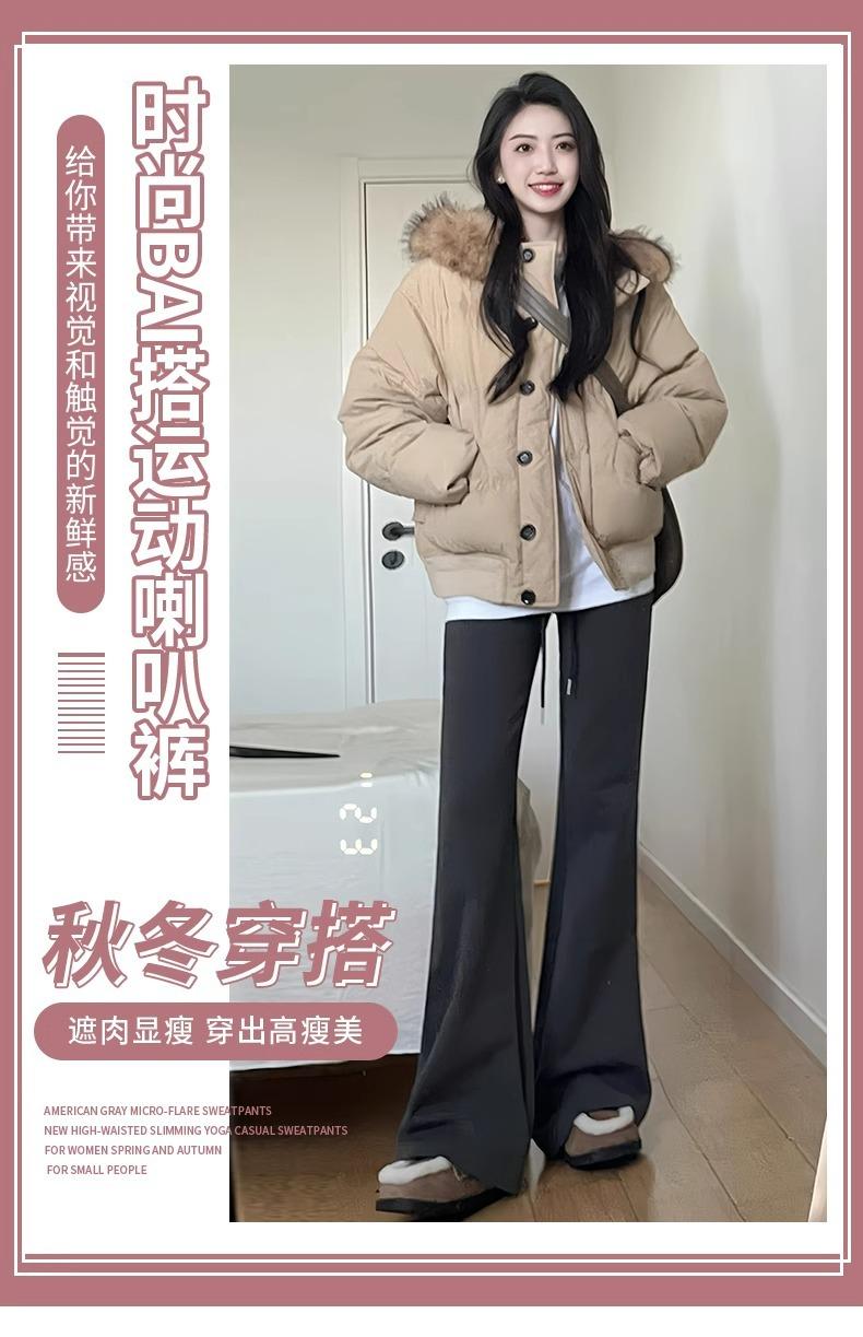 Pantalón de chándal pequeño de herradura 145cm Pantalón acampanado ajustado Pantalón de chándal micro estrecho Primavera y otoño para mujer 150 Cintura alta Casual