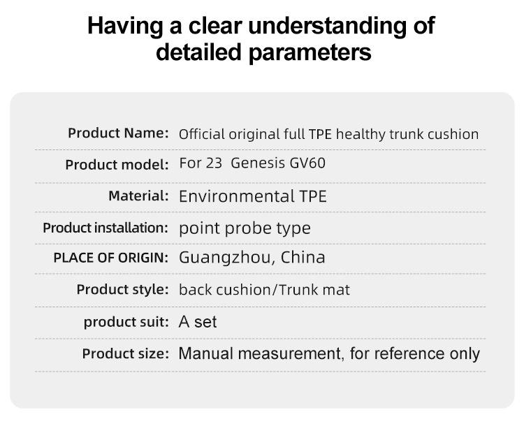 Adecuado para 23 Tapetes de Maletero de Coche Genesis Gv60 y Tapetes Tpe para Respaldo de Asiento para Ventas Transfronterizas