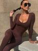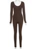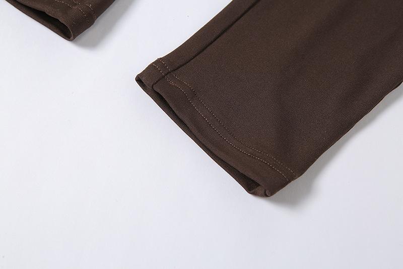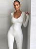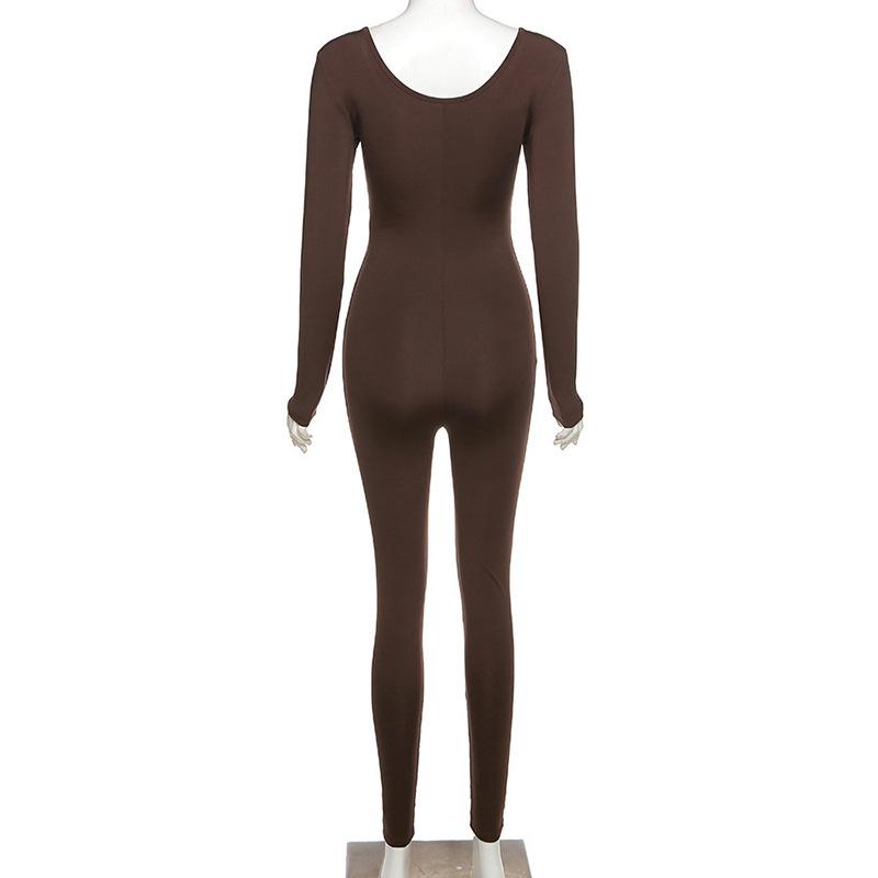 Pantalones de una pieza de color sólido de moda con top de manga larga sexy de corte bajo irregular con diseño de Spice Girl europeo y americano
