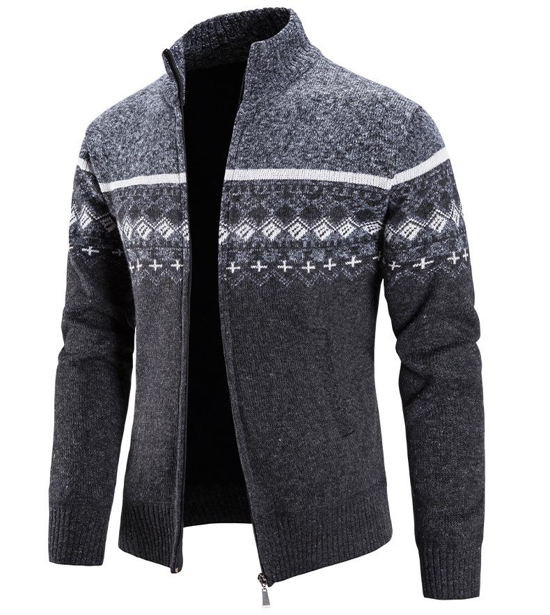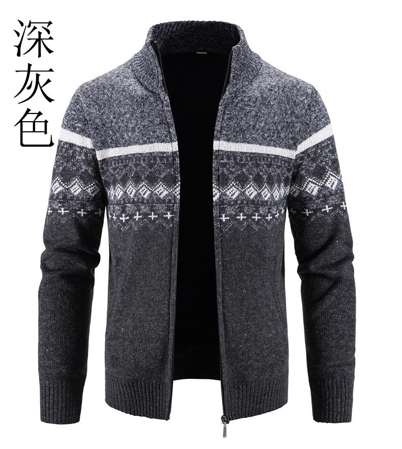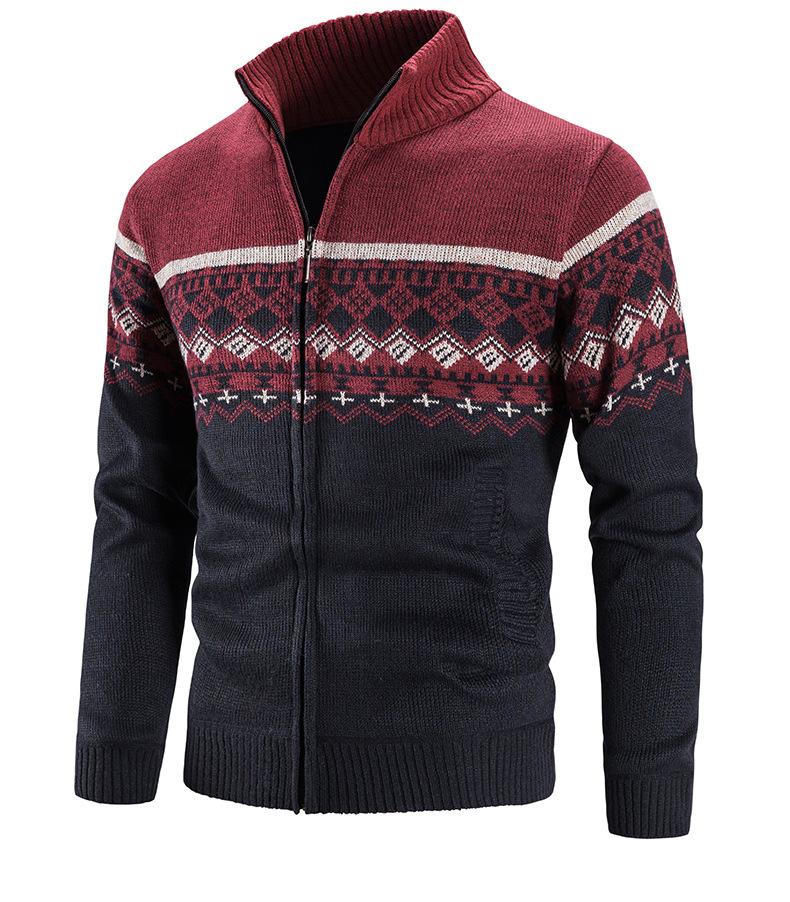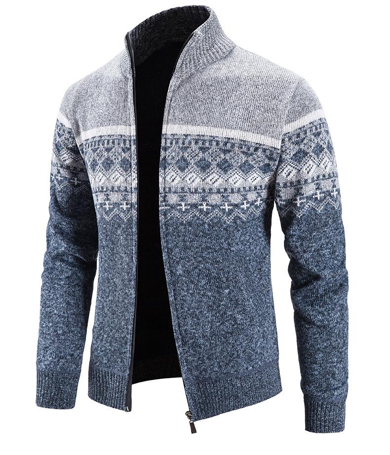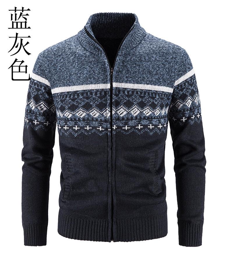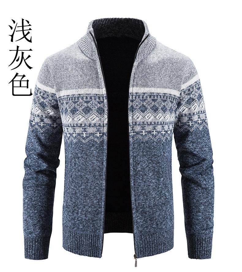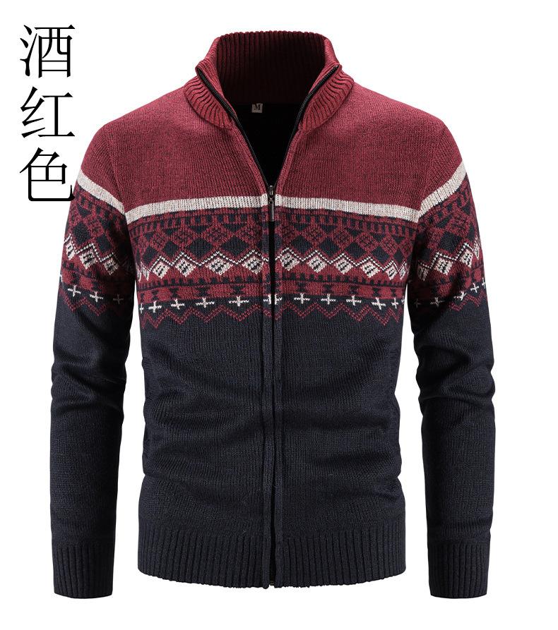 Chaqueta de otoño para hombre, nueva chaqueta de punto con cuello levantado informal de terciopelo con estampado de colores a juego y degradado, para comercio exterior
