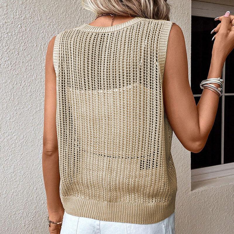 Yangyang Verano Blusa de Playa Europea y Americana Amazon Moda Transfronteriza Sin Mangas Cuello en V Chaleco de Punto Blusa Bikini
