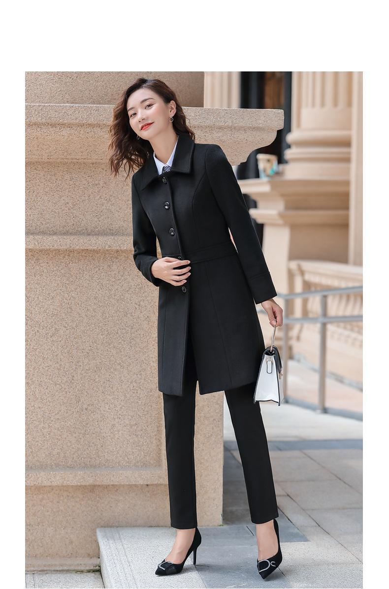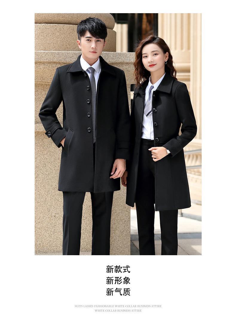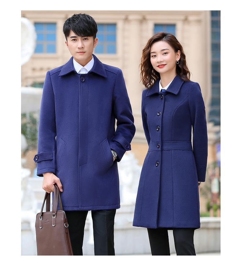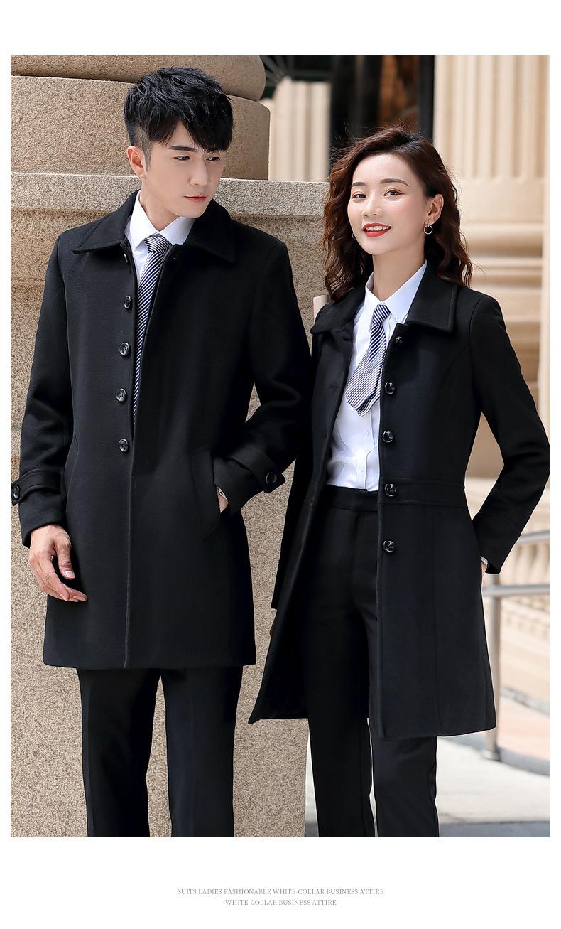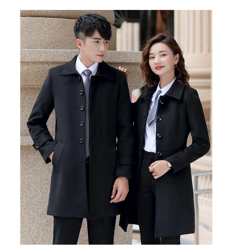 Atuendo de negocios para hombre y mujer con el mismo abrigo de lana de negocios otoño e invierno Nuevo temperamento Versión coreana del abrigo largo de lana negro