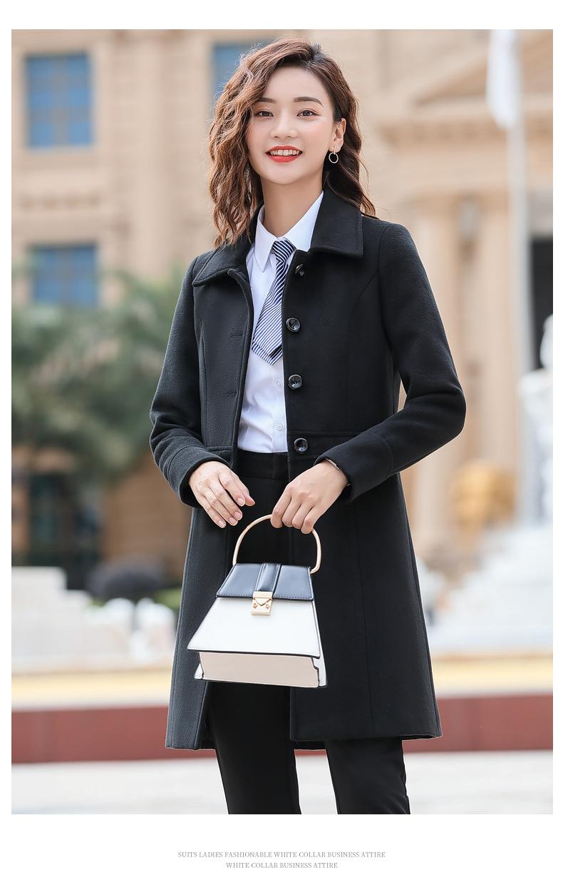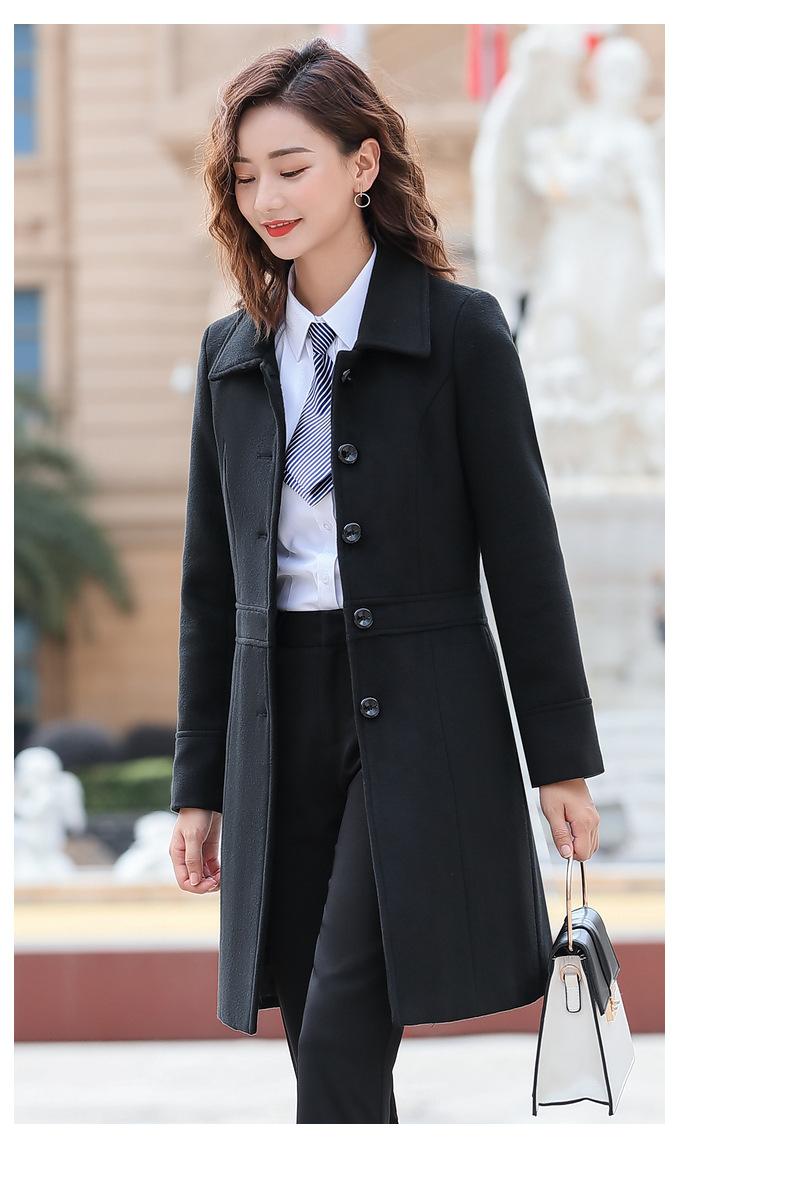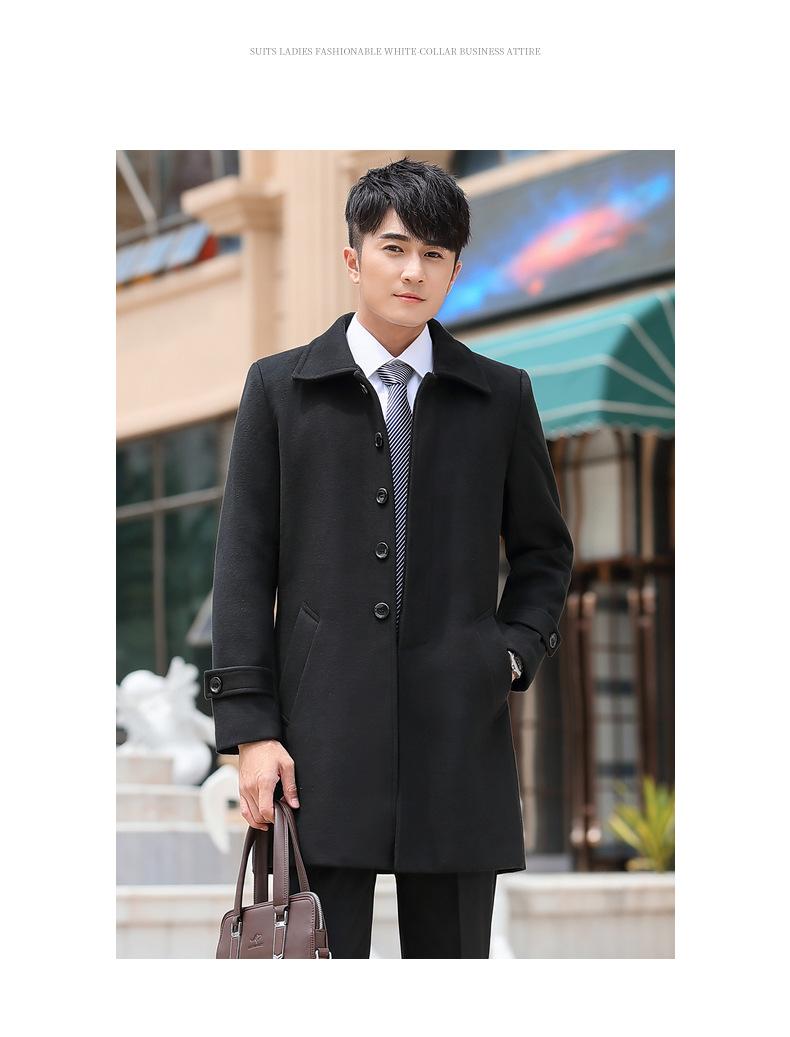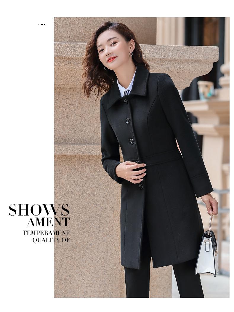 Atuendo de negocios para hombre y mujer con el mismo abrigo de lana de negocios otoño e invierno Nuevo temperamento Versión coreana del abrigo largo de lana negro