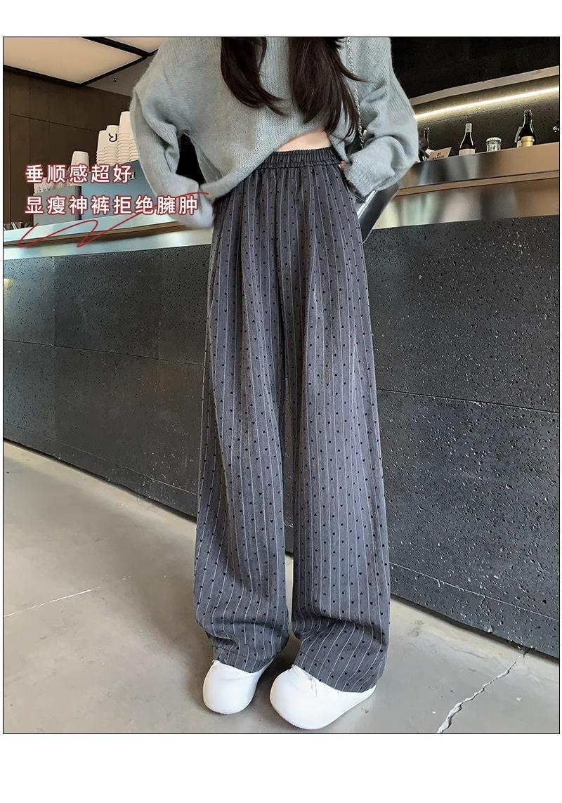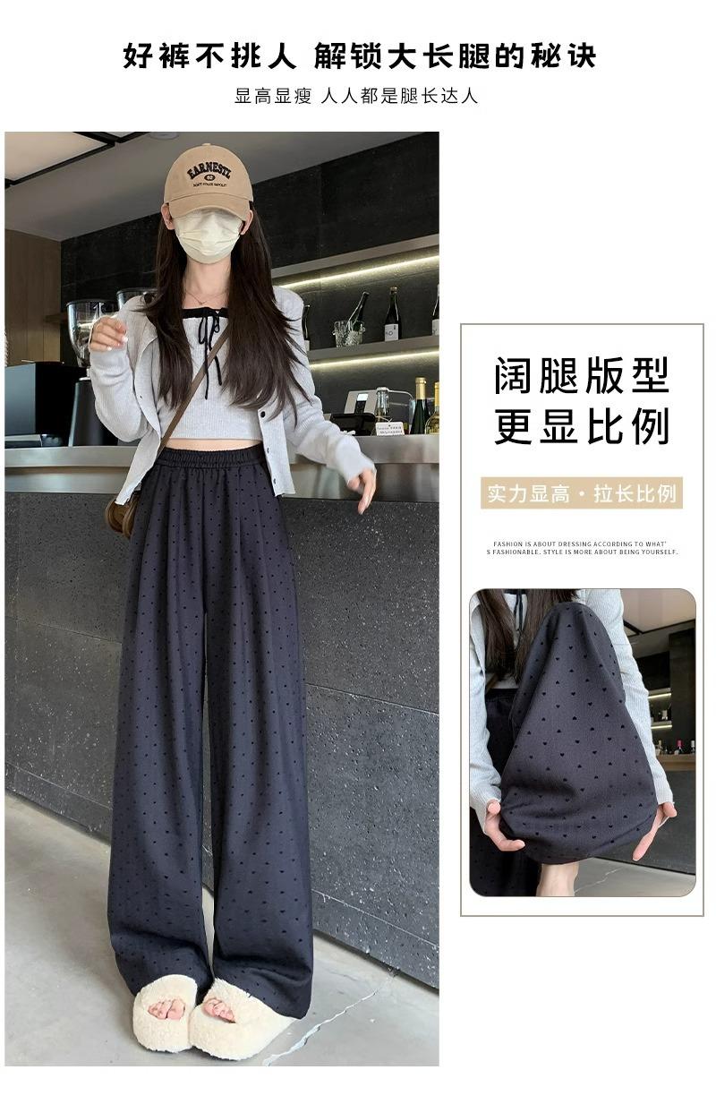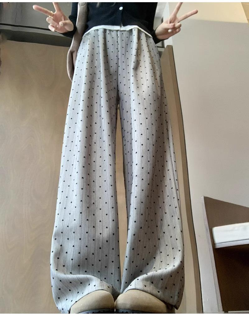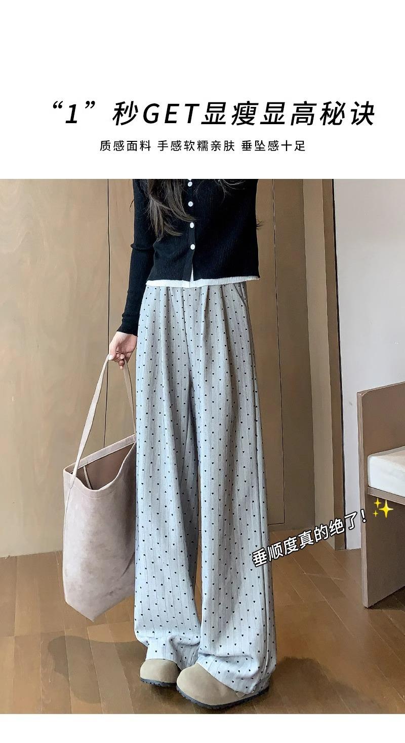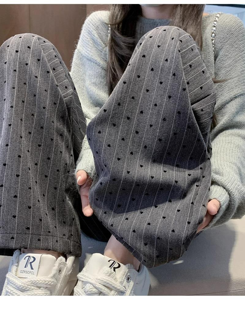 Pantalones de Pierna Ancha Pequeños 2024 Nuevo Primavera y Otoño gris oscuro Love Punto de Onda Pantalones Casuales Retro Holgados de Alta Gama para Mujer