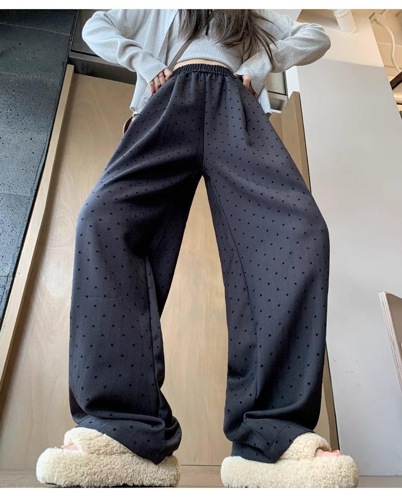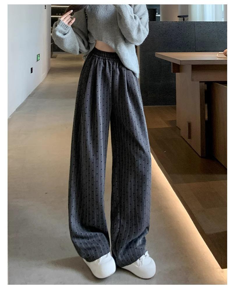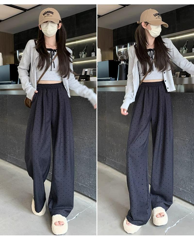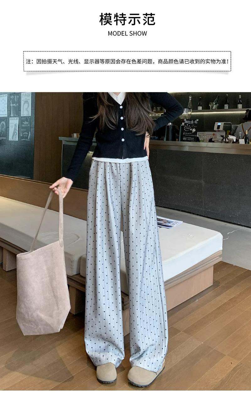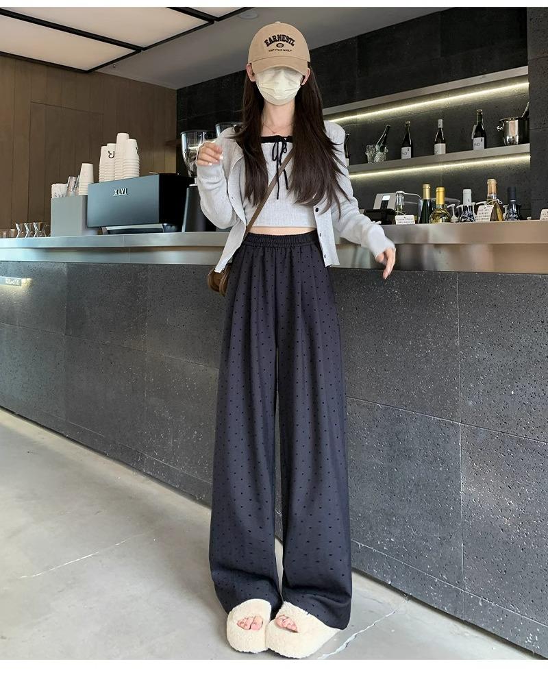Pantalones de Pierna Ancha Pequeños 2024 Nuevo Primavera y Otoño gris oscuro Love Punto de Onda Pantalones Casuales Retro Holgados de Alta Gama para Mujer