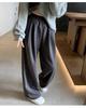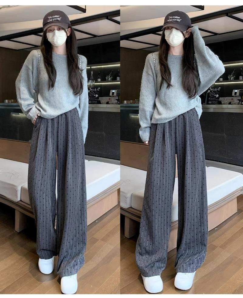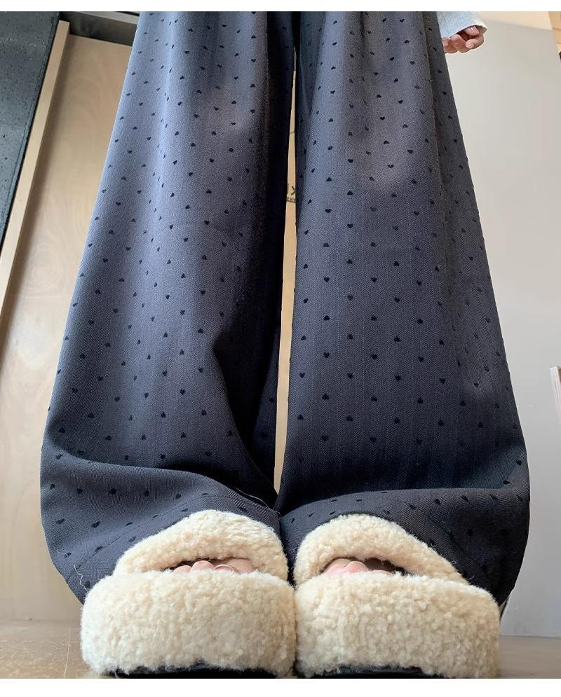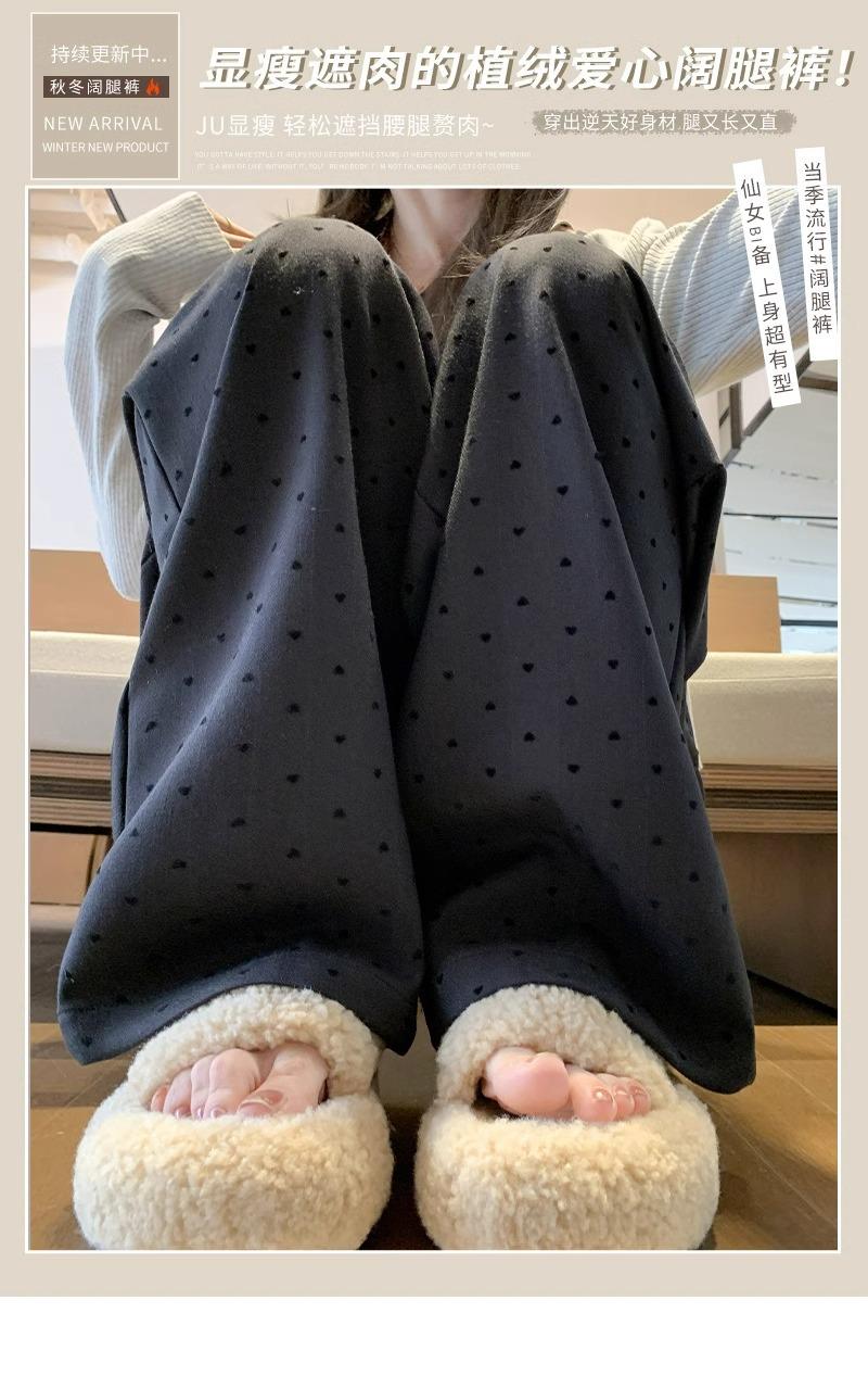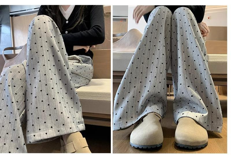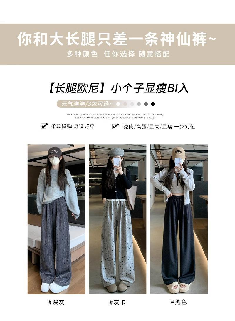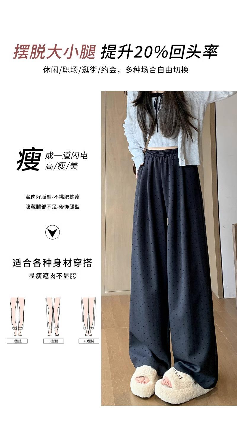 Pantalones de Pierna Ancha Pequeños 2024 Nuevo Primavera y Otoño gris oscuro Love Punto de Onda Pantalones Casuales Retro Holgados de Alta Gama para Mujer
