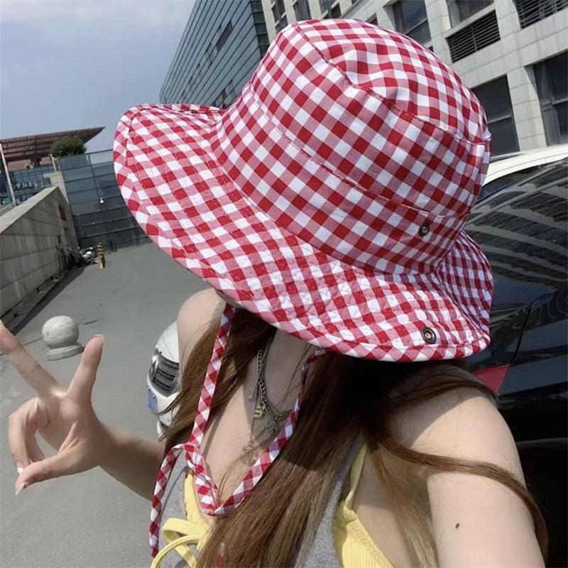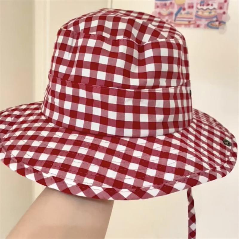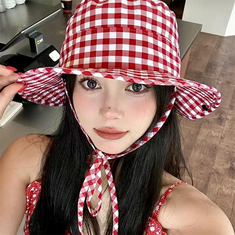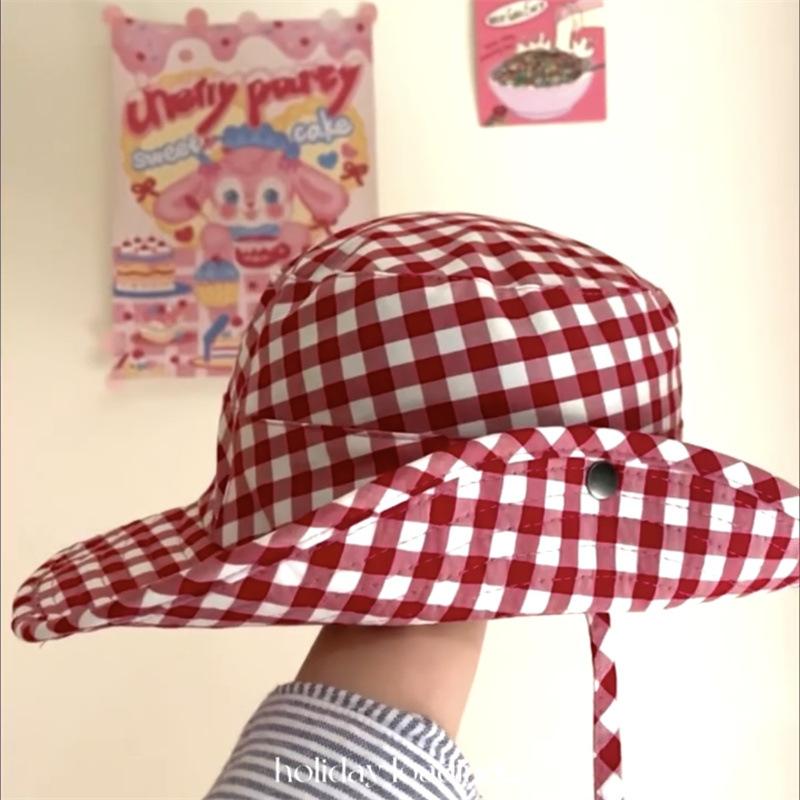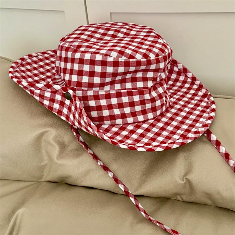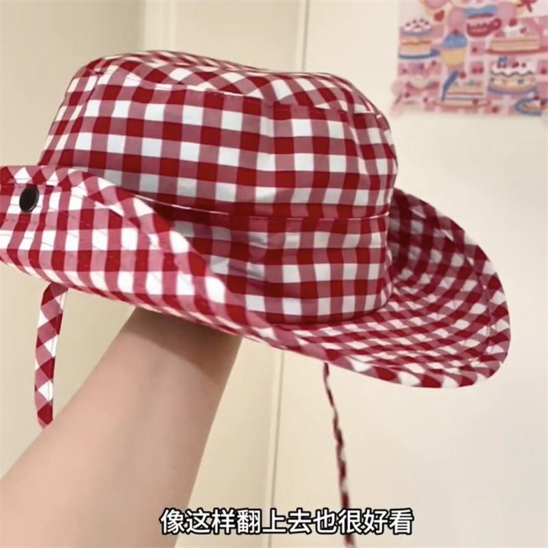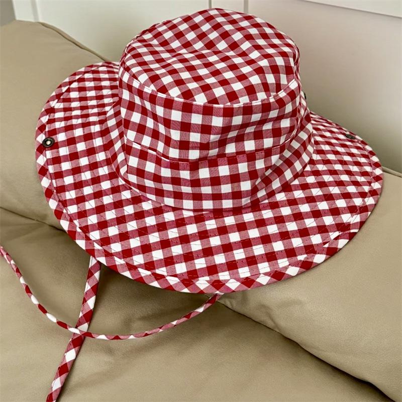 Sombrero de pescador con diseño de libro rojo y cuadros rojos, protector solar de verano, gorra de montañismo, sombrero grande de red roja, parasol con ala para ciclismo, ultravioleta