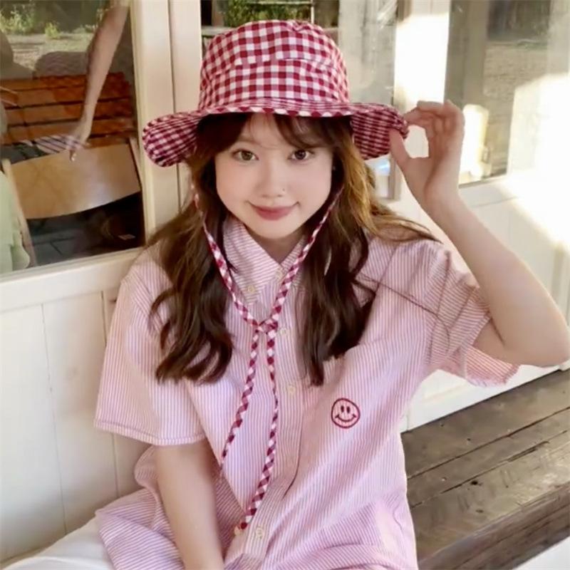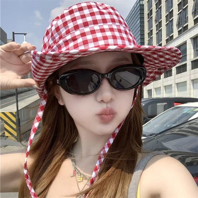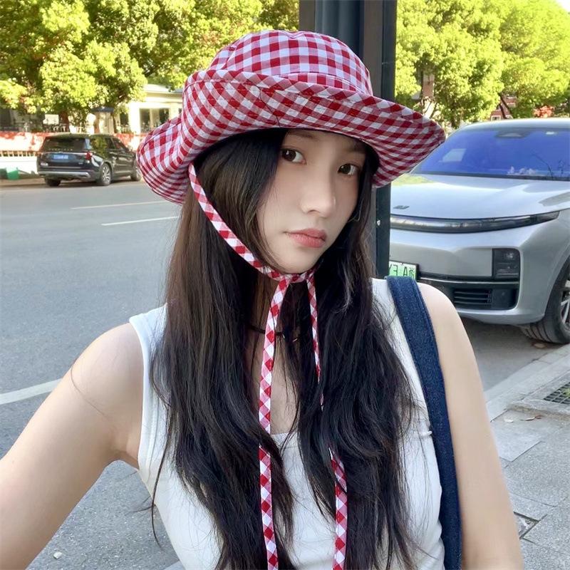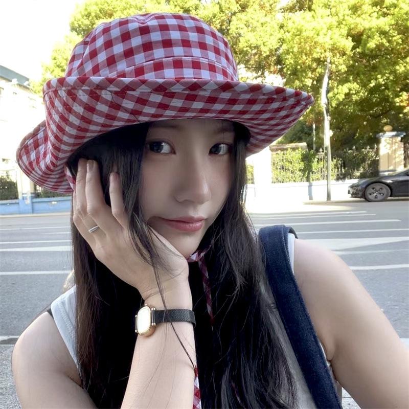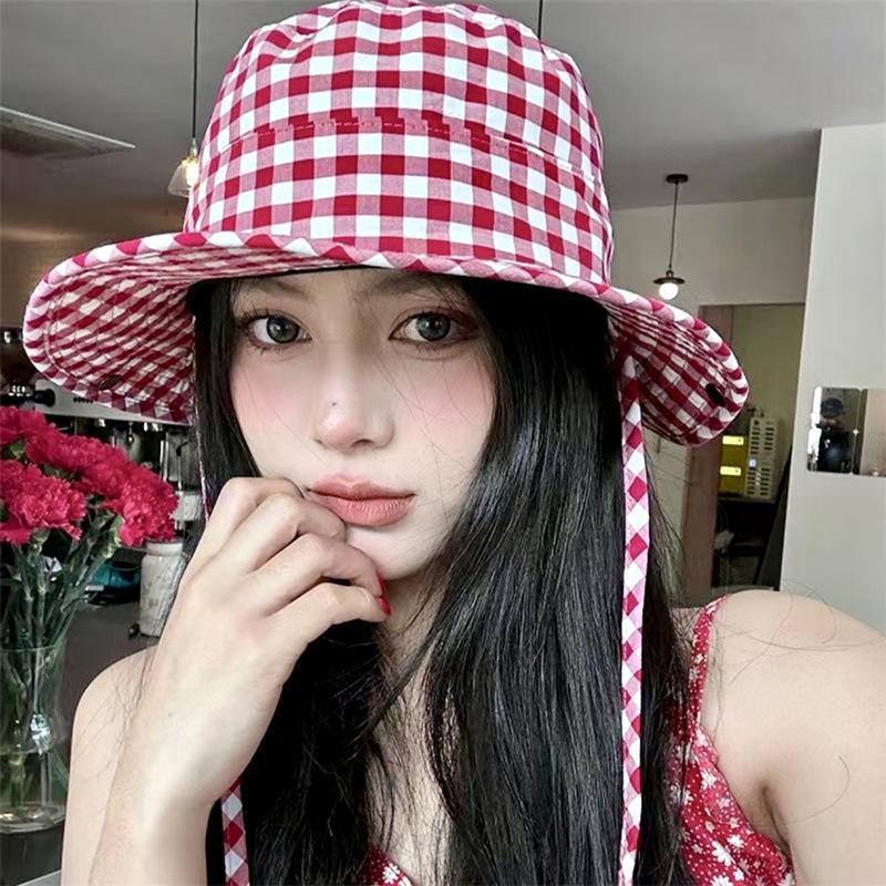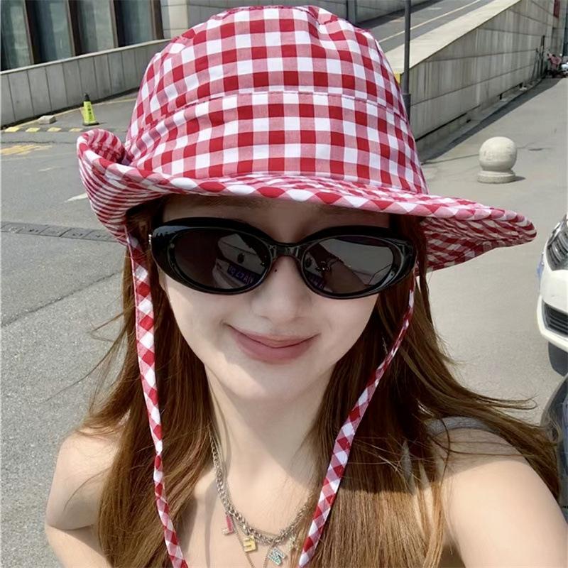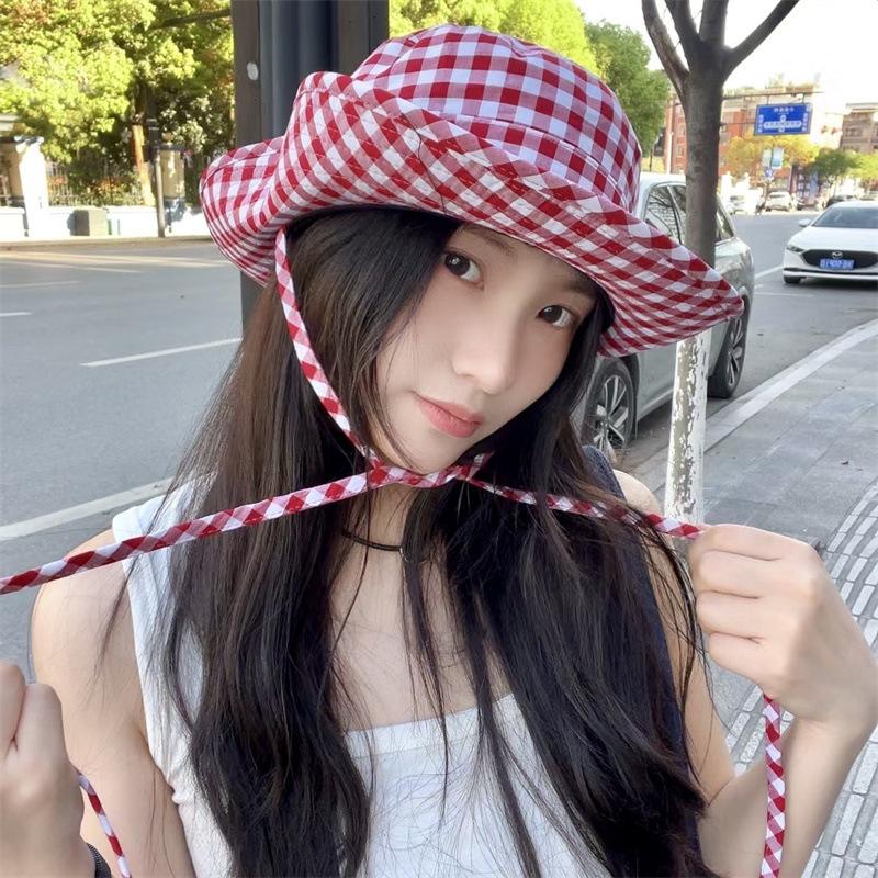 Sombrero de pescador con diseño de libro rojo y cuadros rojos, protector solar de verano, gorra de montañismo, sombrero grande de red roja, parasol con ala para ciclismo, ultravioleta