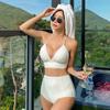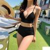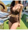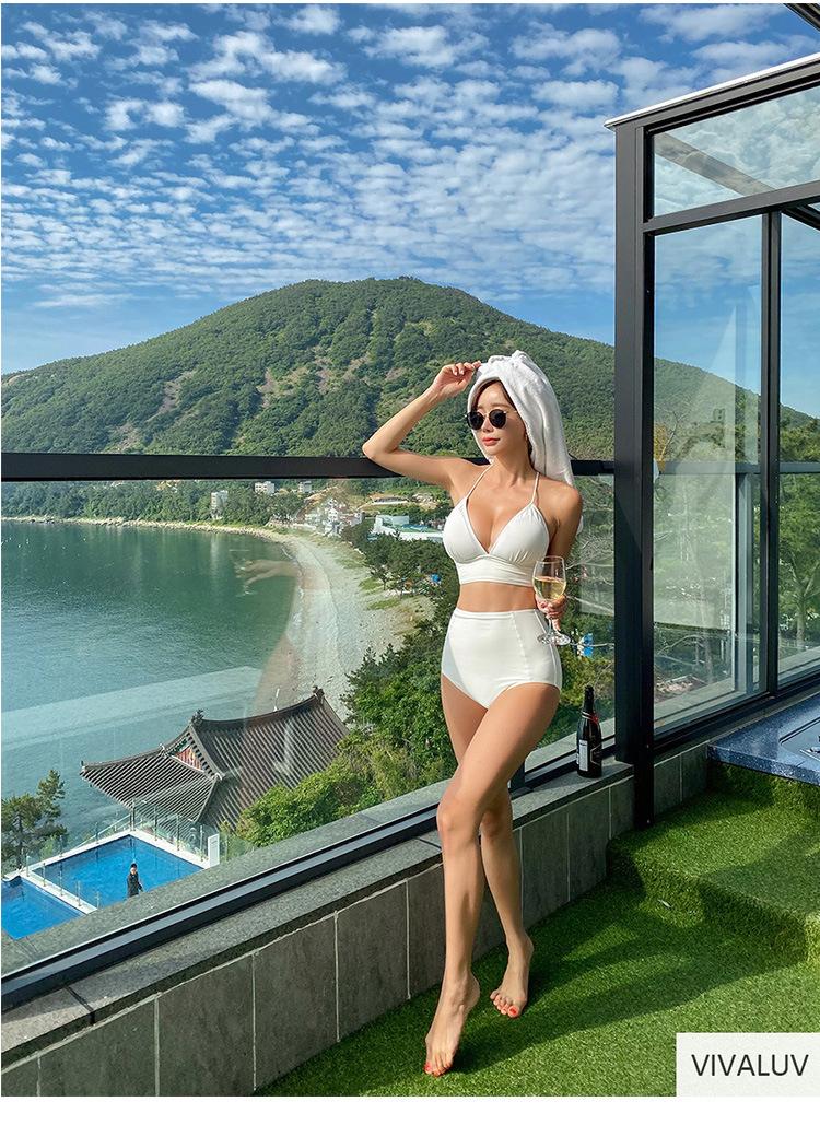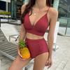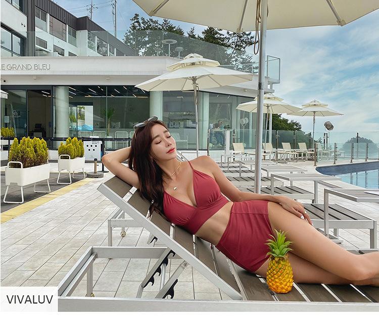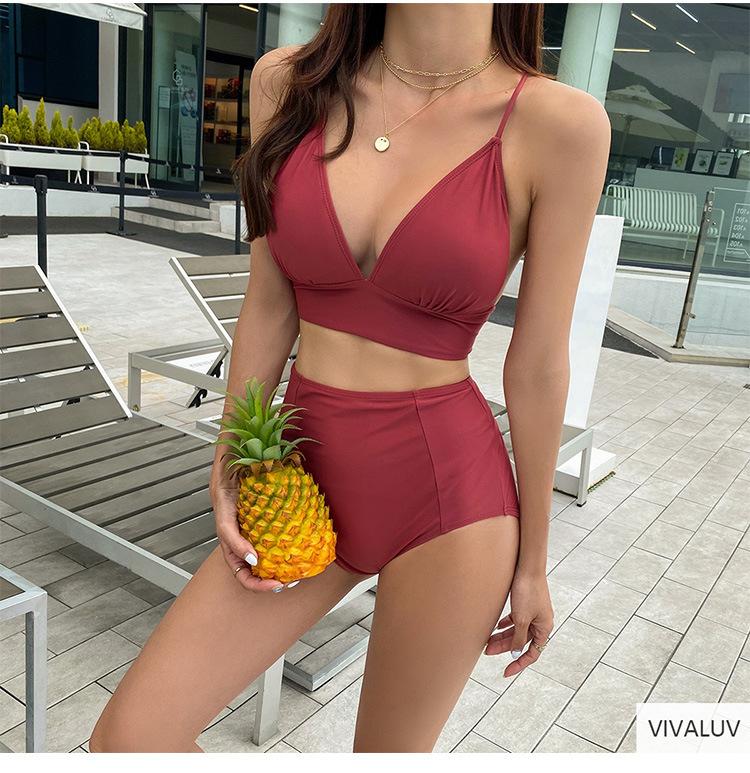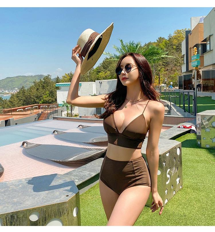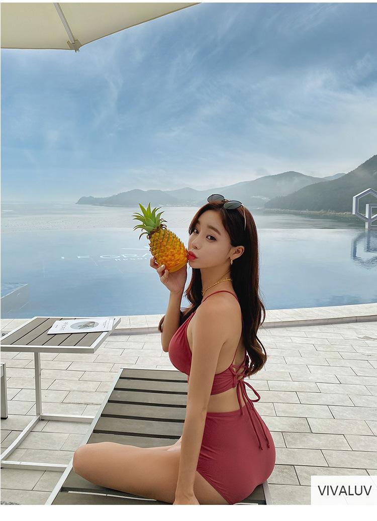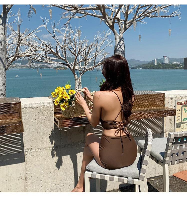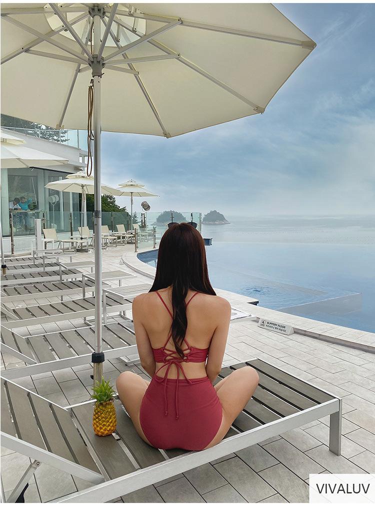 Nuevo traje de baño de estilo coreano con abertura en color sólido, escote en V profundo, cintura alta, que cubre el vientre, adelgazamiento, con cordones cruzados, ideal para vacaciones en la playa y aguas termales.