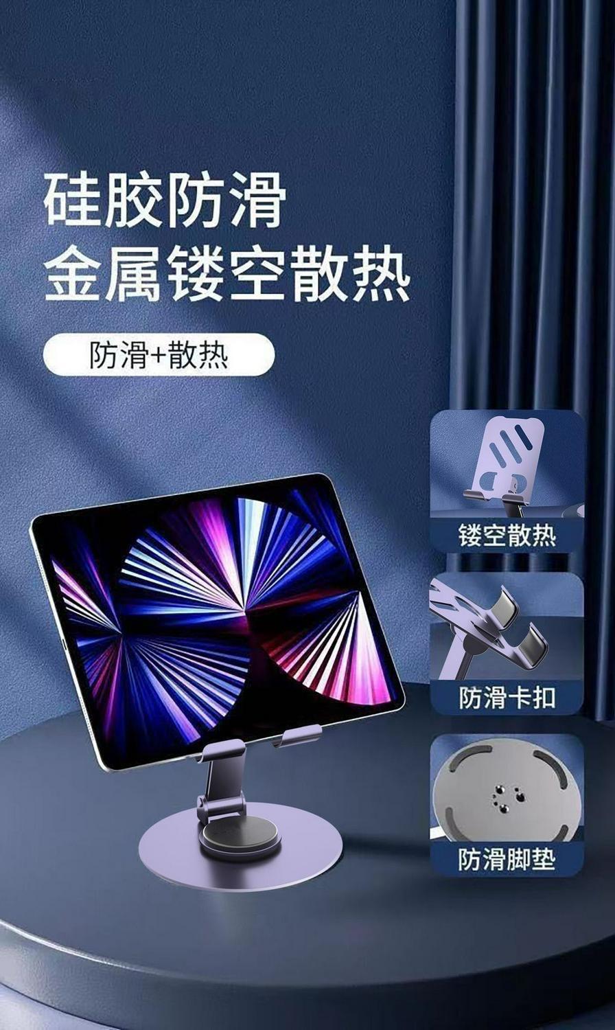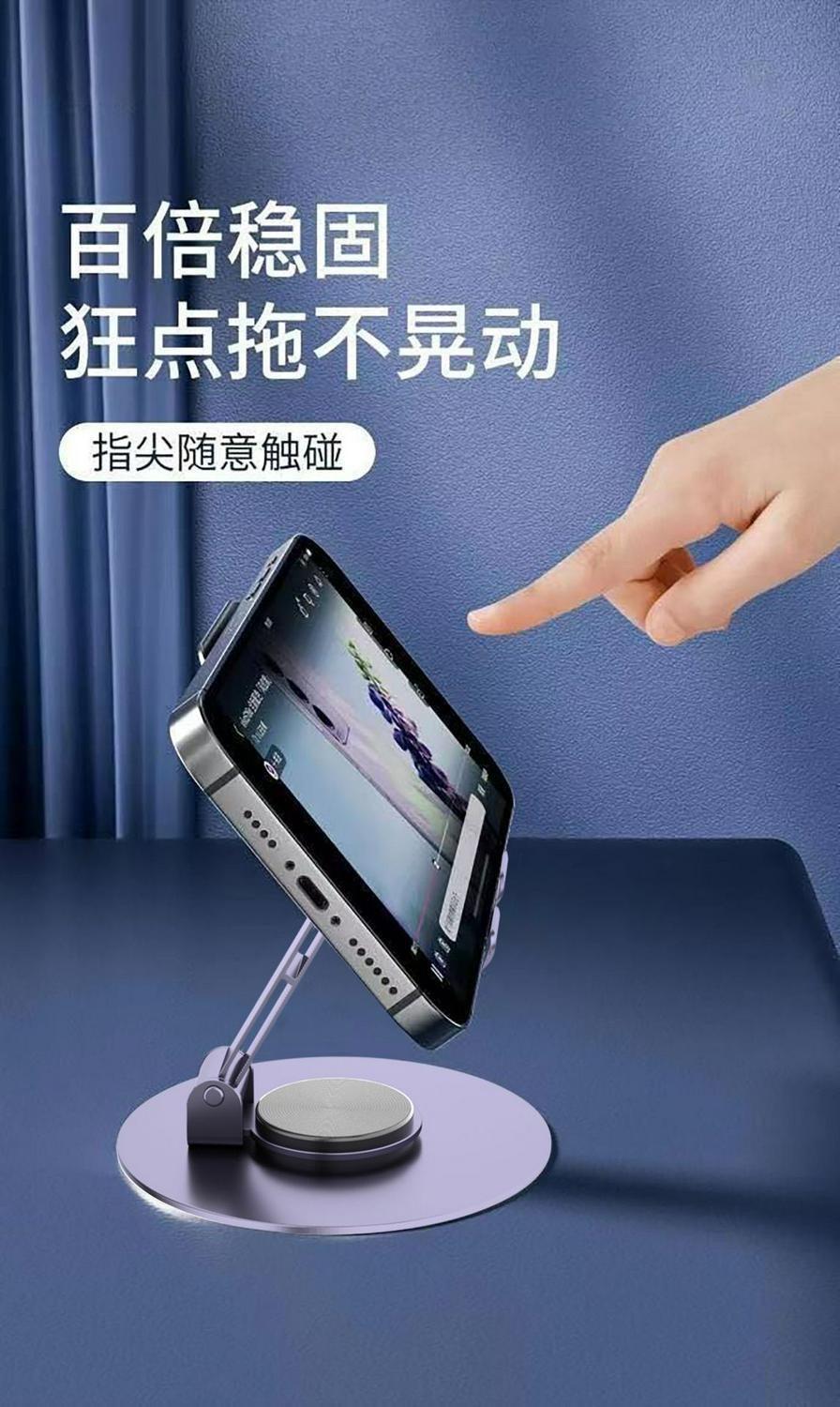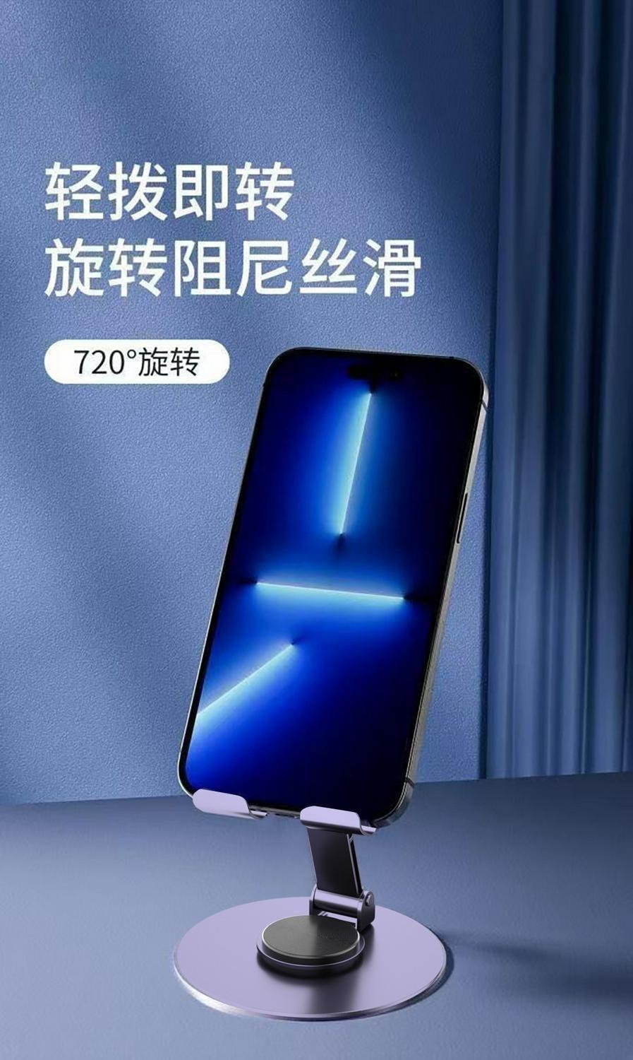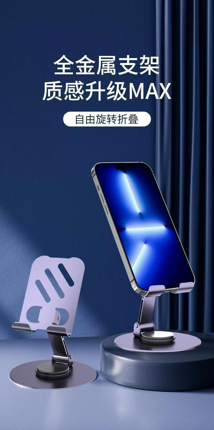 Soporte para teléfono móvil plegable de 360 grados totalmente metálico, soporte giratorio portátil de escritorio para teléfono móvil, soporte de elevación perezoso al por mayor