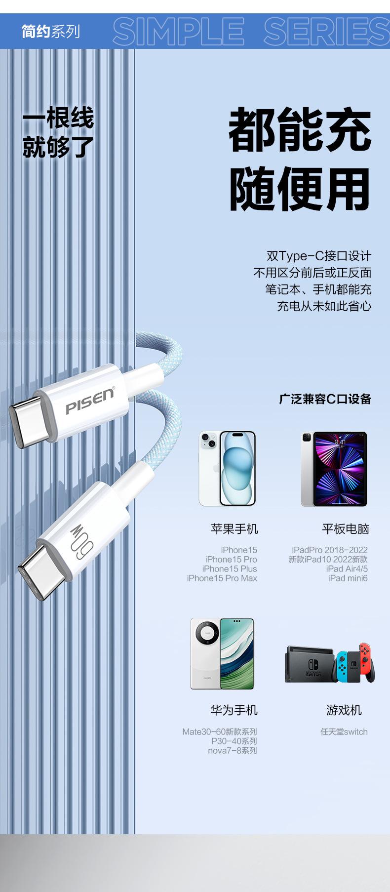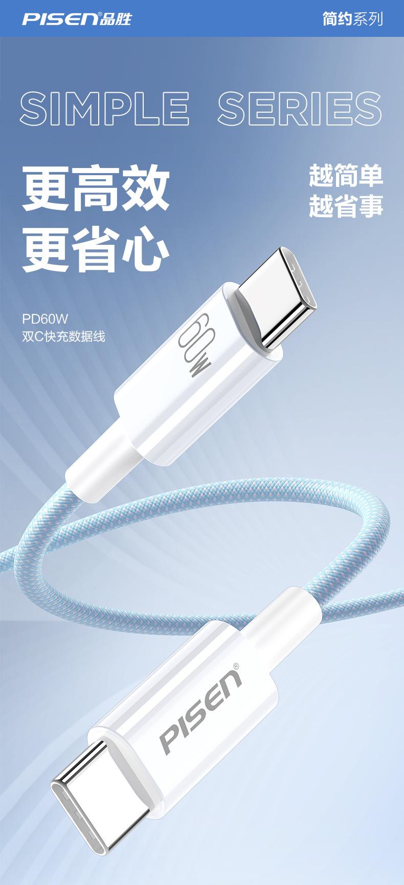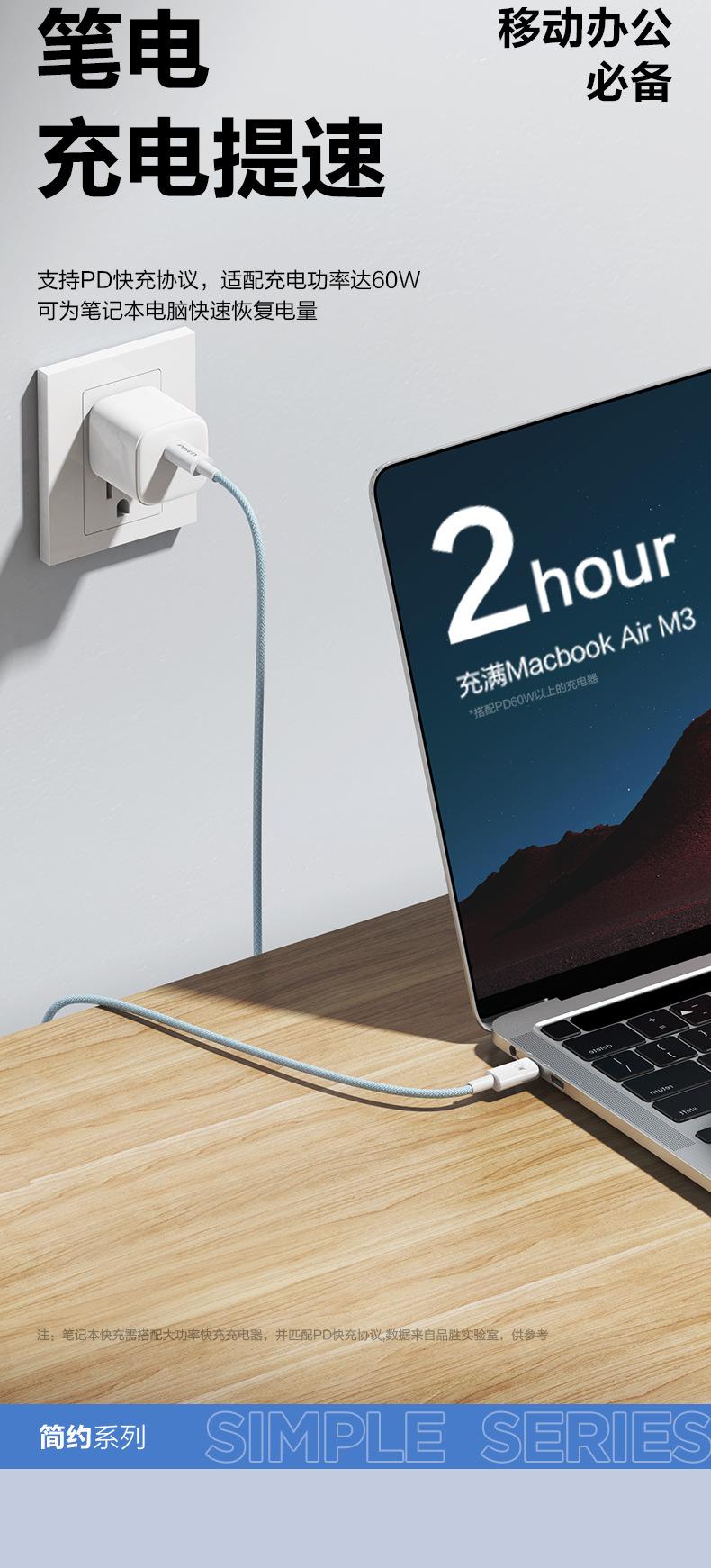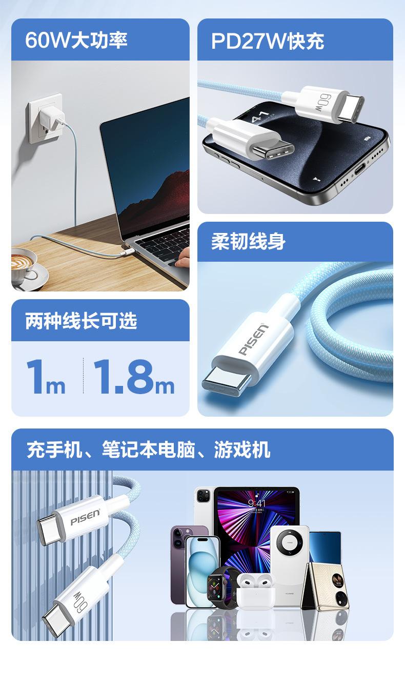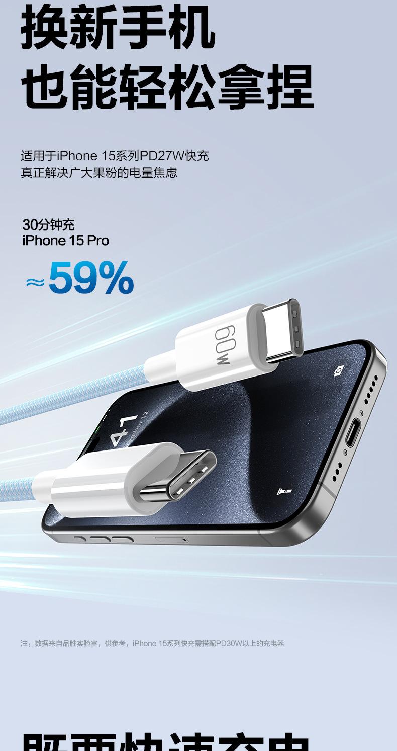 [Double C PD60W light blue 1 m] Applicable to Apple 15/Android/Notebook