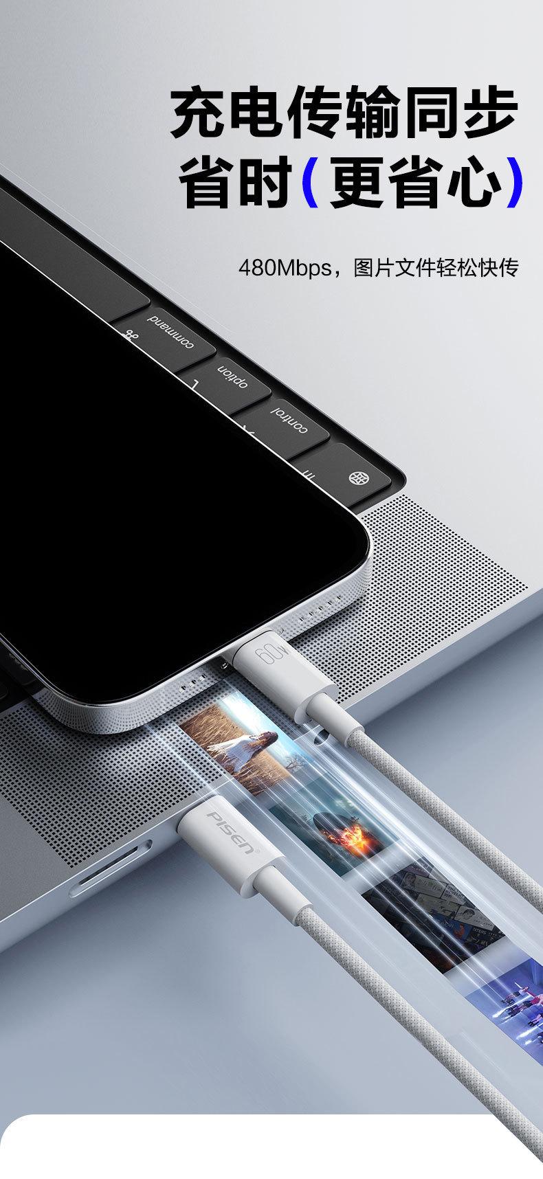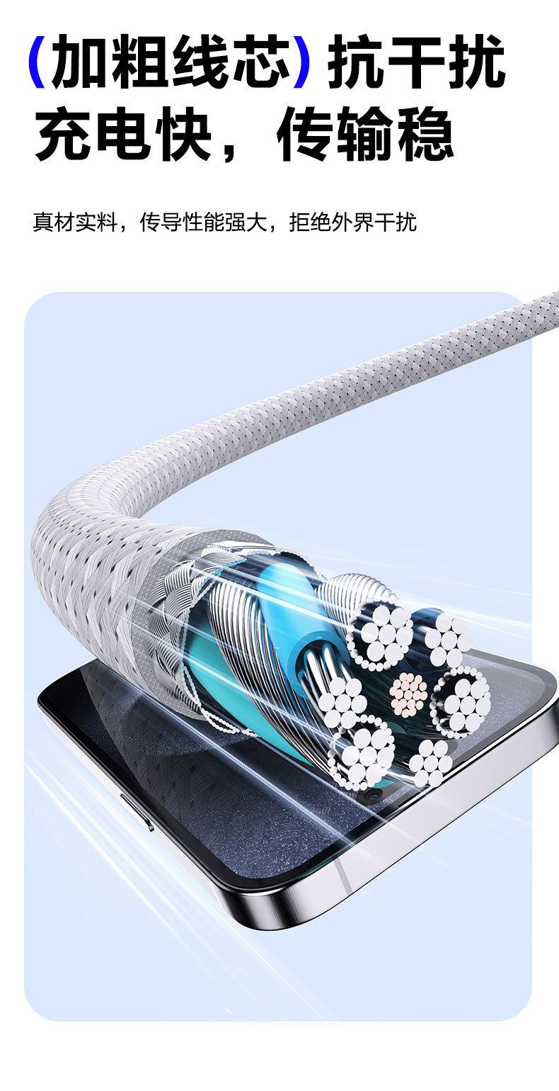 Pinsheng es adecuado para la línea de carga rápida trenzada Apple 15, la línea de carga iPhone 15promax, la línea de datos tipo C doble