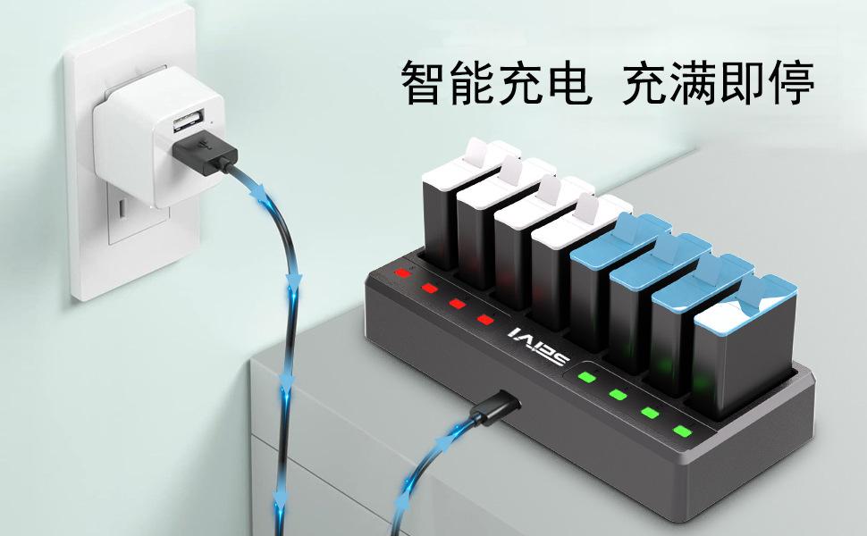 Accesorios para Cámara de Acción GoPro Cargador de Batería 8 Ranuras Tipo-C Compatible con Batería Gopro9101112 Exterior