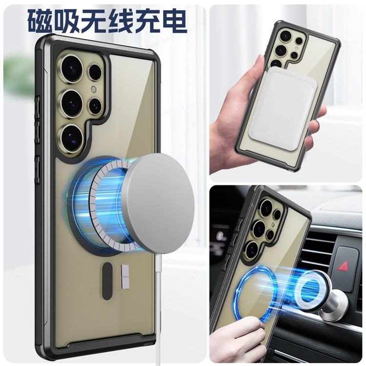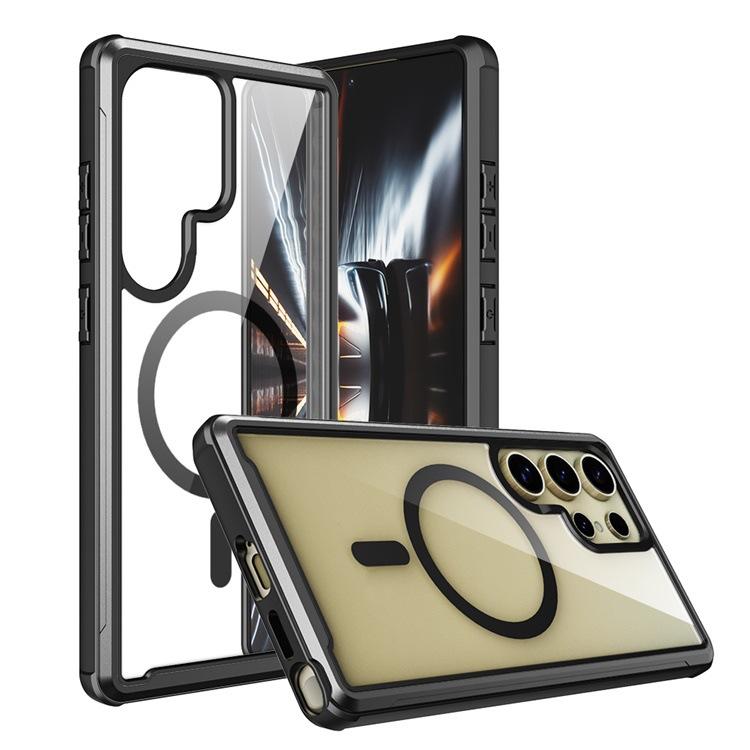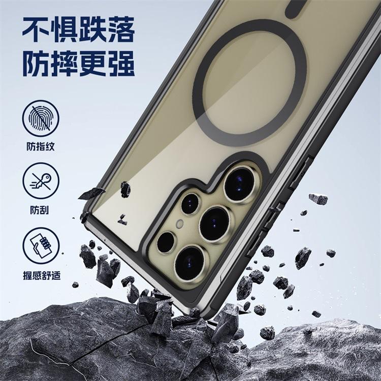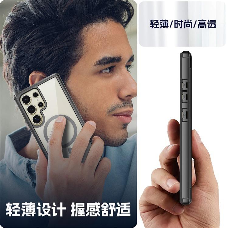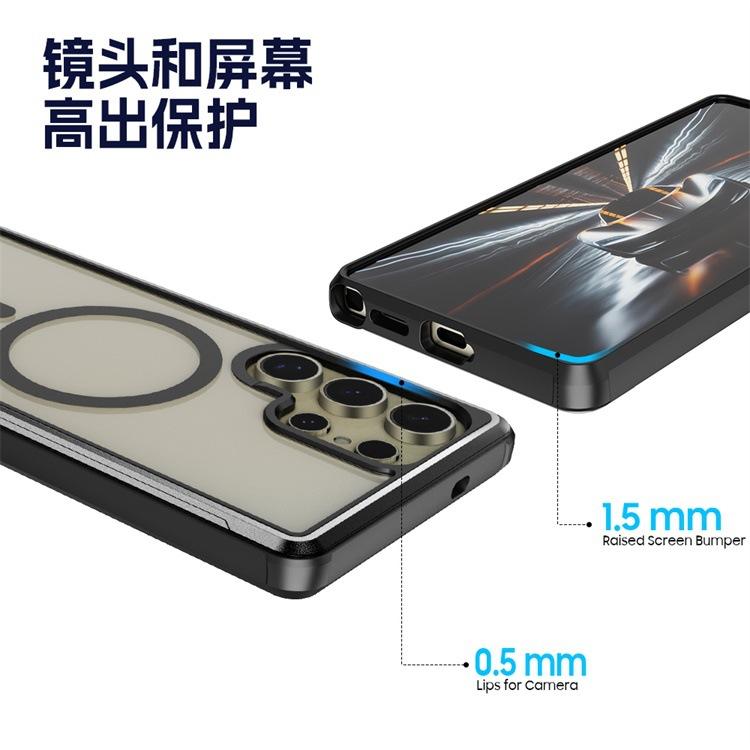 Adecuado para Samsung S25Ultra Marco de Metal Funda para Teléfono Móvil Transparente Magnética Anticaída Cubierta Protectora para Teléfono Móvil S24U
