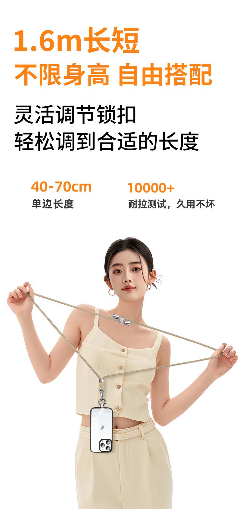 [beige] adjustable lanyard + alloy ring buckle + large hanging hole clip + free red ring