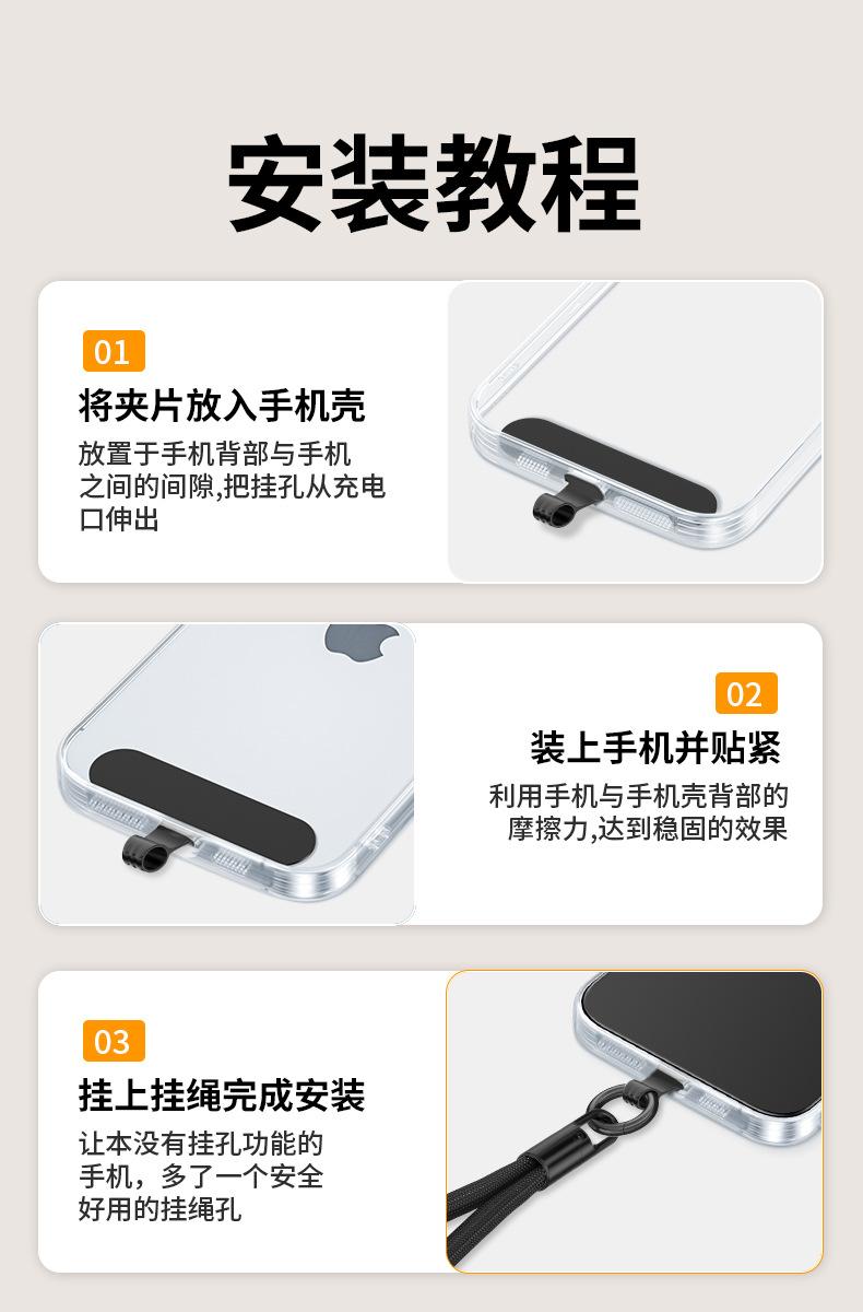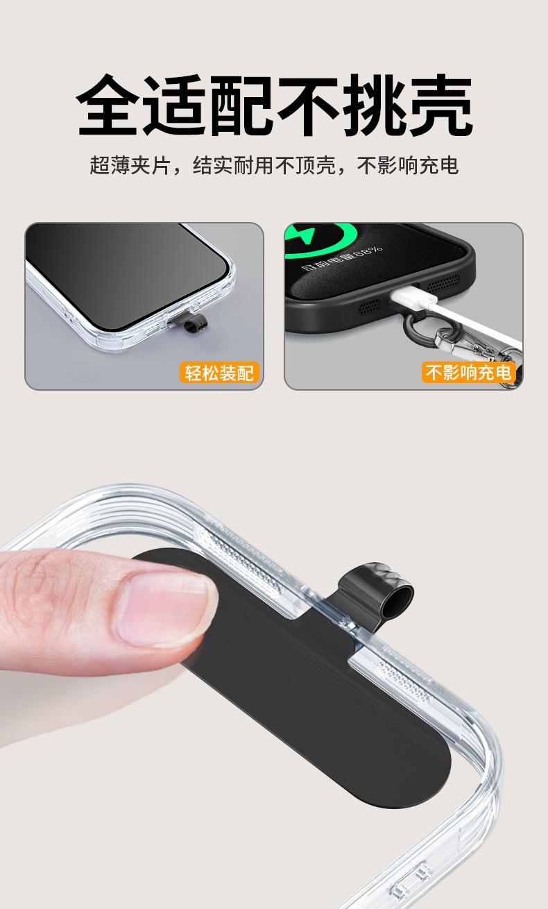[classic black] adjustable lanyard + alloy ring buckle + large hanging hole clip + free red ring