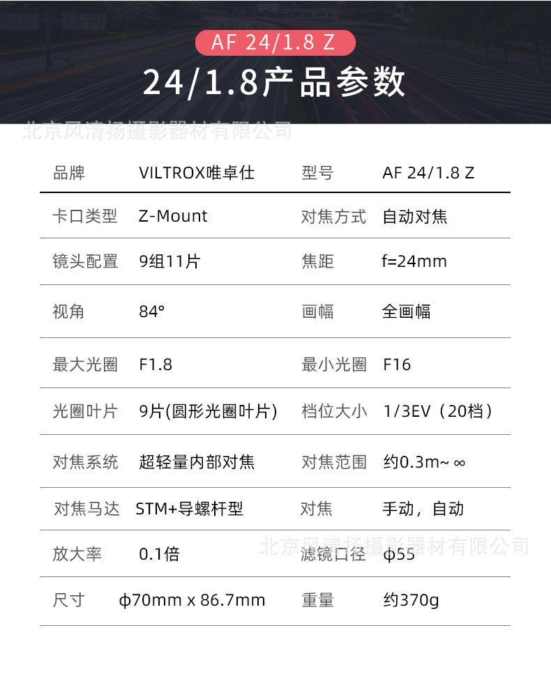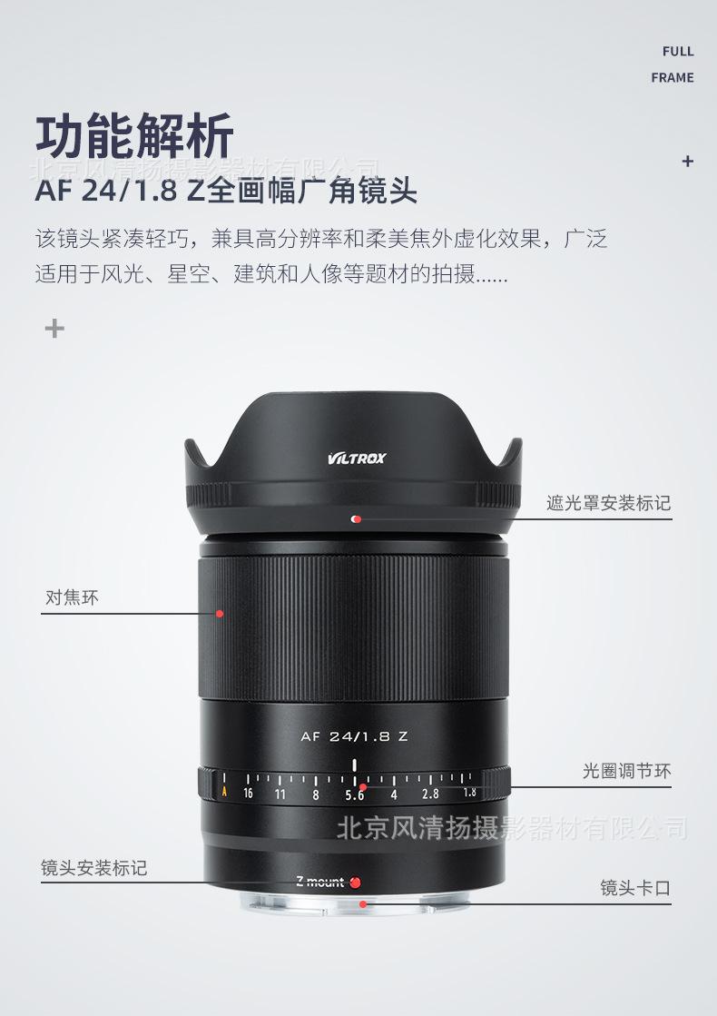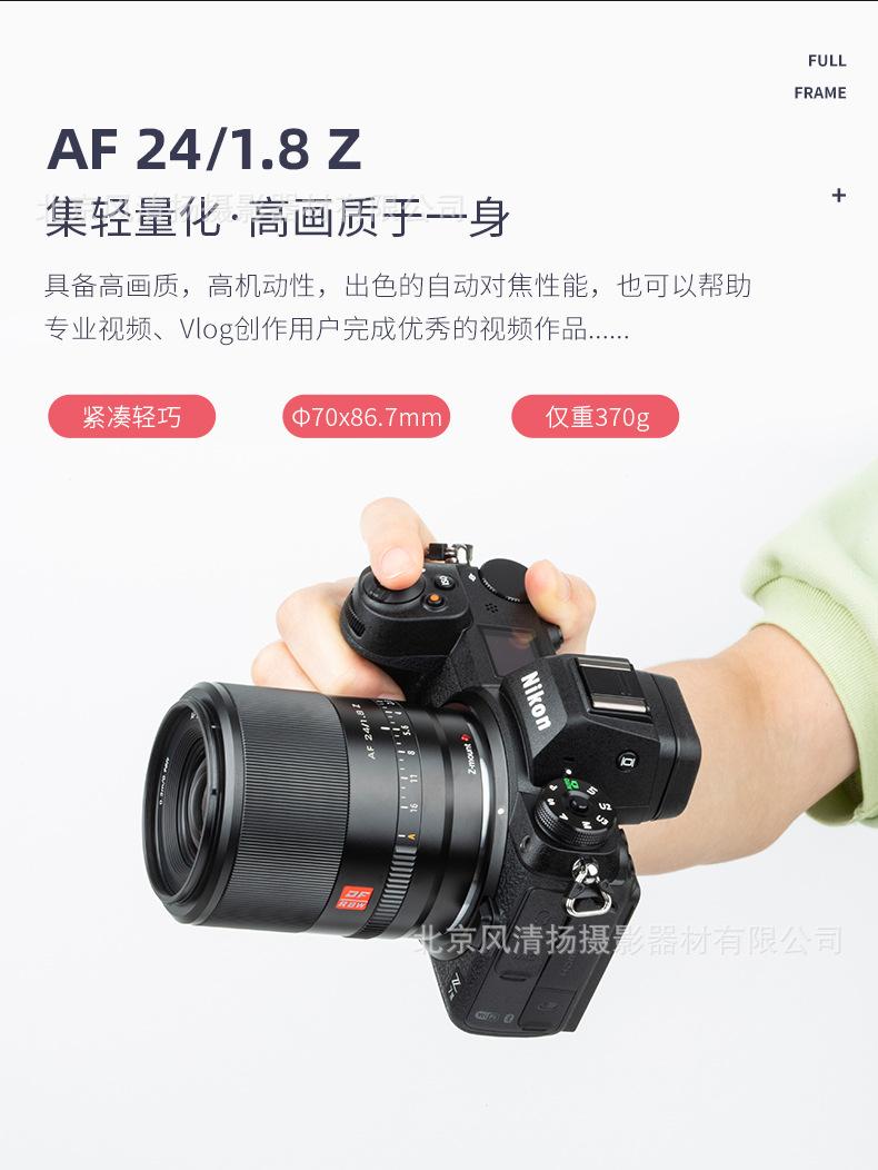 Lente gran angular de focal fija de 24 mm F1.8 de fotograma completo de Wei Zhuo Shi adecuada para montura Nikon Z AF24F18Z