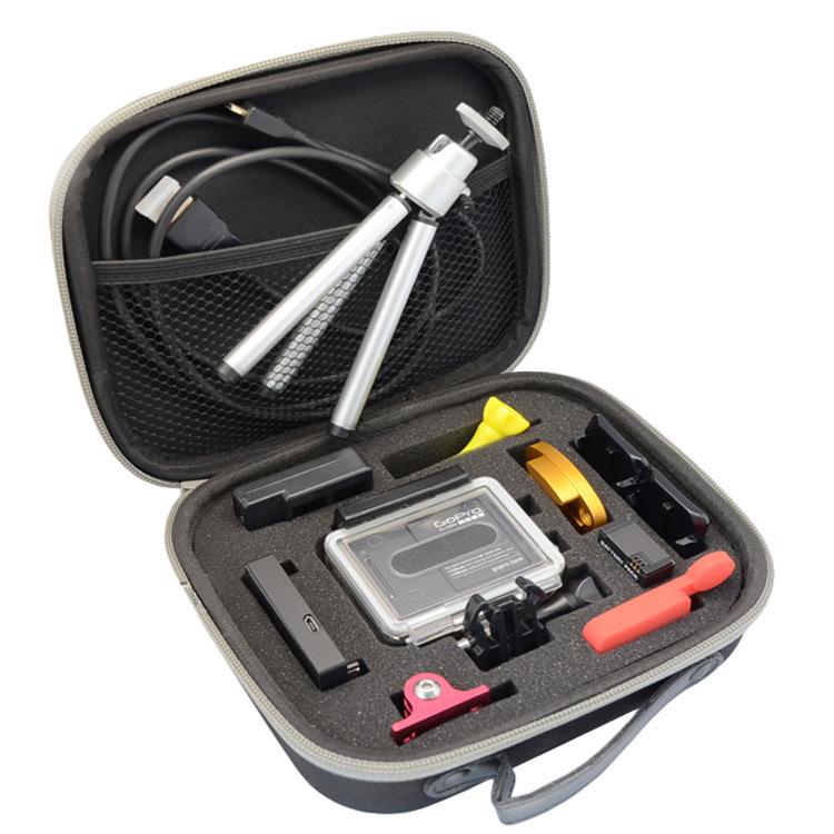 La bolsa de almacenamiento mediana para cámaras GOPRO está hecha de EVA, con una superficie de tela Oxford y una esponja integrada.