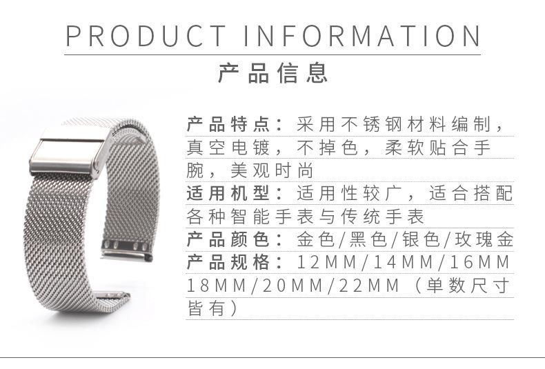 Material: Correa de malla milanesa de acero inoxidable 304