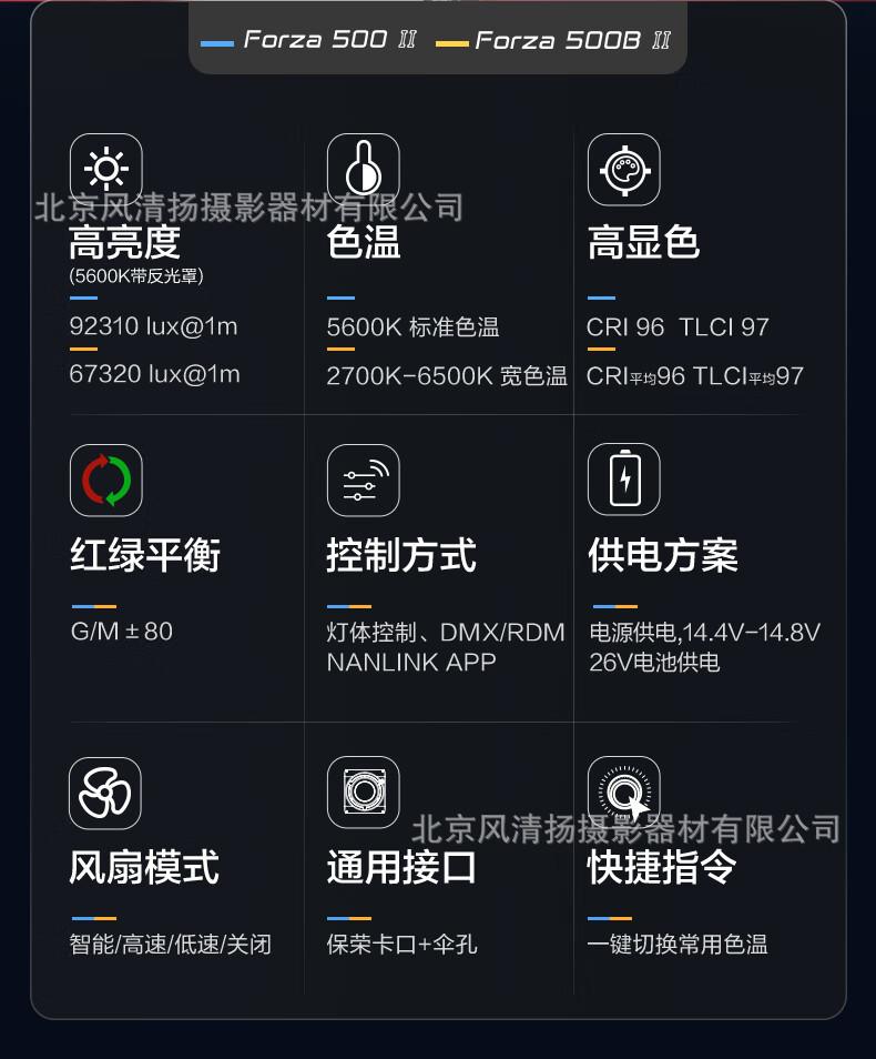 Forza 500 ii comes standard (single color temperature), Forza 500b ii comes standard (adjustable color tempera...