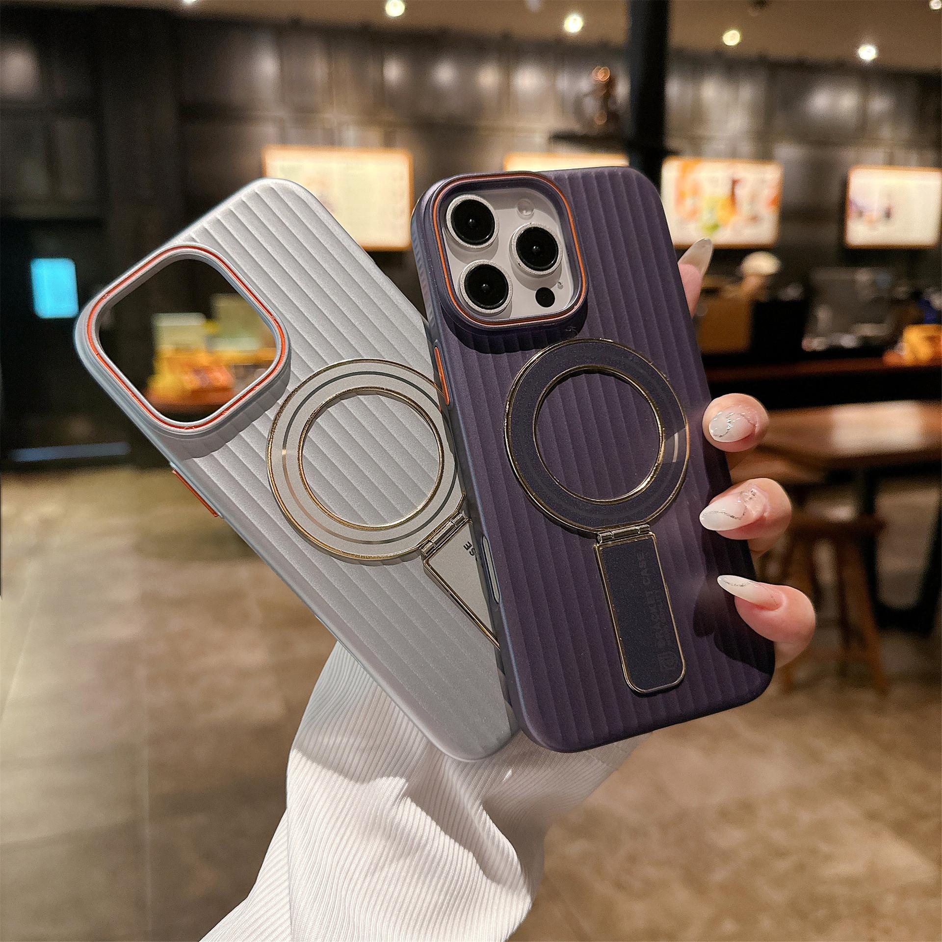 Adecuado para Funda de Teléfono Móvil Iphone17Pro, Nuevo Soporte Corrugado, Adecuado para Cubierta Protectora Magnética de Pintura Metálica Apple 15