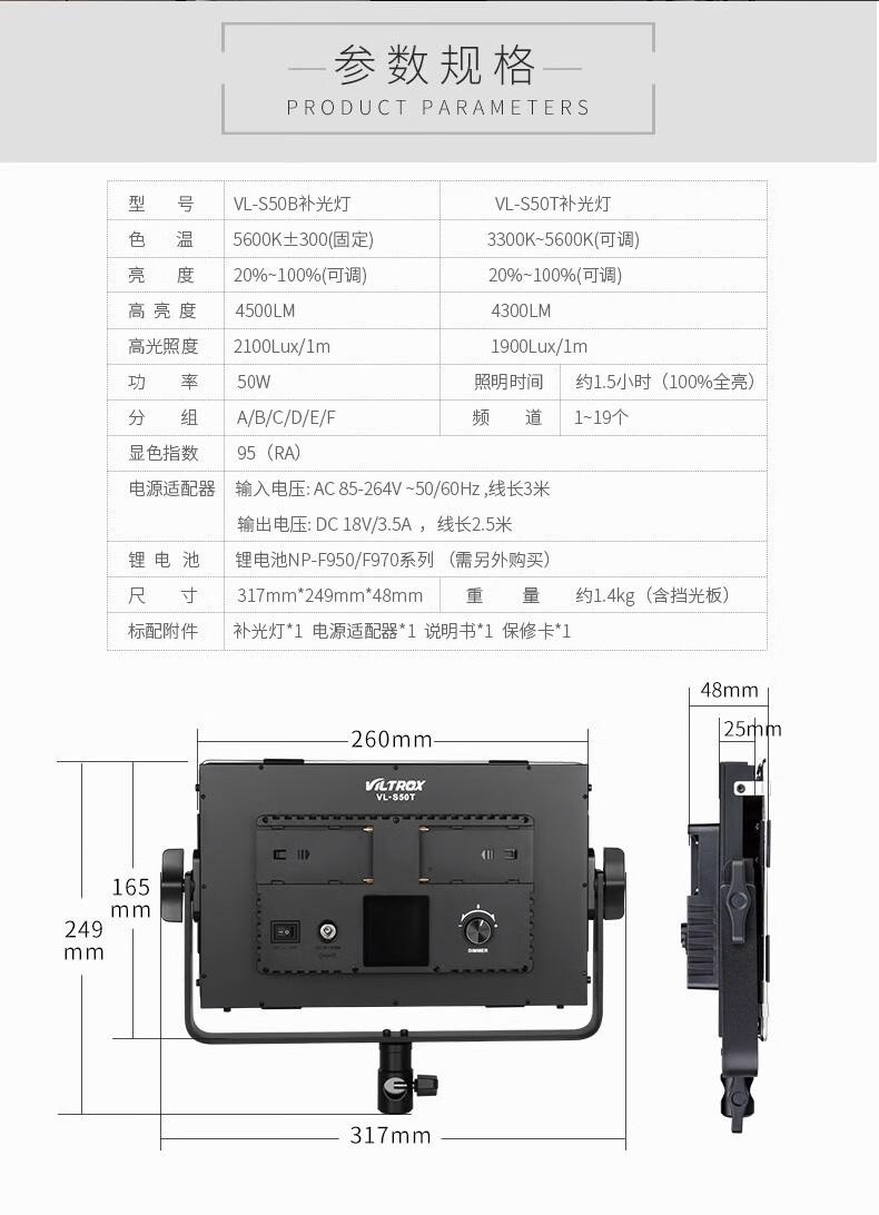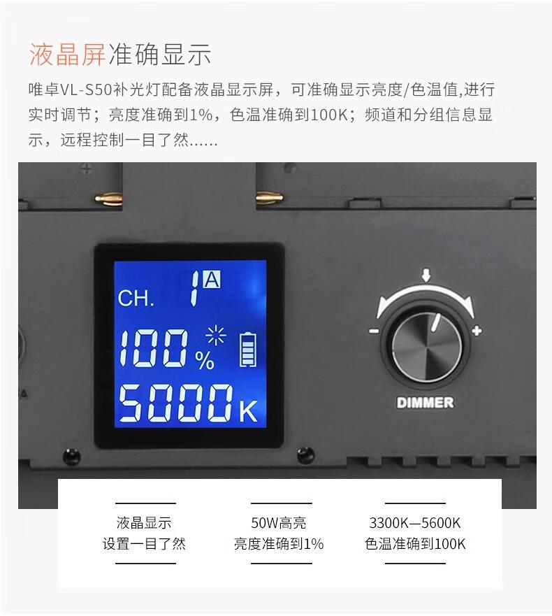 Wei Zhuoshi VL-S50W Luz en Vivo Luz LED para Fotografía Luz para Fotografía Grabación de Video de Micrometraje Interior