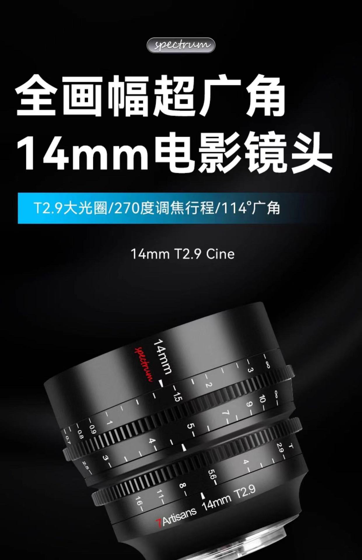 Lente Cine Ultra Gran Angular de Fotograma Completo Seven Craftsman 14Mmt2.9 Montura Zcam Fx3/Fe/Z/Rf/L