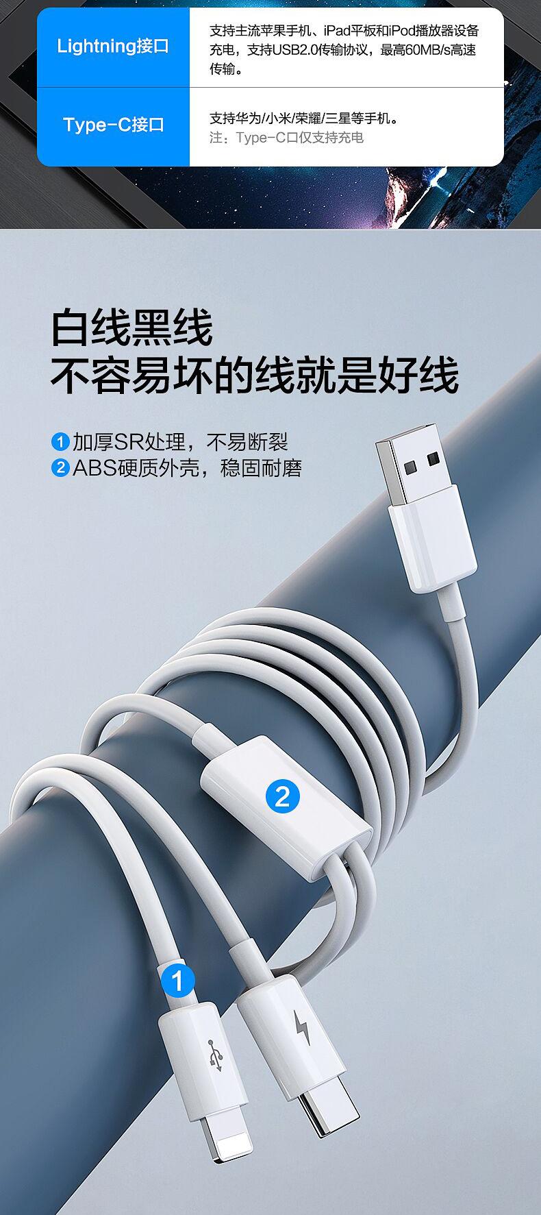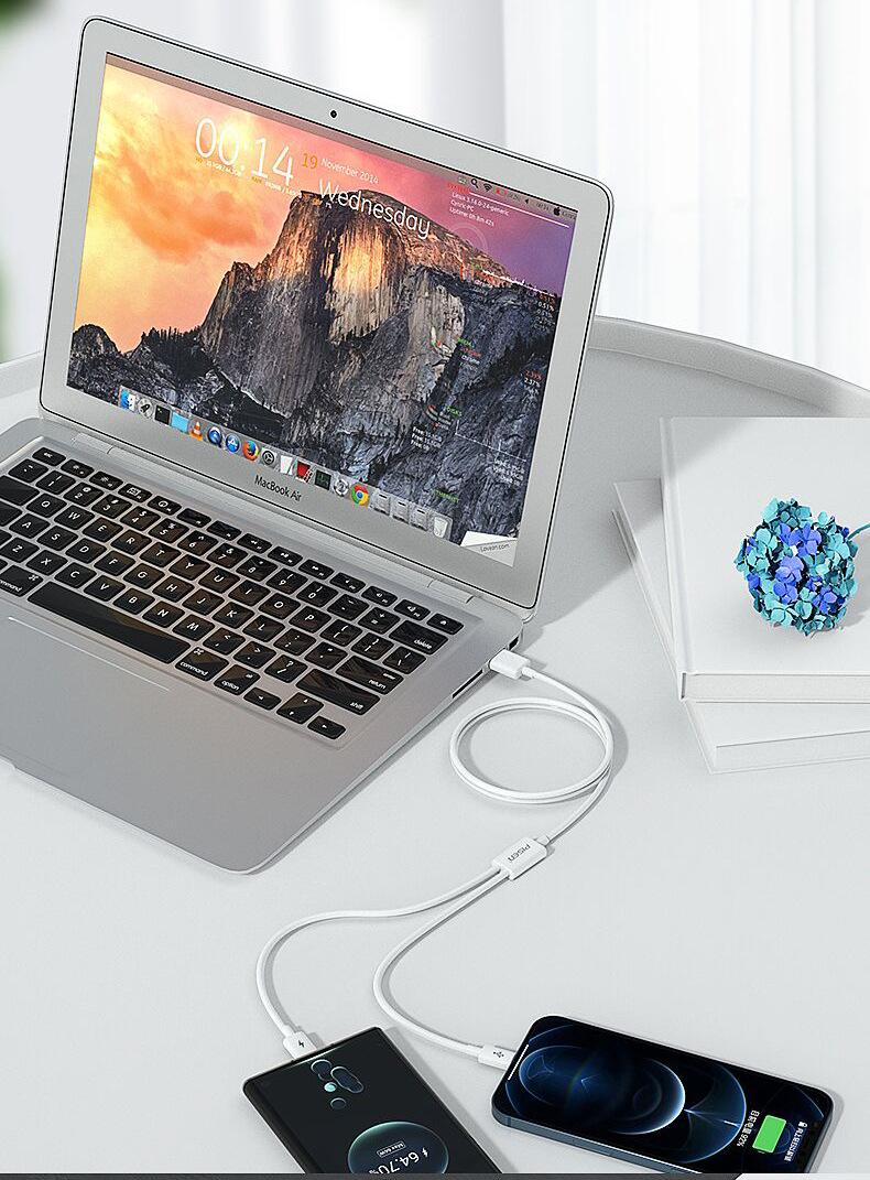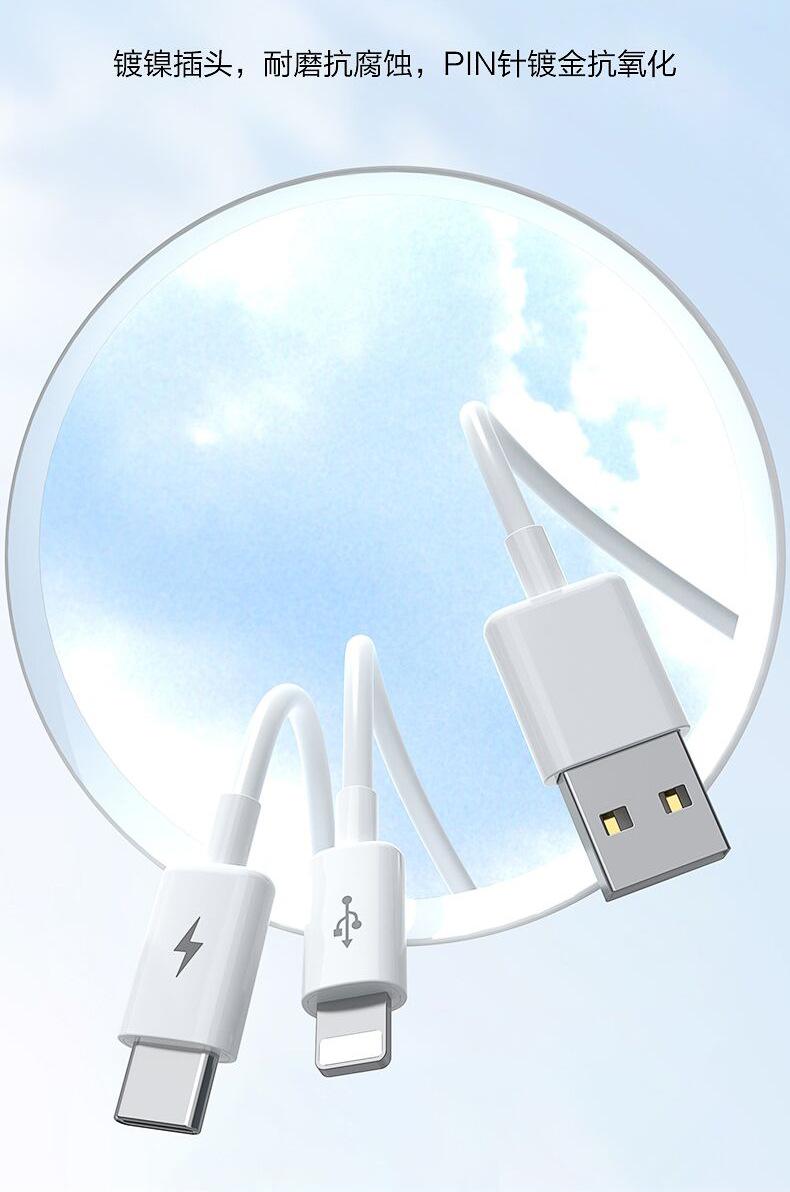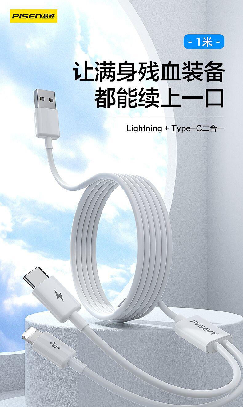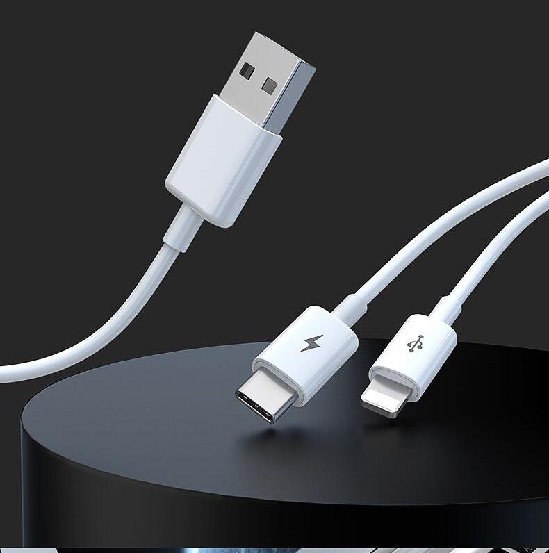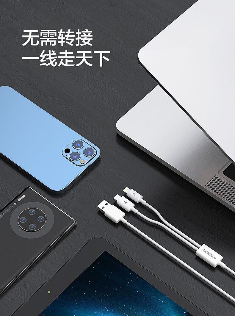 Cable de datos dos en uno Pinsheng apto para teléfonos móviles tipo C, Android, Apple, cable de carga multifunción uno a dos, venta al por mayor