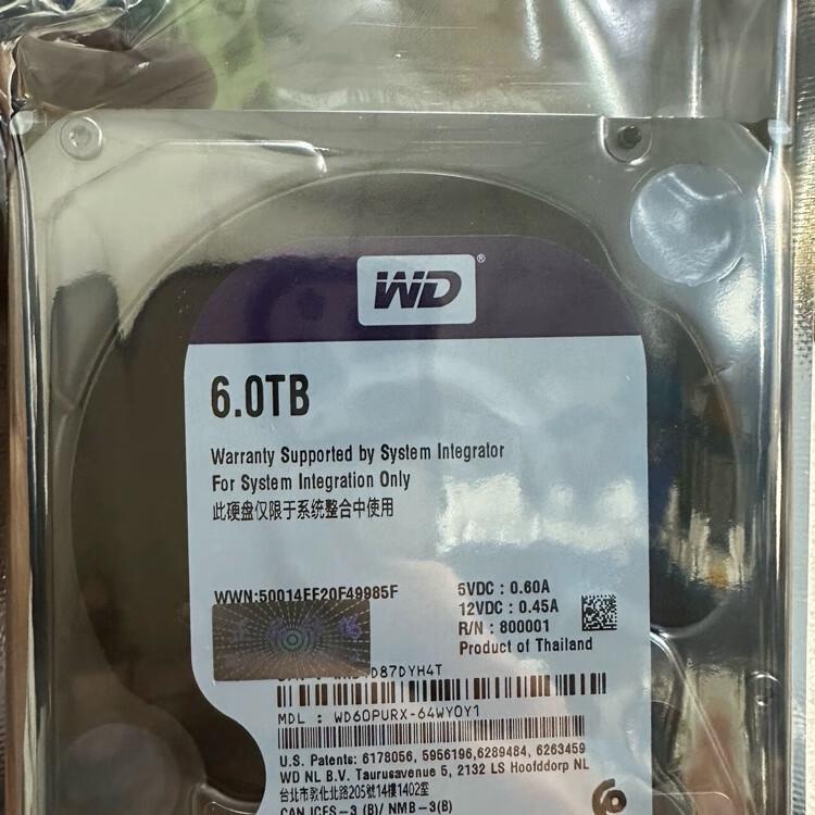 Disco duro de vigilancia original Western Digital 6T 6TB disco púrpura WD60PURX y WD62PURX modelos antiguos y nuevos. Disco duro mecánico SATA original auténtico, etiqueta original, auténtico, 0 encendido tres años de garantía, nuevo en stock 0 encendido, disco púrpura de vigilancia original Western Digital 6tb, también se puede usar para escritorios, NAS y otras interfaces universales SATA! Stock a granel.