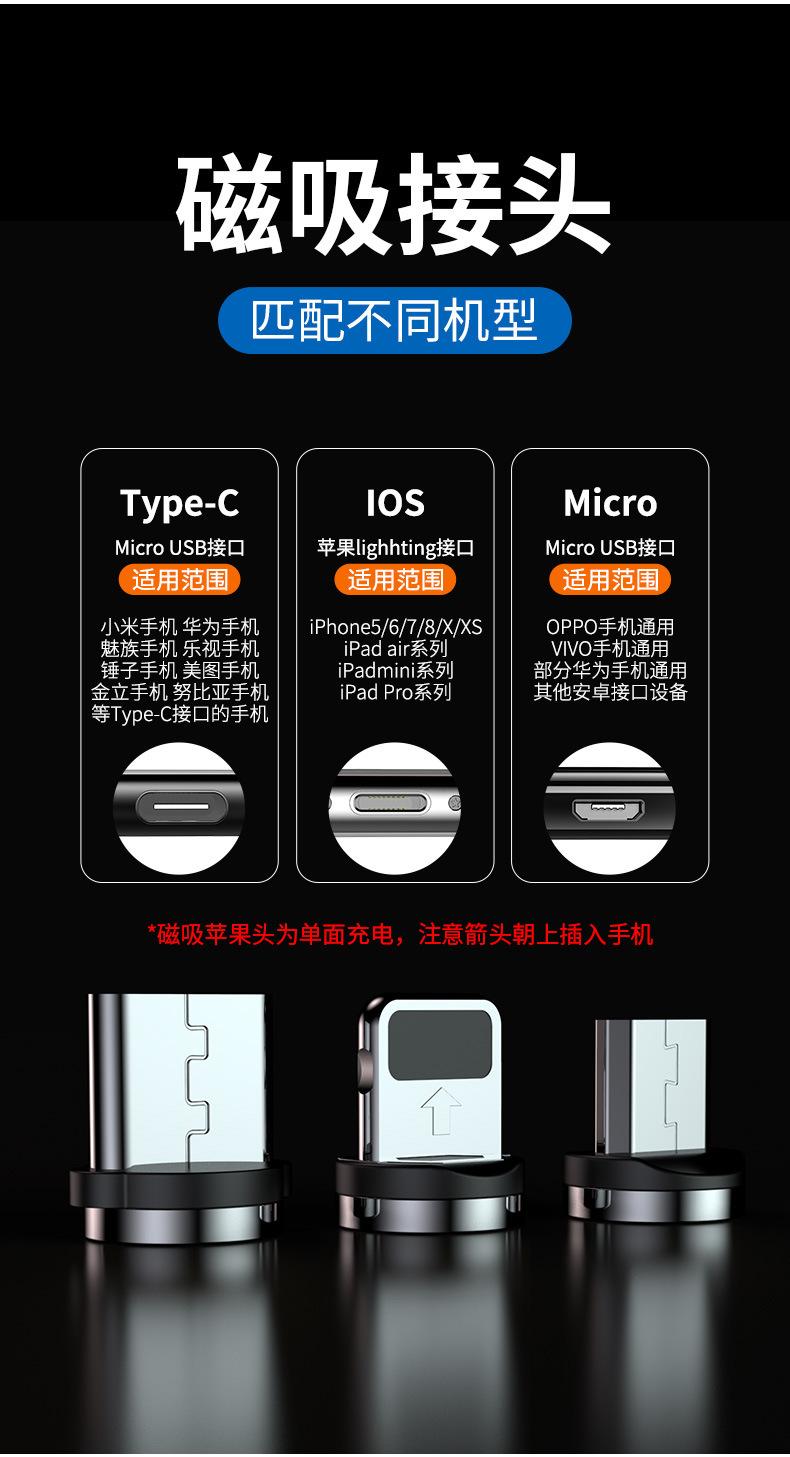 1m black [apple+tc+android] magnetic suction head + magnetic suction line