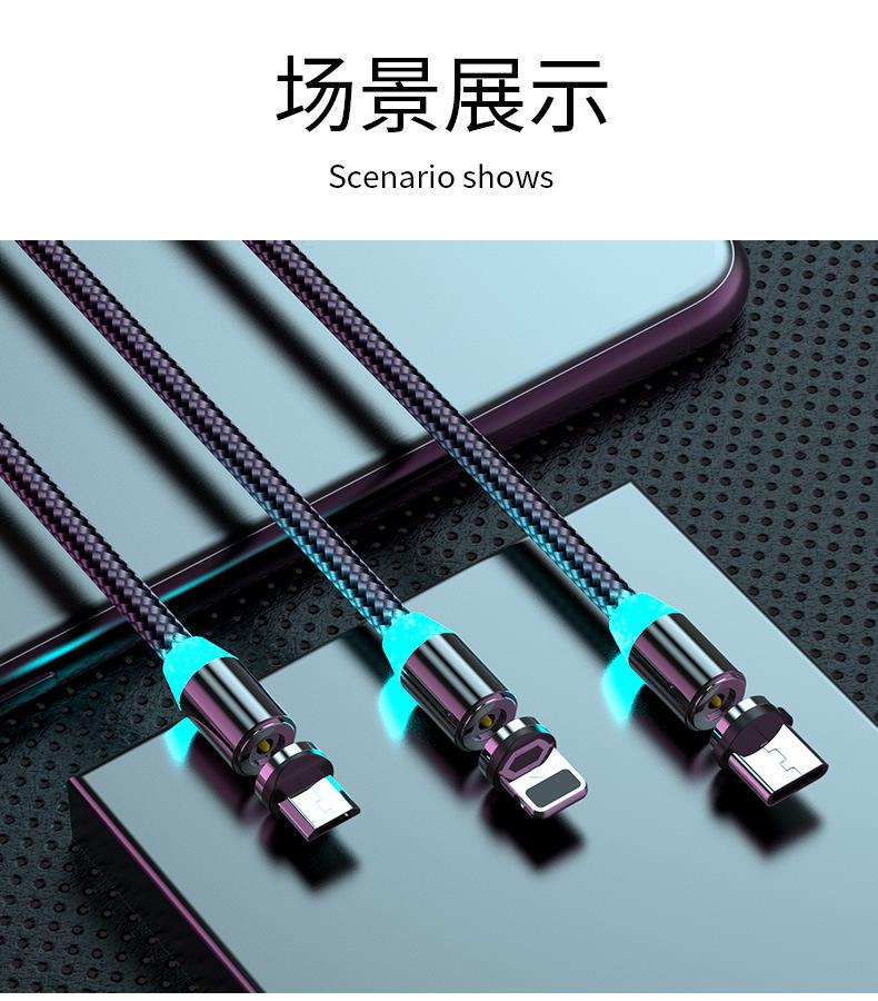 Cable de datos con succión magnética para Android, Apple, línea de carga tipo C, Huawei, teléfono móvil tres en uno, carga rápida universal.