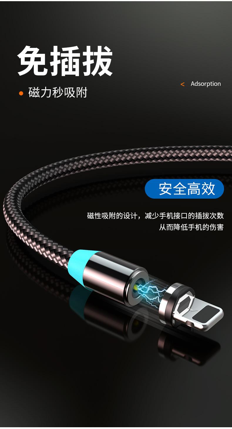 2m black [apple+tc+android] magnetic suction head+magnetic suction line