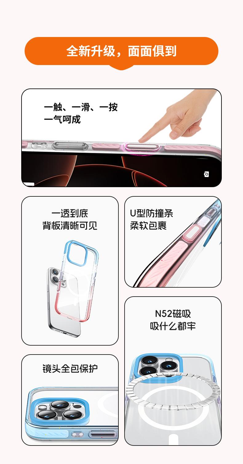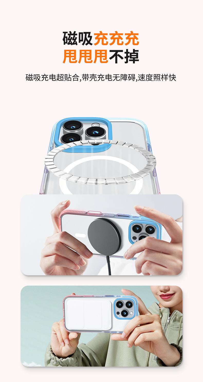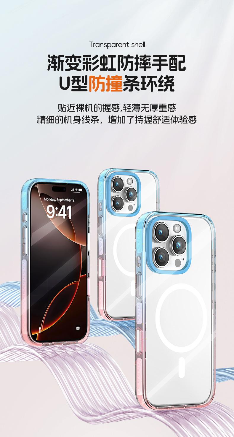 Funda magnética para teléfono móvil con color degradado para iPhone16Pro, cubierta protectora para botón de cámara con sensor inteligente tres en uno