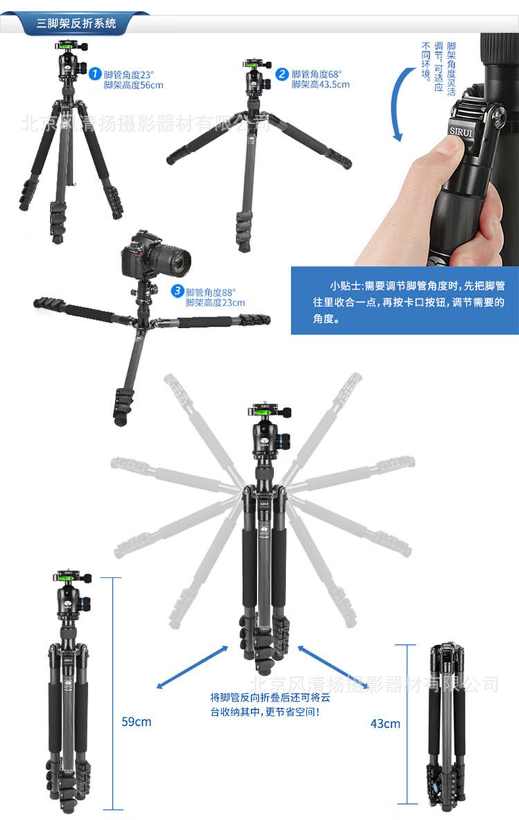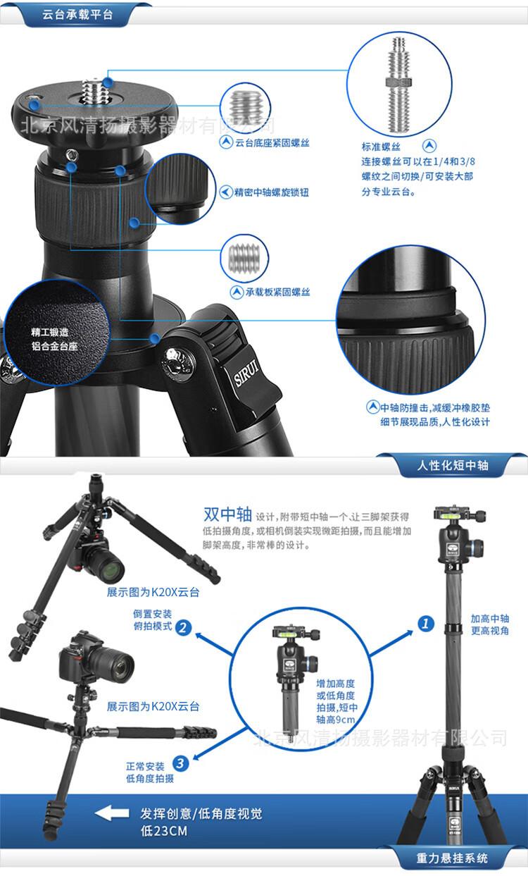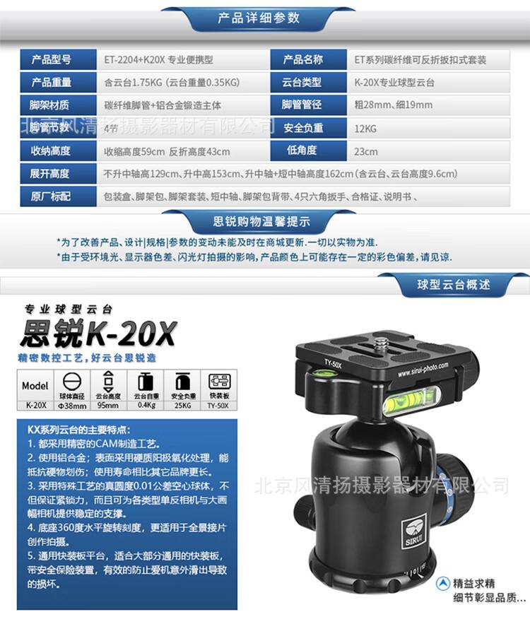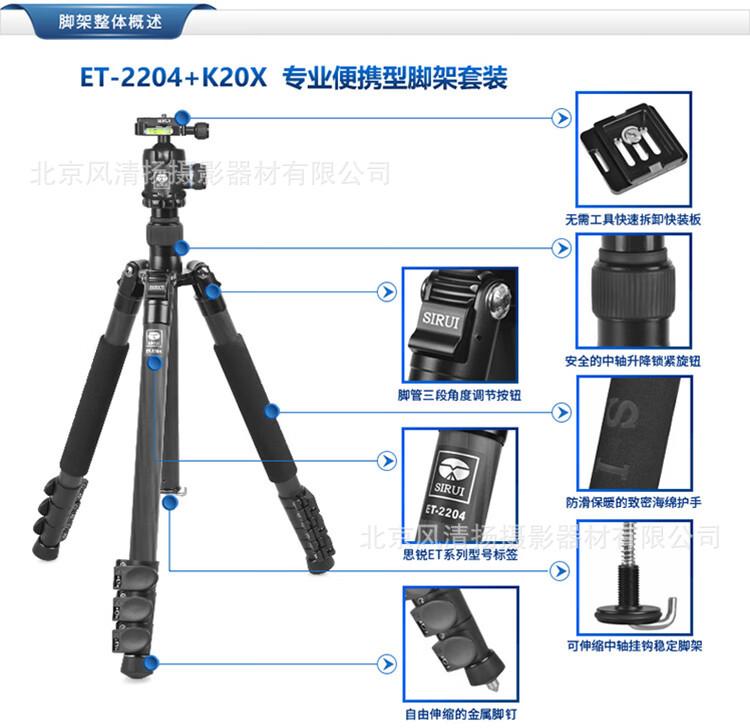 Trípode SIRUI ET2204 + trípode de fibra de carbono K20X con trípode para cámara SLR PTZ