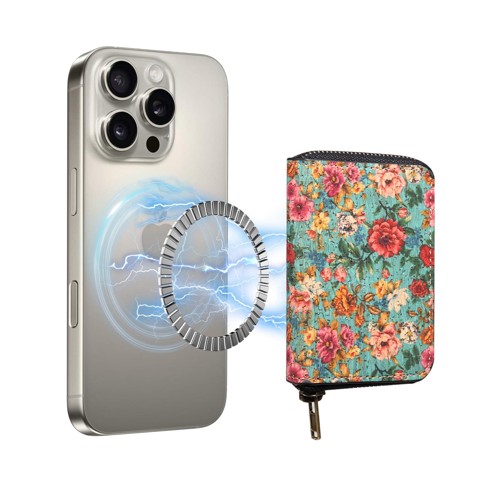 Adecuado para Apple 16-12 soporte de material de corcho tarjetero bolsa magnética Magsafe billetera de cuero tarjetero funda de cuero